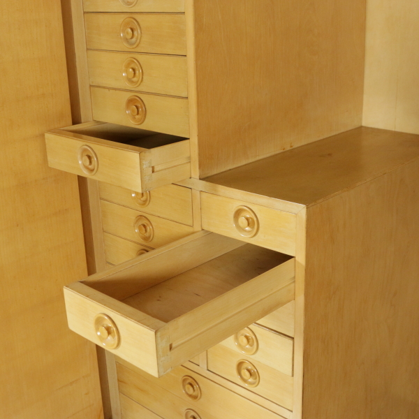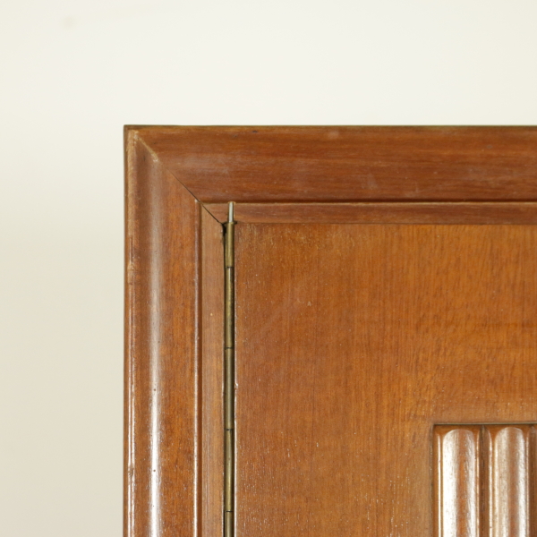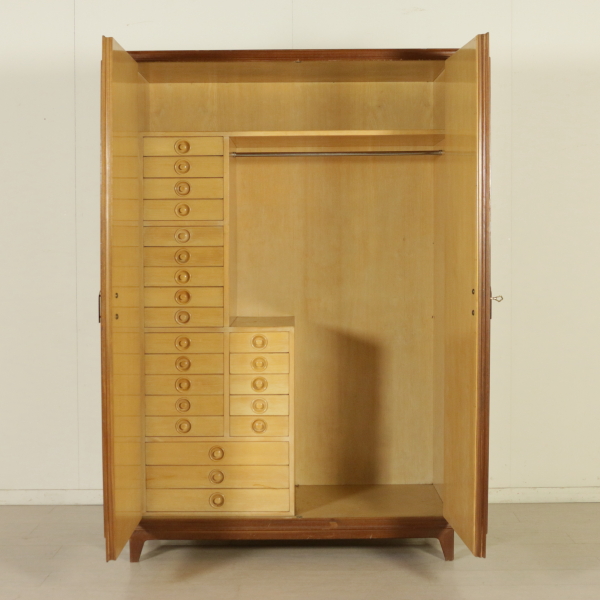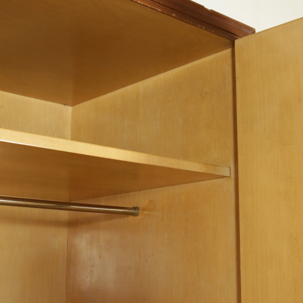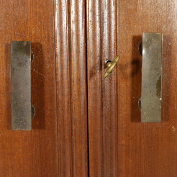 Mobile armadio a due ante battenti; legno impiallacciato mogano, maniglie in ottone.