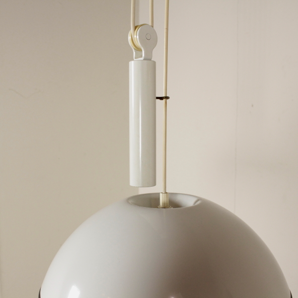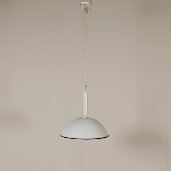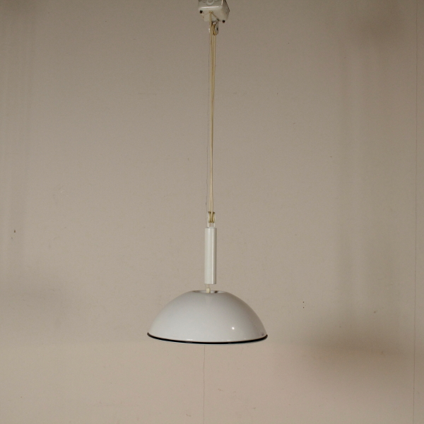 Lampada a sospensione con saliscendi; metallo laccato.