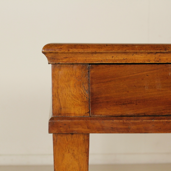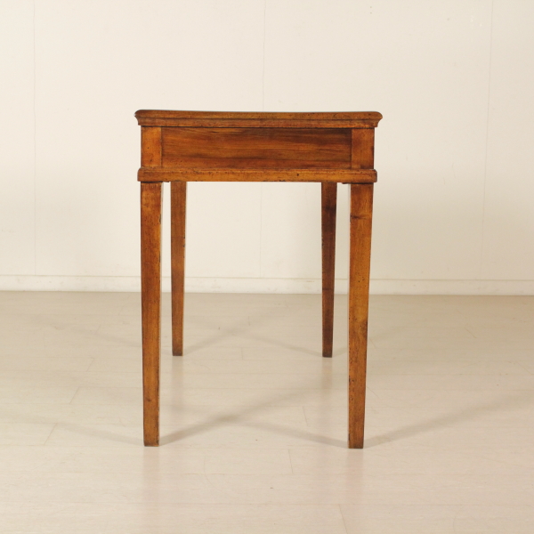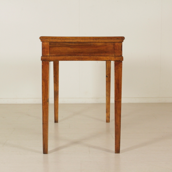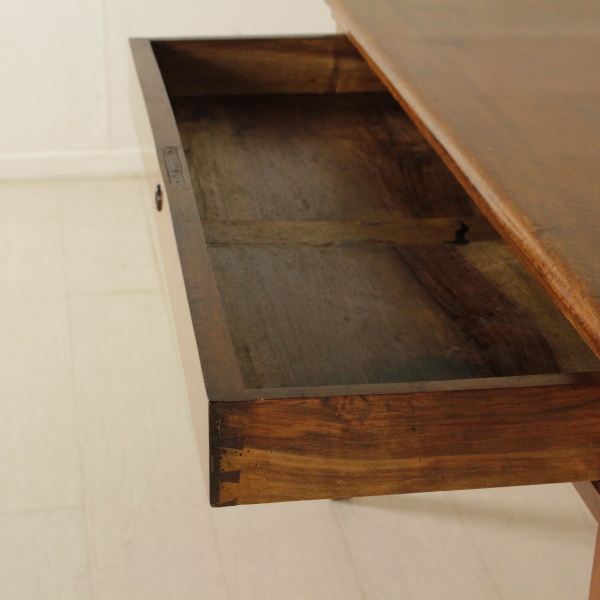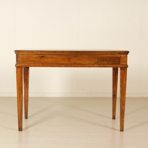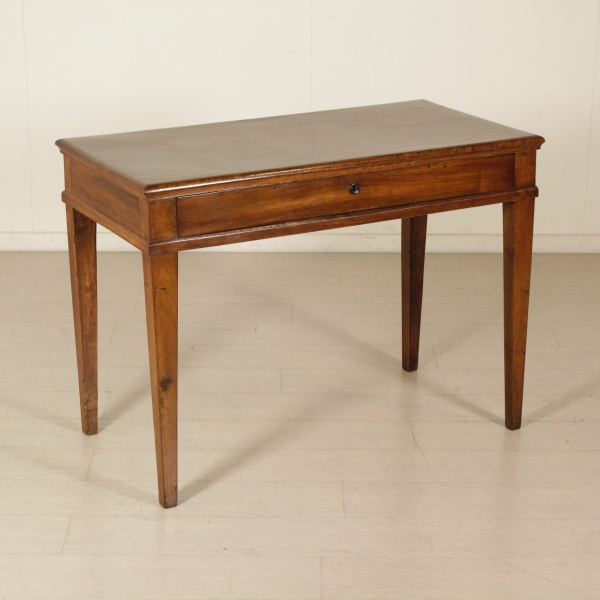 Tavolo scrittoio da centro retto da gambe tronco-piramidali. Cassetto nella fascia, piano in cornice.