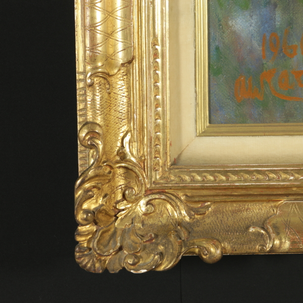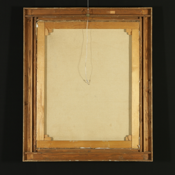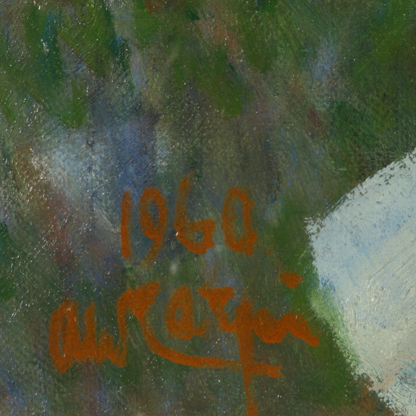 Olio su tela. Firmato in basso a sinistra e datato 1960. Sul retro etichetta della storica bottega d'arte Egisto Marconi di Milano. In cornice dorata in stile.