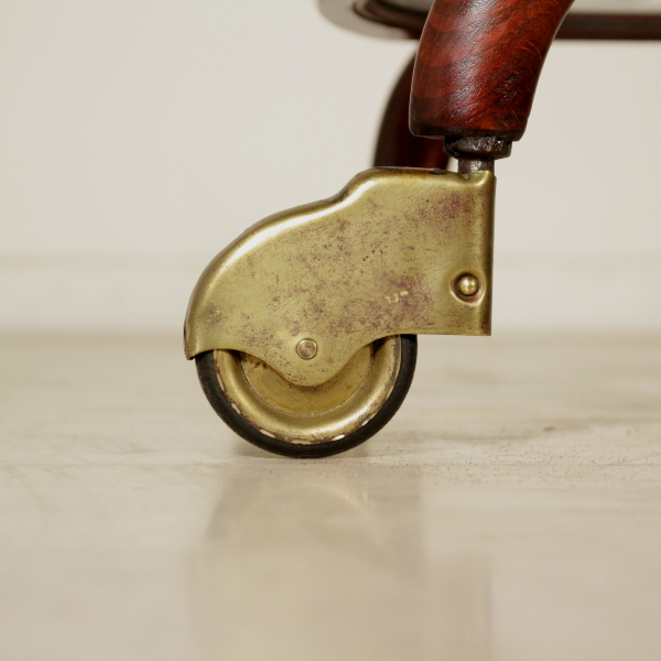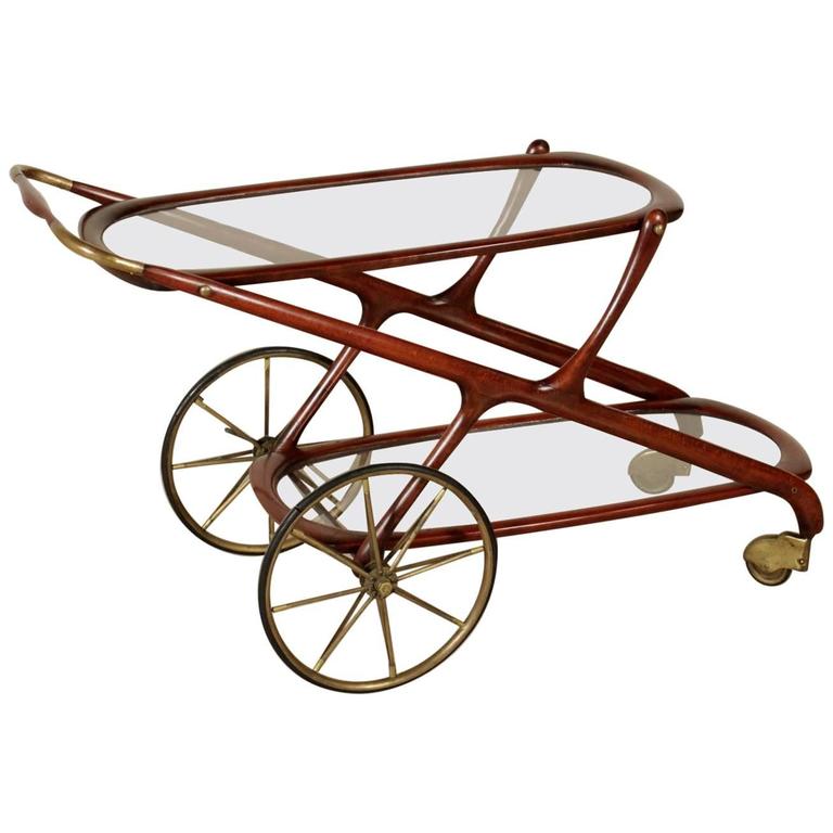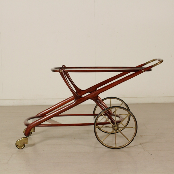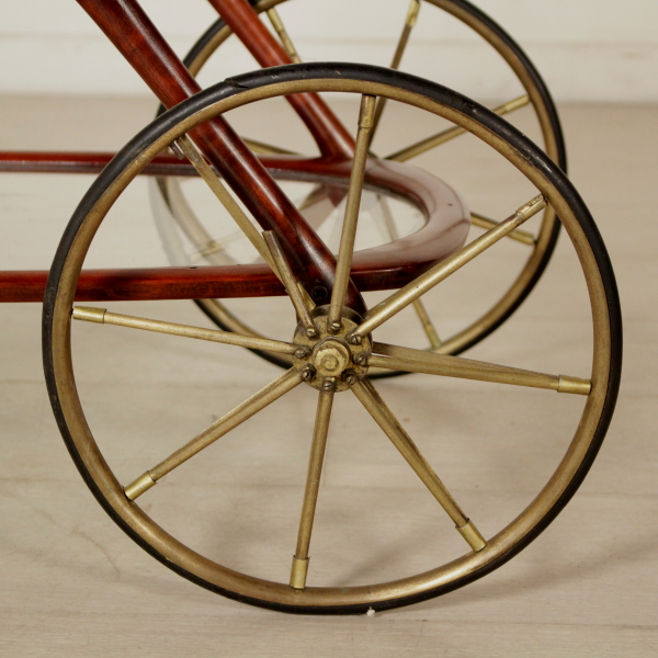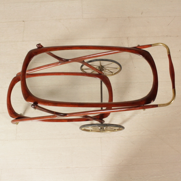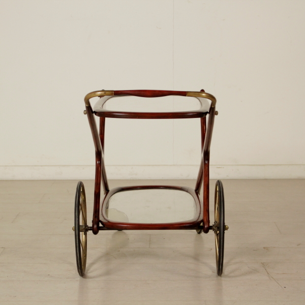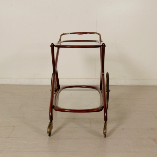 Carrello di servizio; legno di mogano, vetro, ottone.