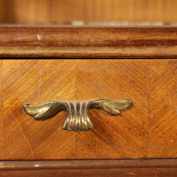 Materiale: Impiallacciatura di Mogano , Ottone , Vetro