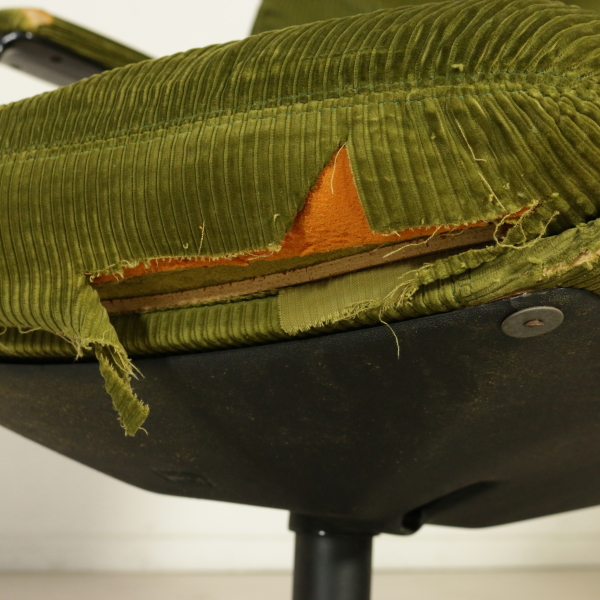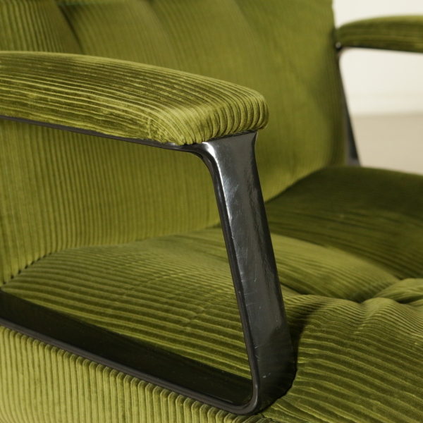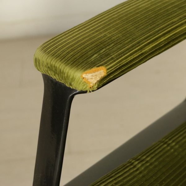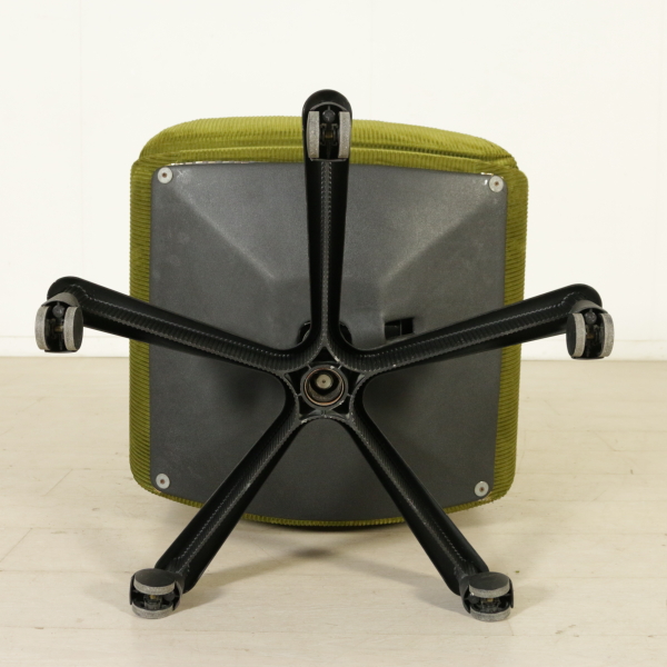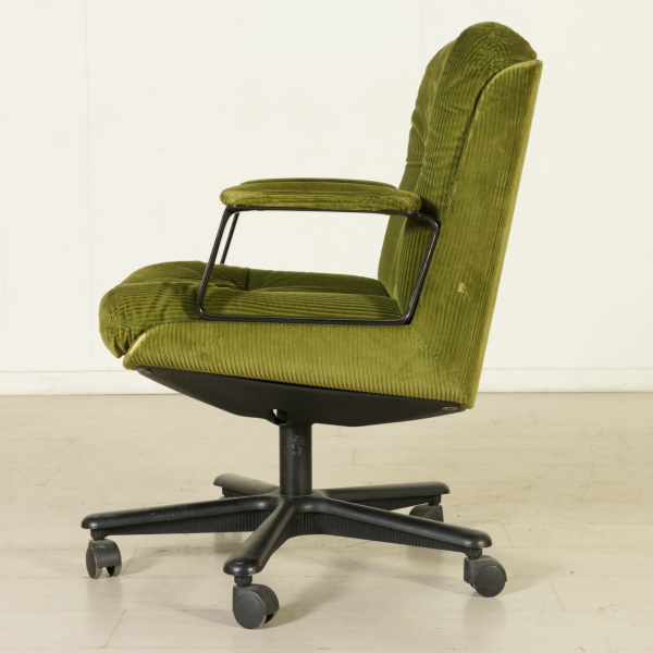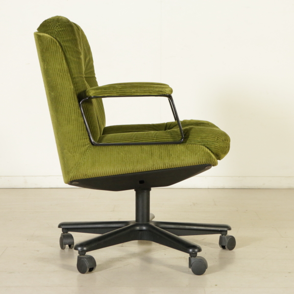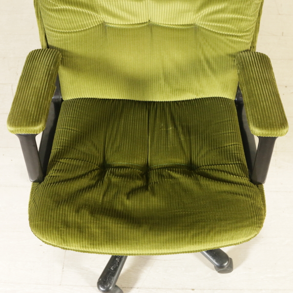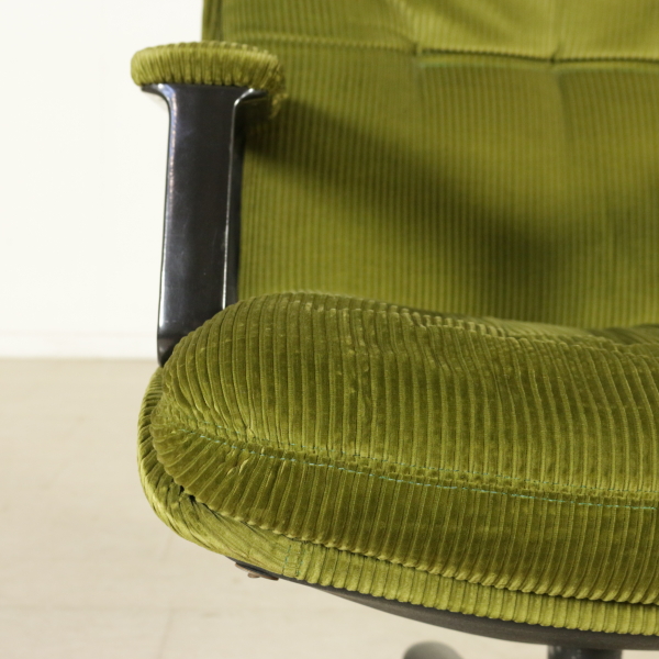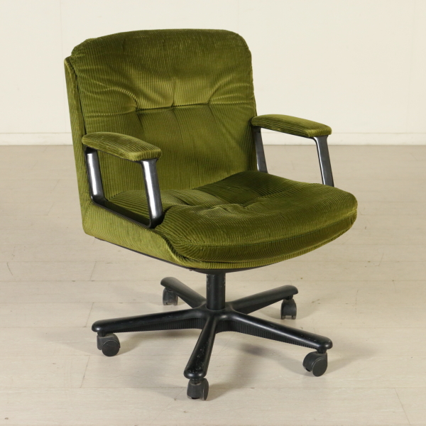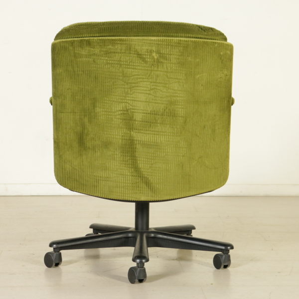 Gruppo di sei poltroncine girevoli da ufficio; imbottitura in espanso, rivestimento in velluto.