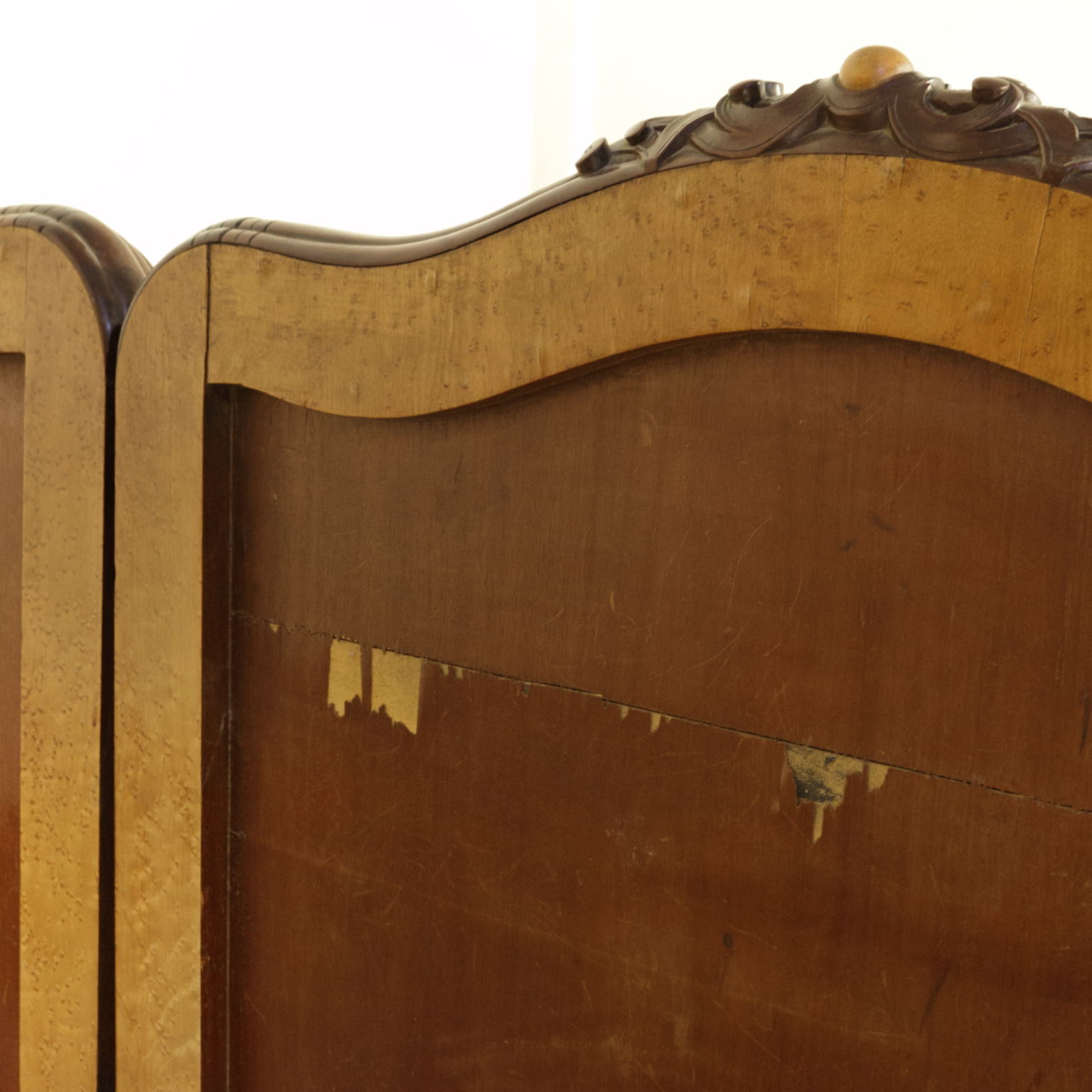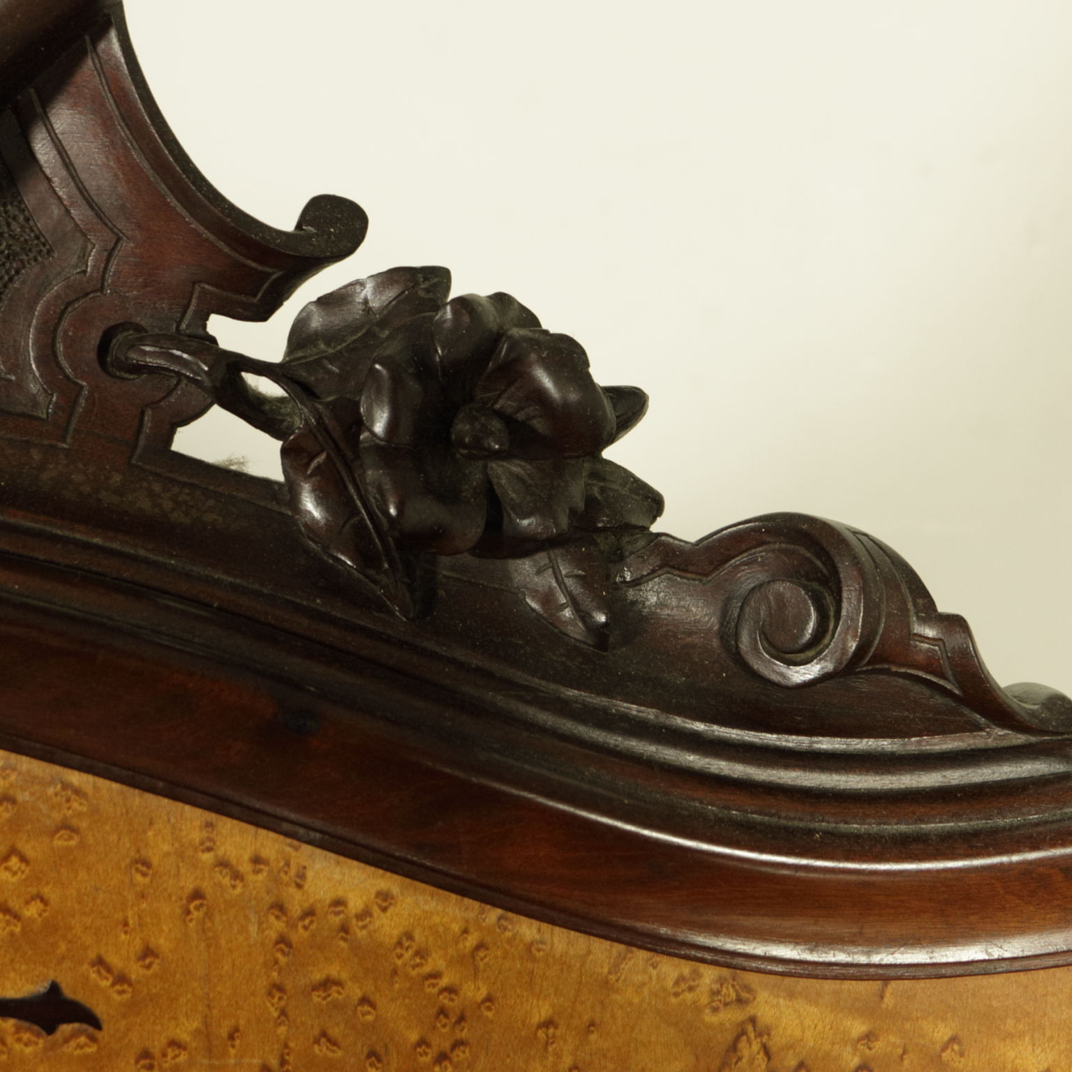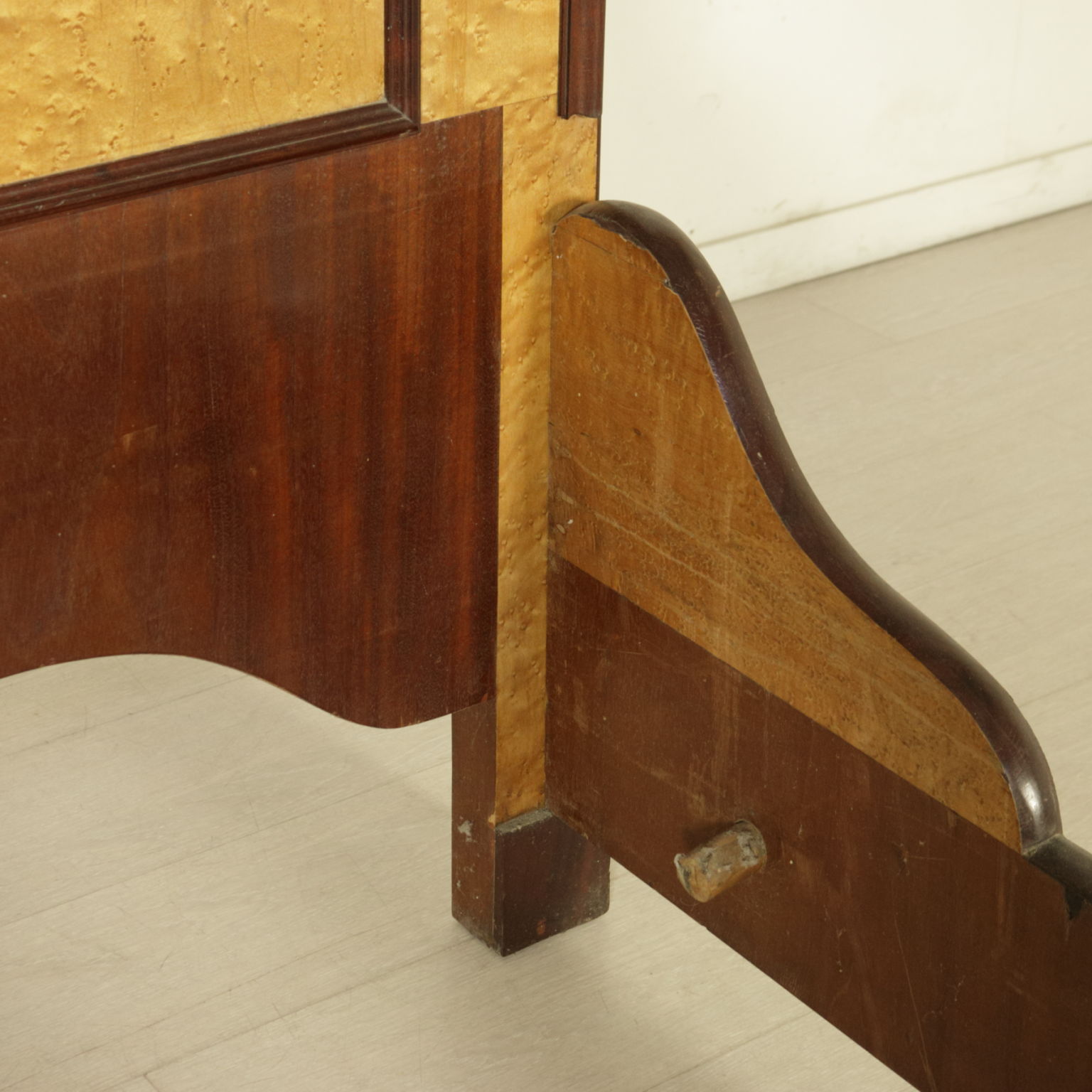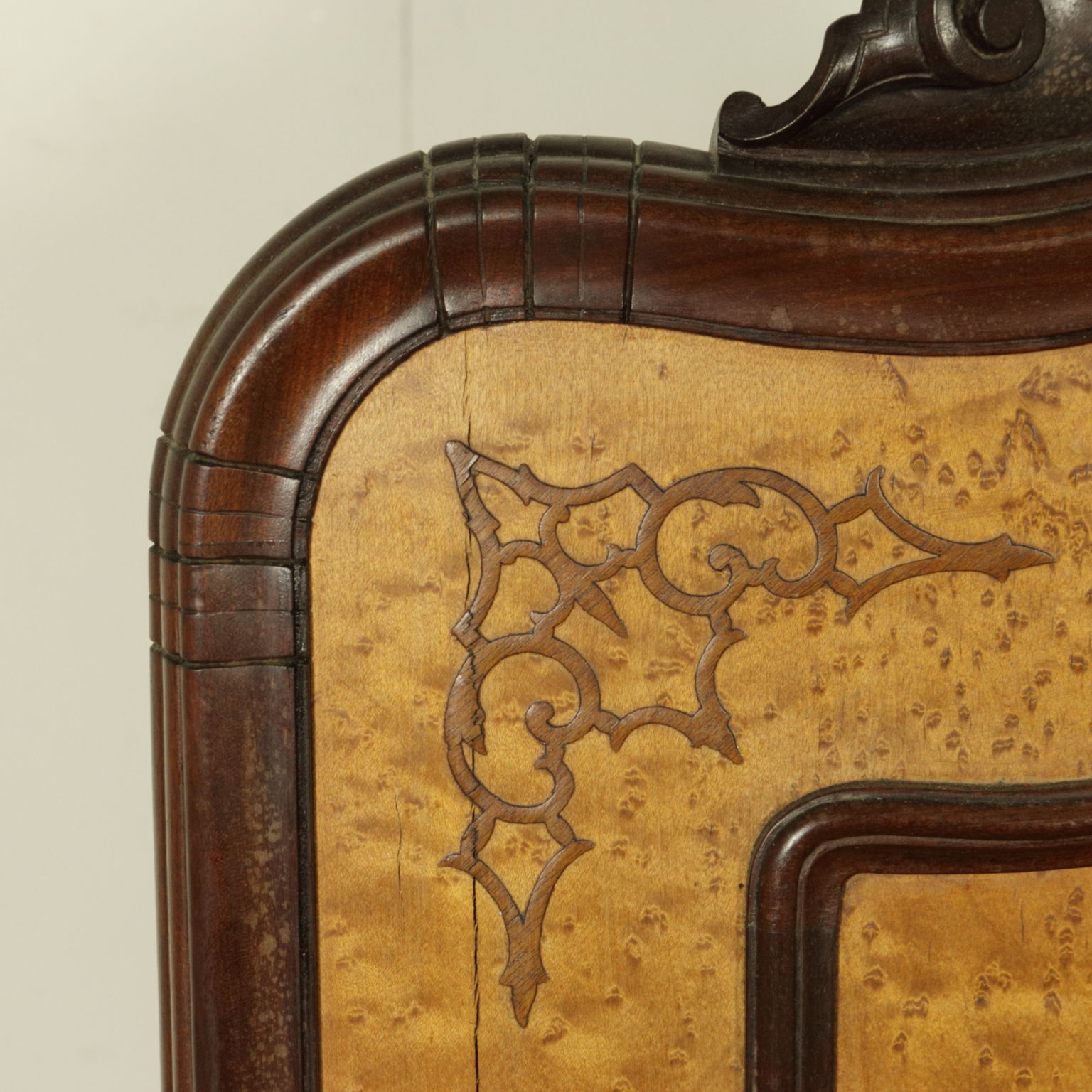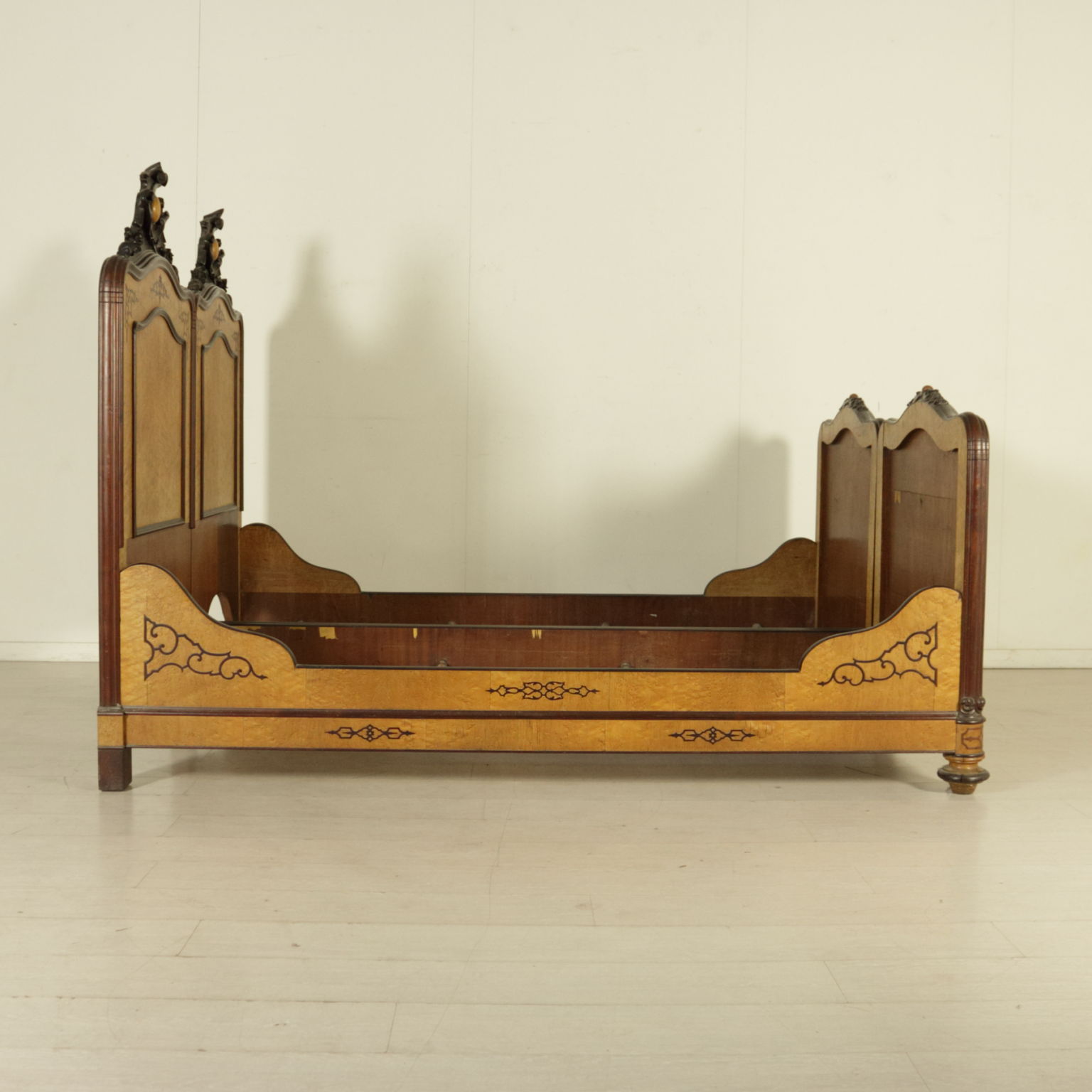 Descrizione Coppia di letti Luigi Filippo, produzione italiana della metà del XIX Secolo. Pannelli in radica di acero con cornici e fregi. Cimasa riccamente intagliata con cameo in acero.