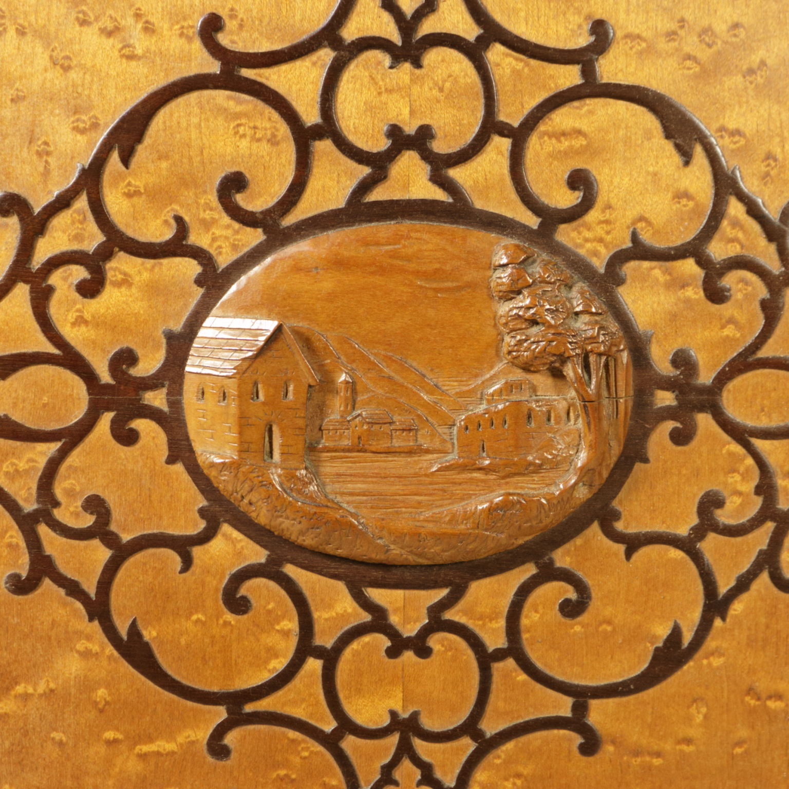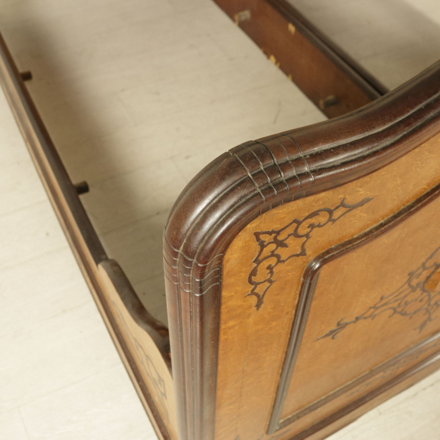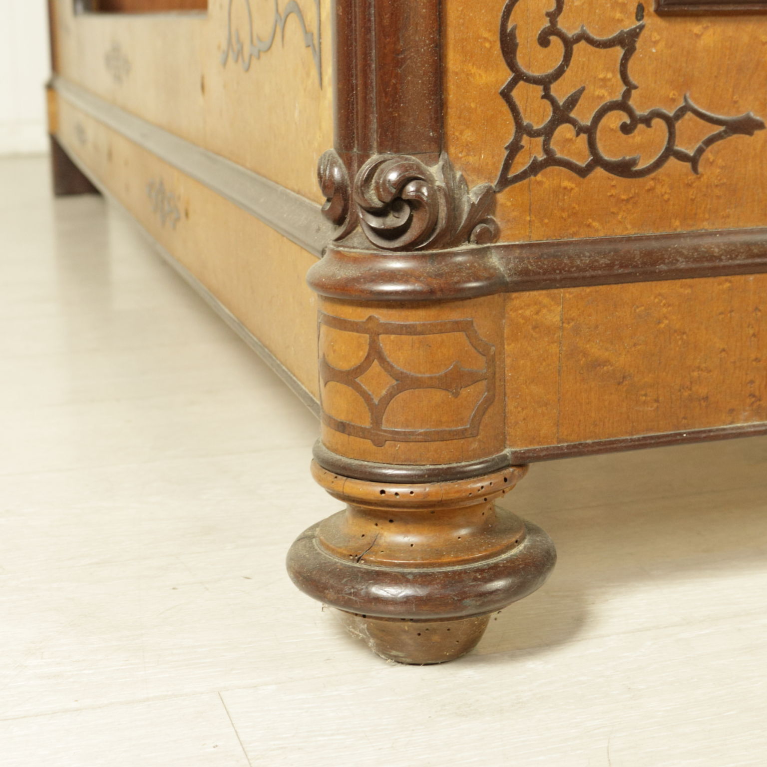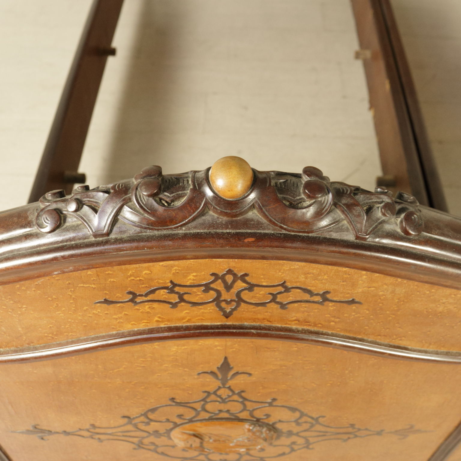 Descrizione Coppia di letti Luigi Filippo, produzione italiana della metà del XIX Secolo. Pannelli in radica di acero con cornici e fregi. Cimasa riccamente intagliata con cameo in acero.