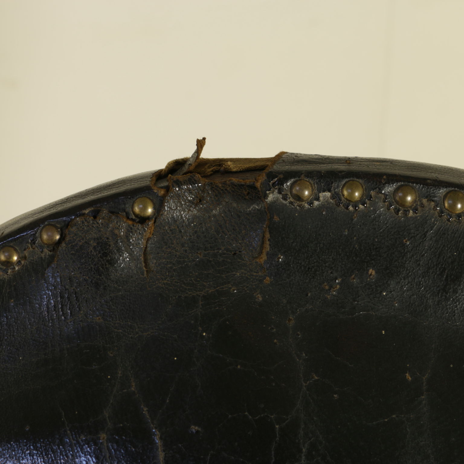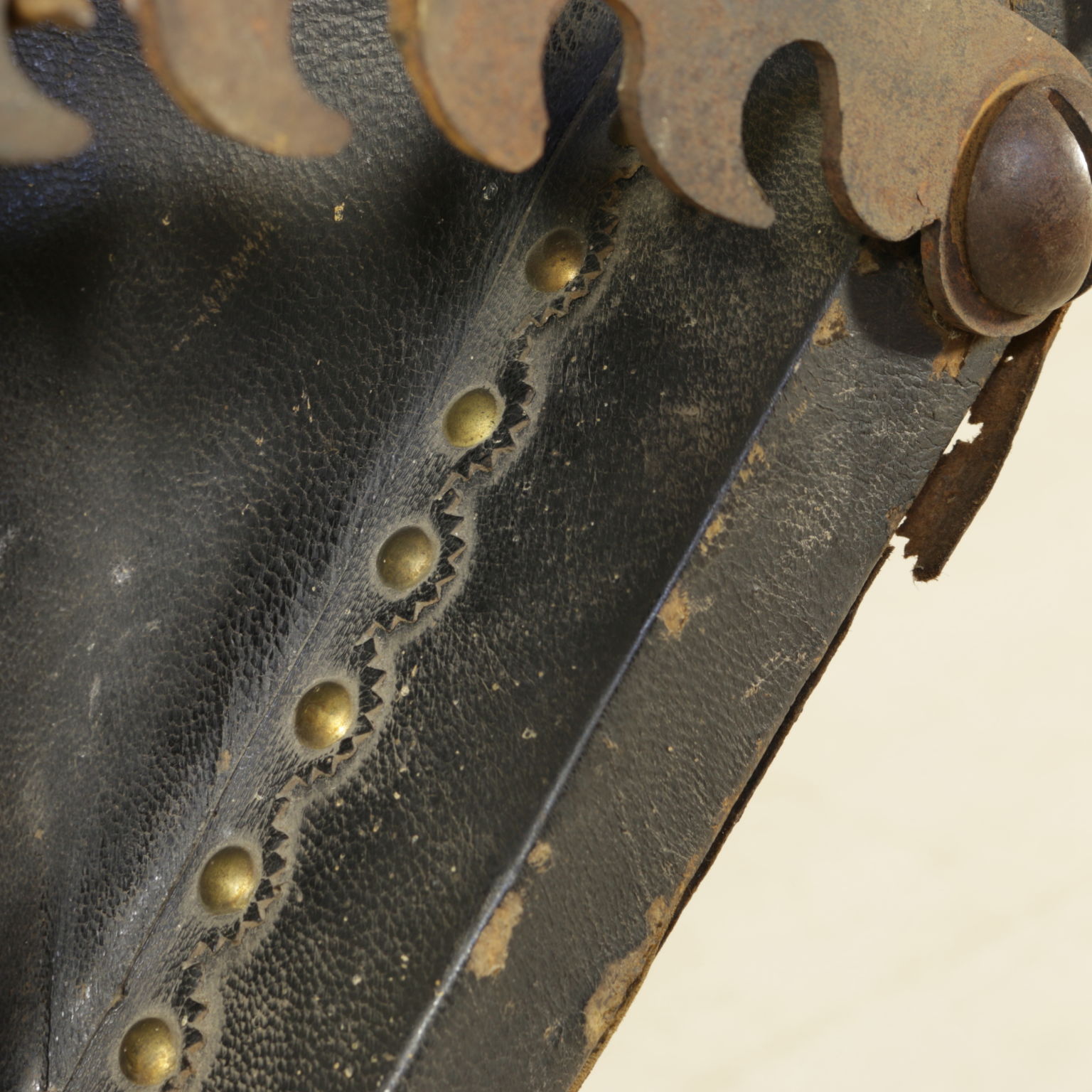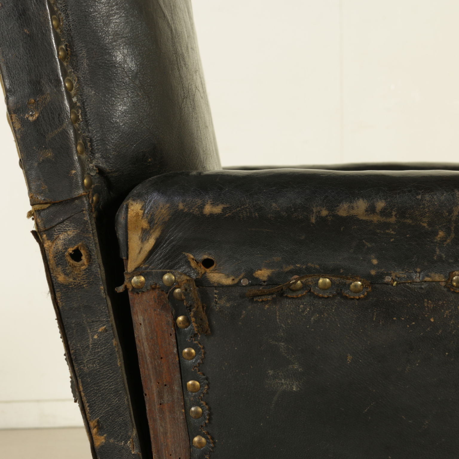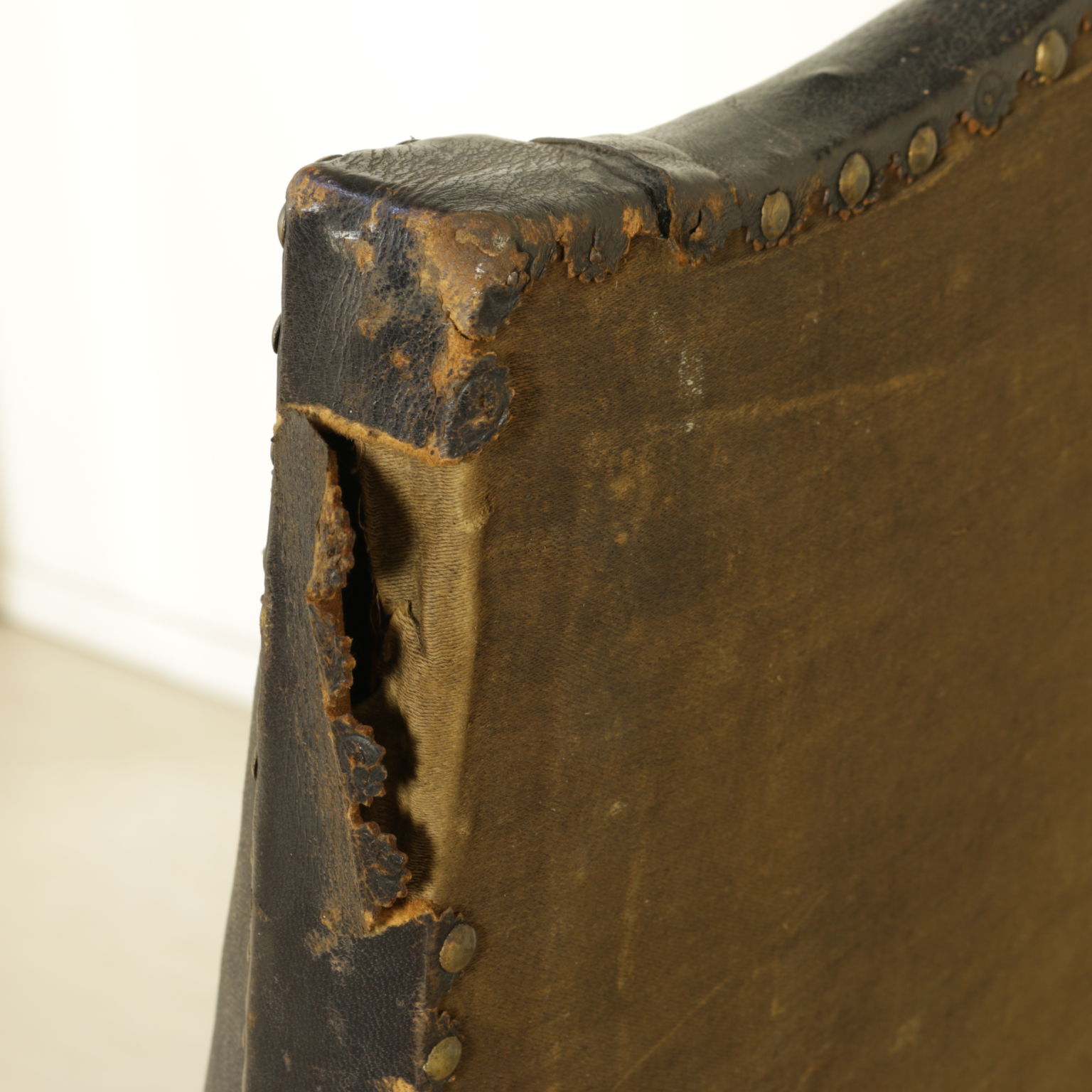 Importante poltrona retta da gambe mosse e intagliate raccordate da crociera sagomata. I braccioli a ricciolo celano stagge in ferro estraibili con pomolo in bronzo con funzione di porta-vassoio. Lo schienale sagomato è reclinabile e regolabile tramite cremagliera laterale di cui una mancante.