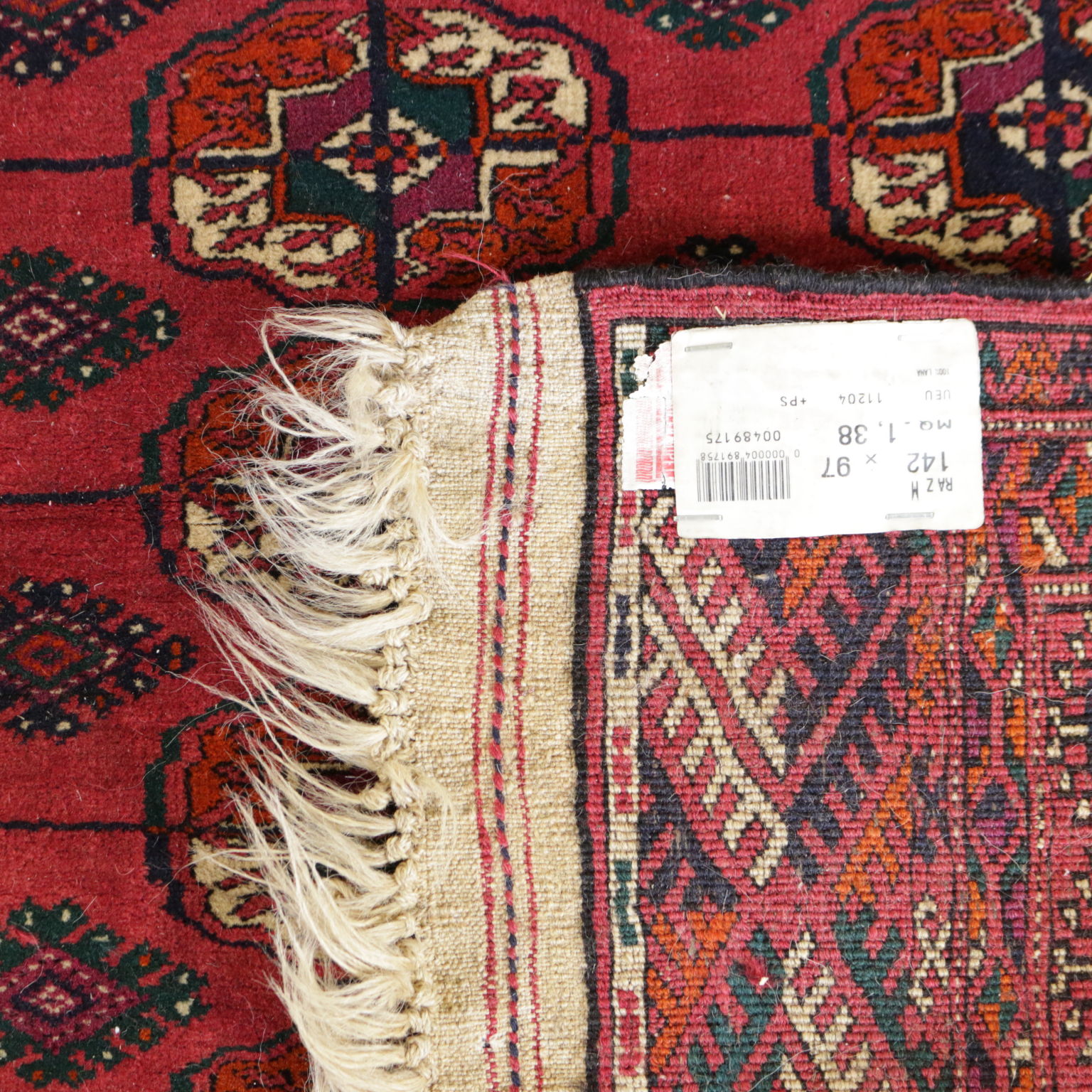Tappeto Bukhara (Russia) in lana a nodo fine, fabbricazione manuale.