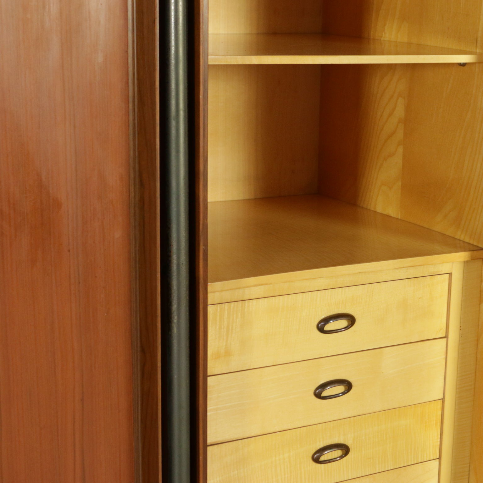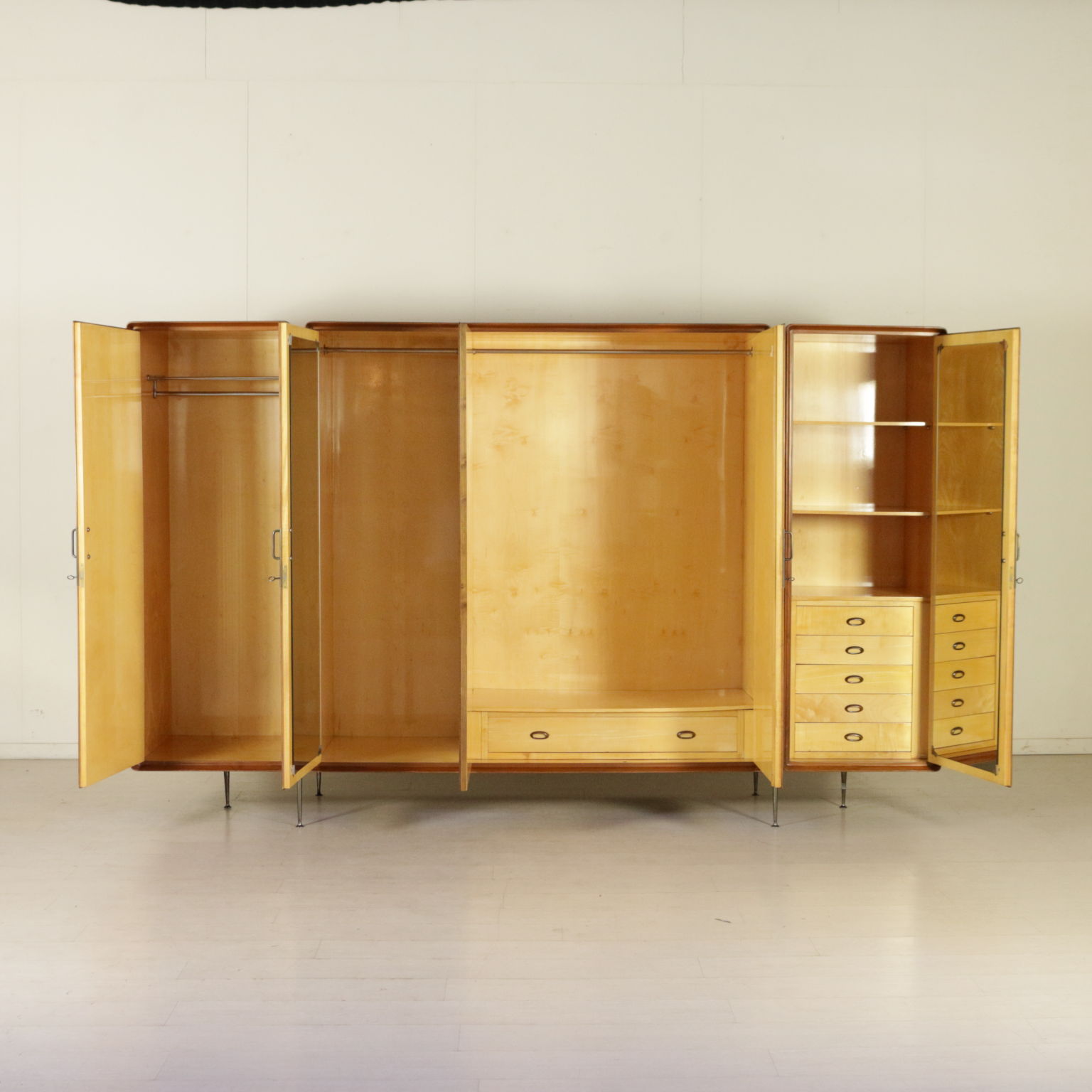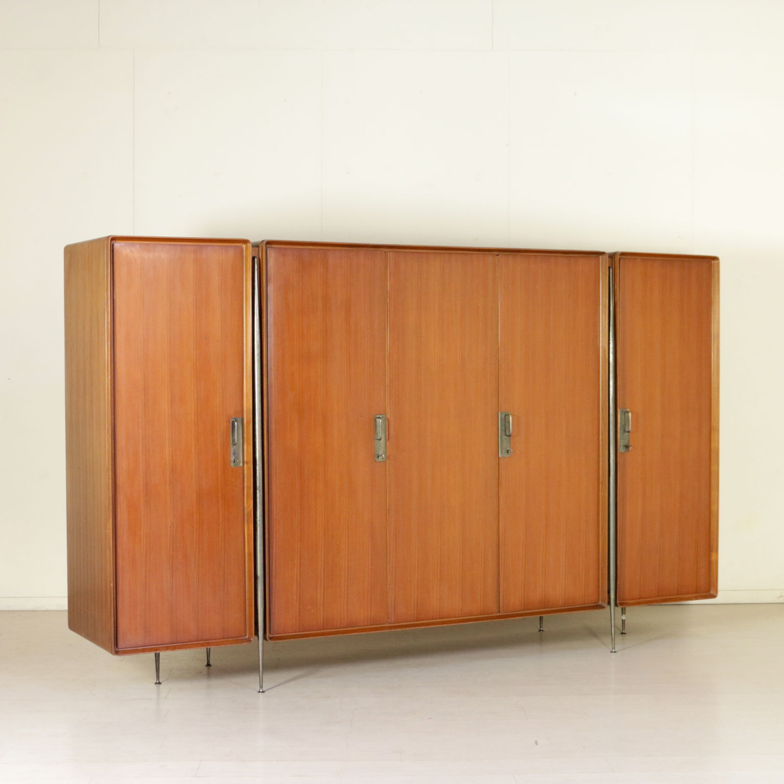 Mobile armadio; legno impiallacciato teak, ottone brunito.