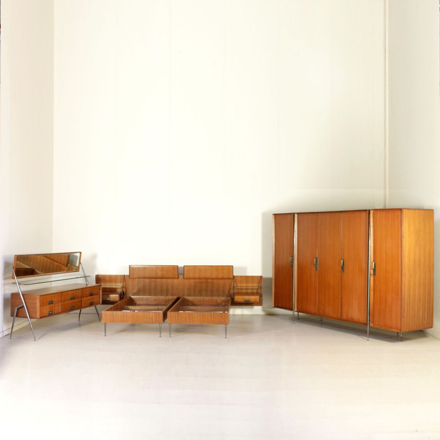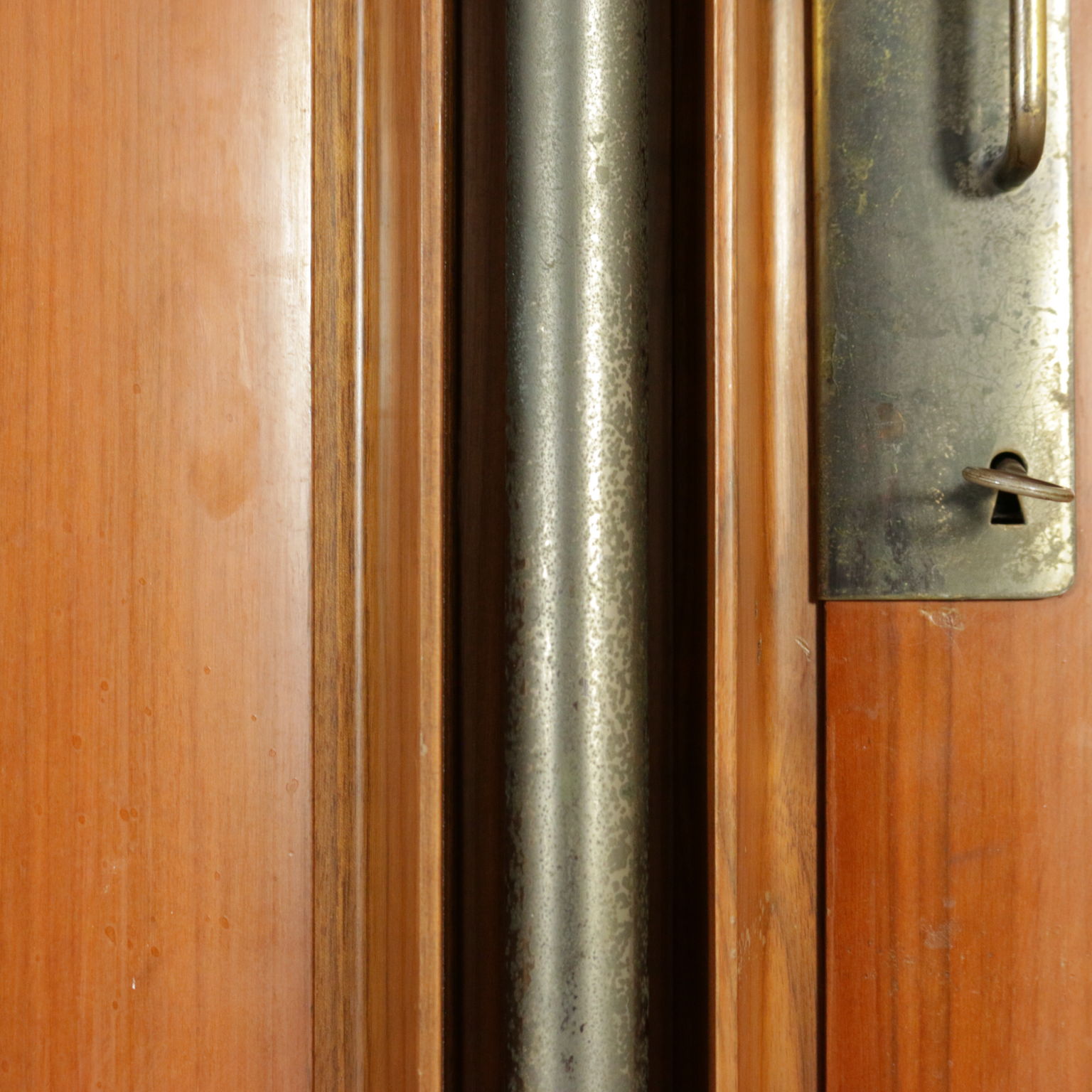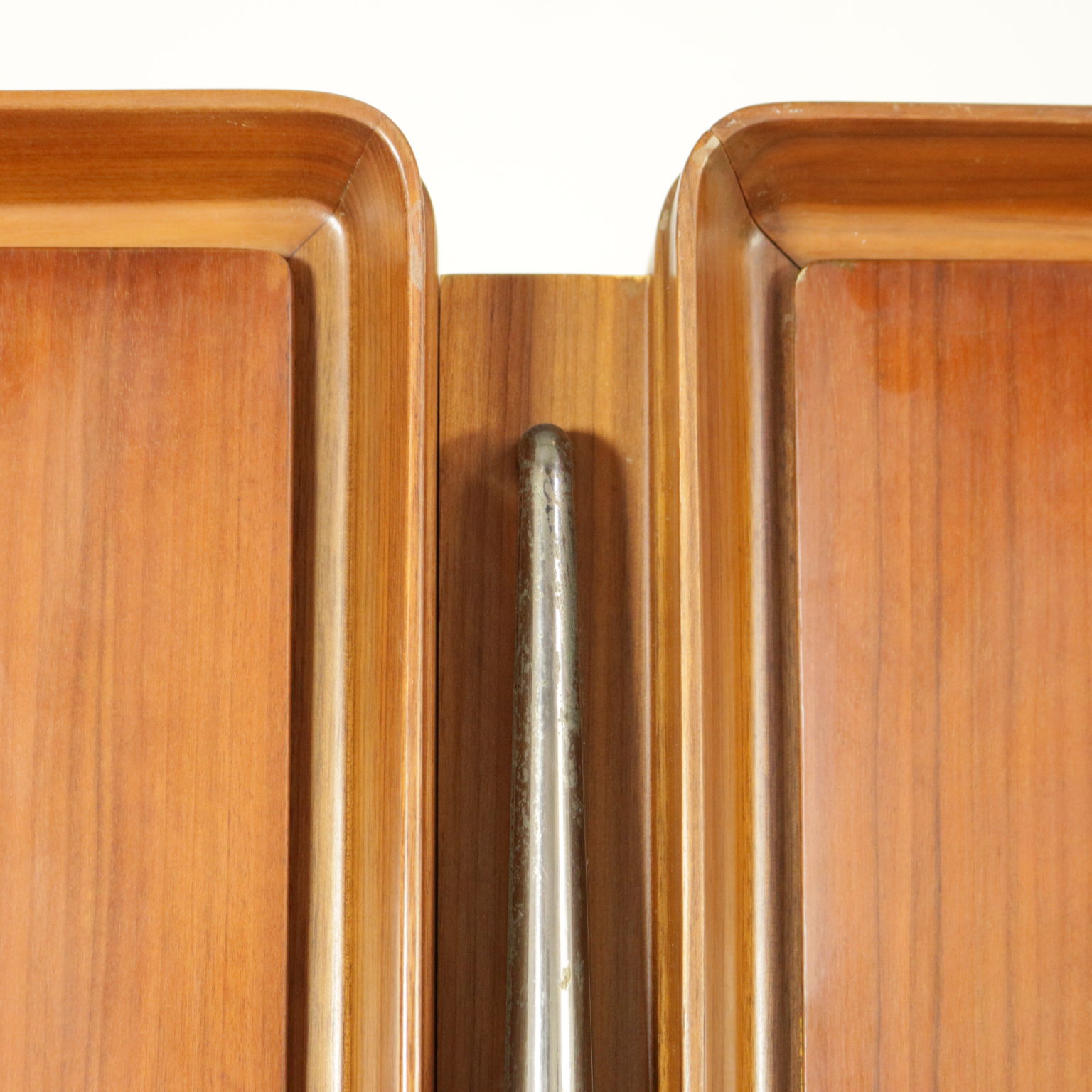 Mobile armadio; legno impiallacciato teak, ottone brunito.