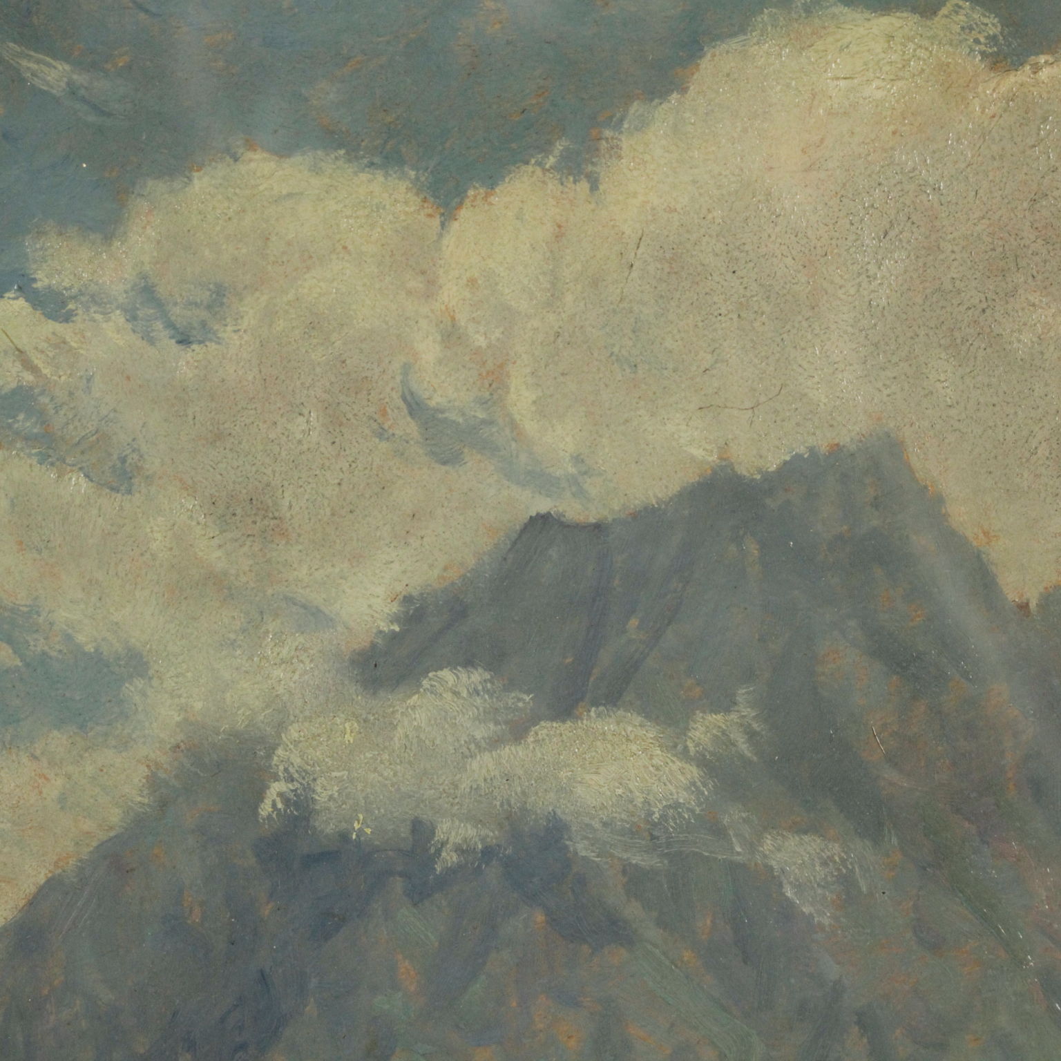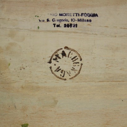 Olio su compensato. Firmato in basso a destra. Sul retro presenti timbro dello studio dell'artista e timbro di Macugnana, località montana della Val d'Ossola ove il pittore visse e che spesso raffigurò nelle sue opere. In cornice.