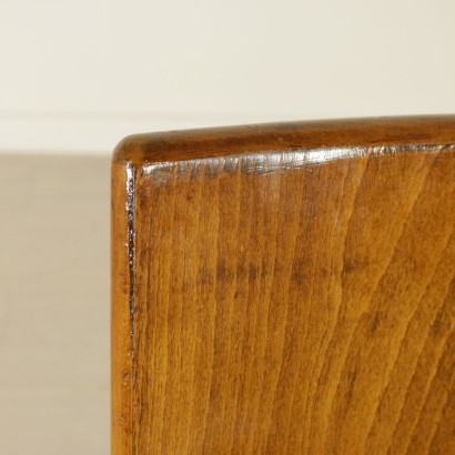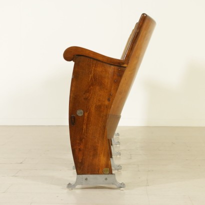 Fila di sedie con seduta ribaltabile; legno di faggio e compensato di pioppo. Disponibilità di altri pezzi in magazzino.
