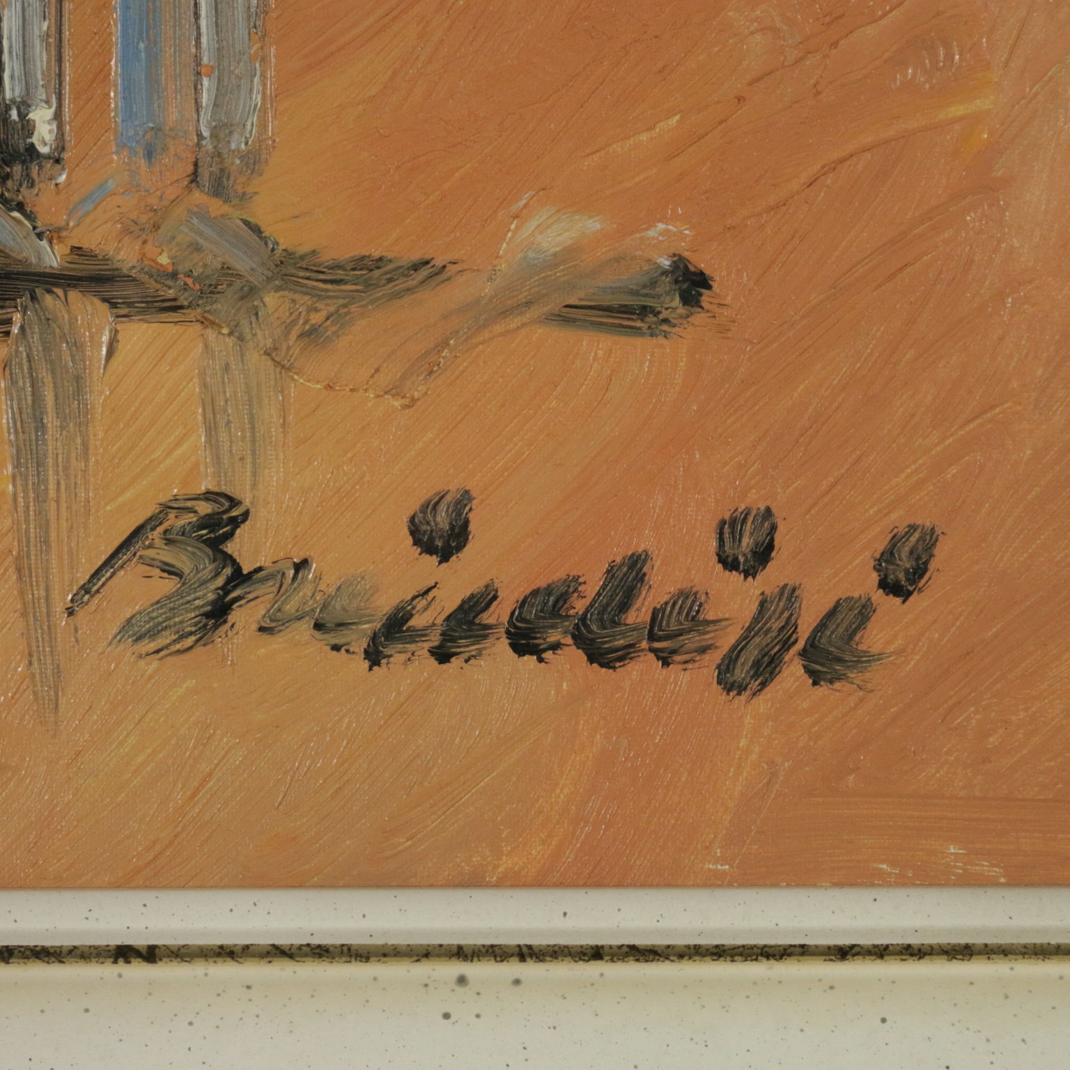 Olio su tela. Firmato in basso a destra e al retro. In cornice.