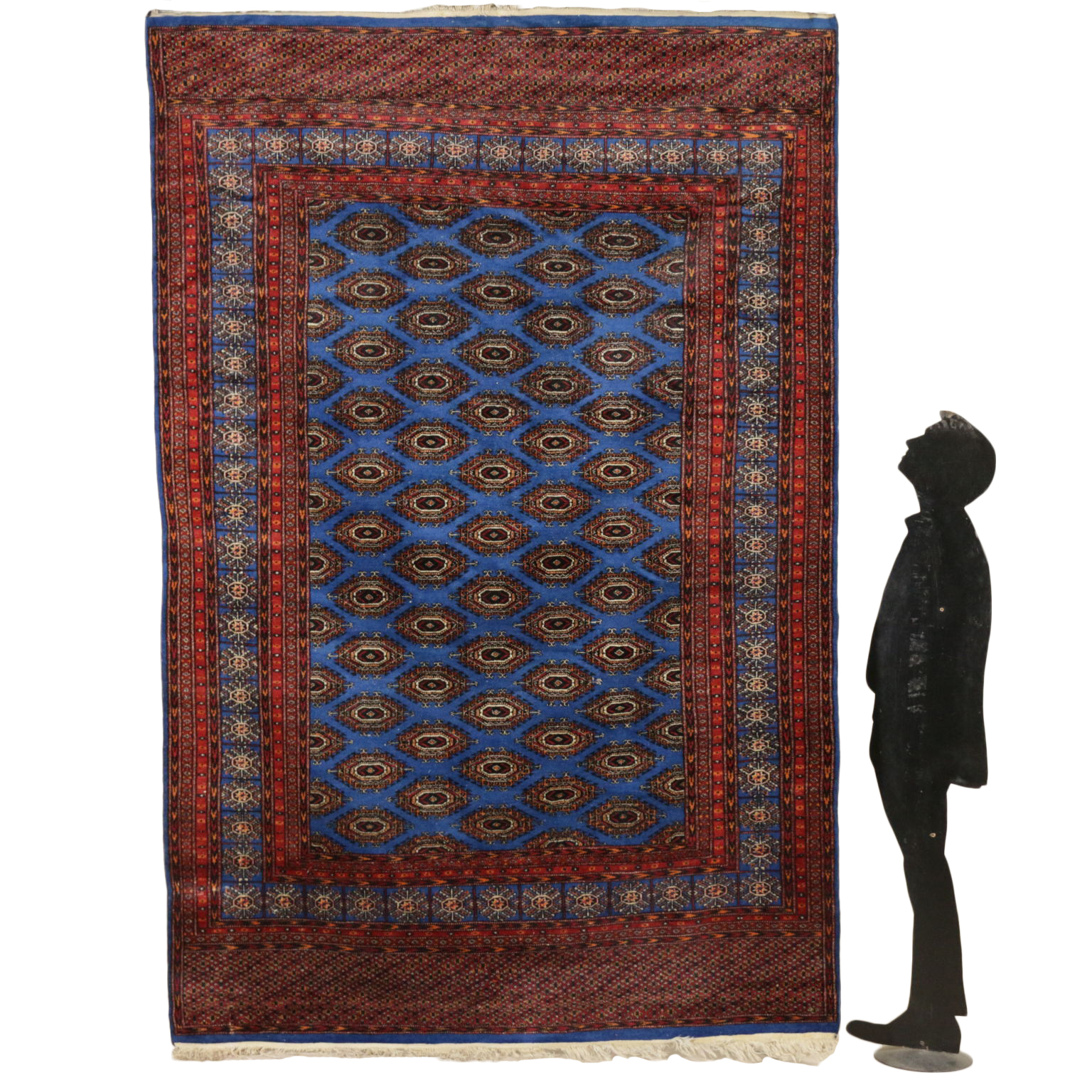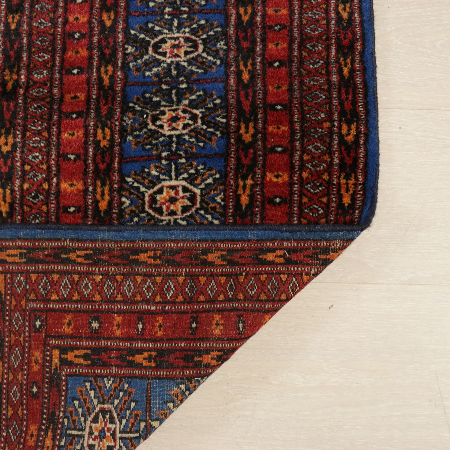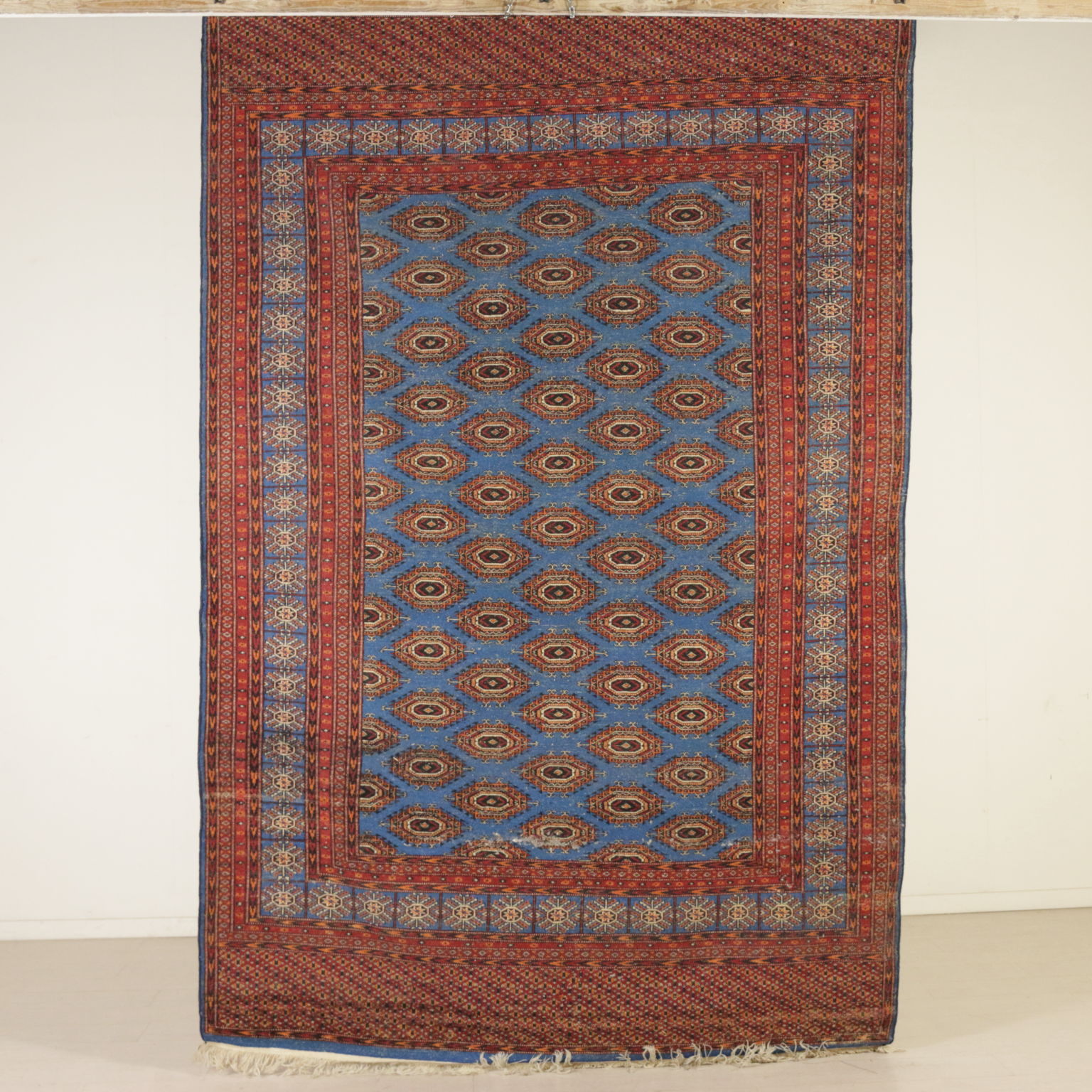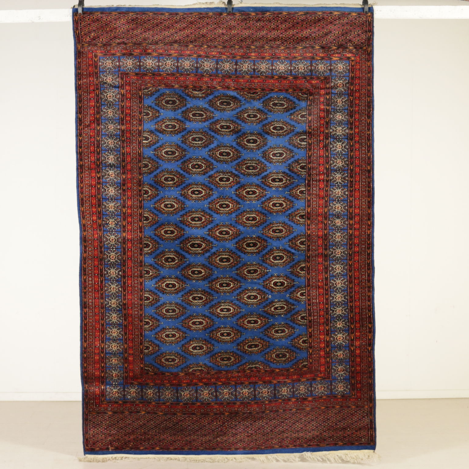 Tappeto Bukhara (Pakistan); nodo fine, fabbricazione manuale.