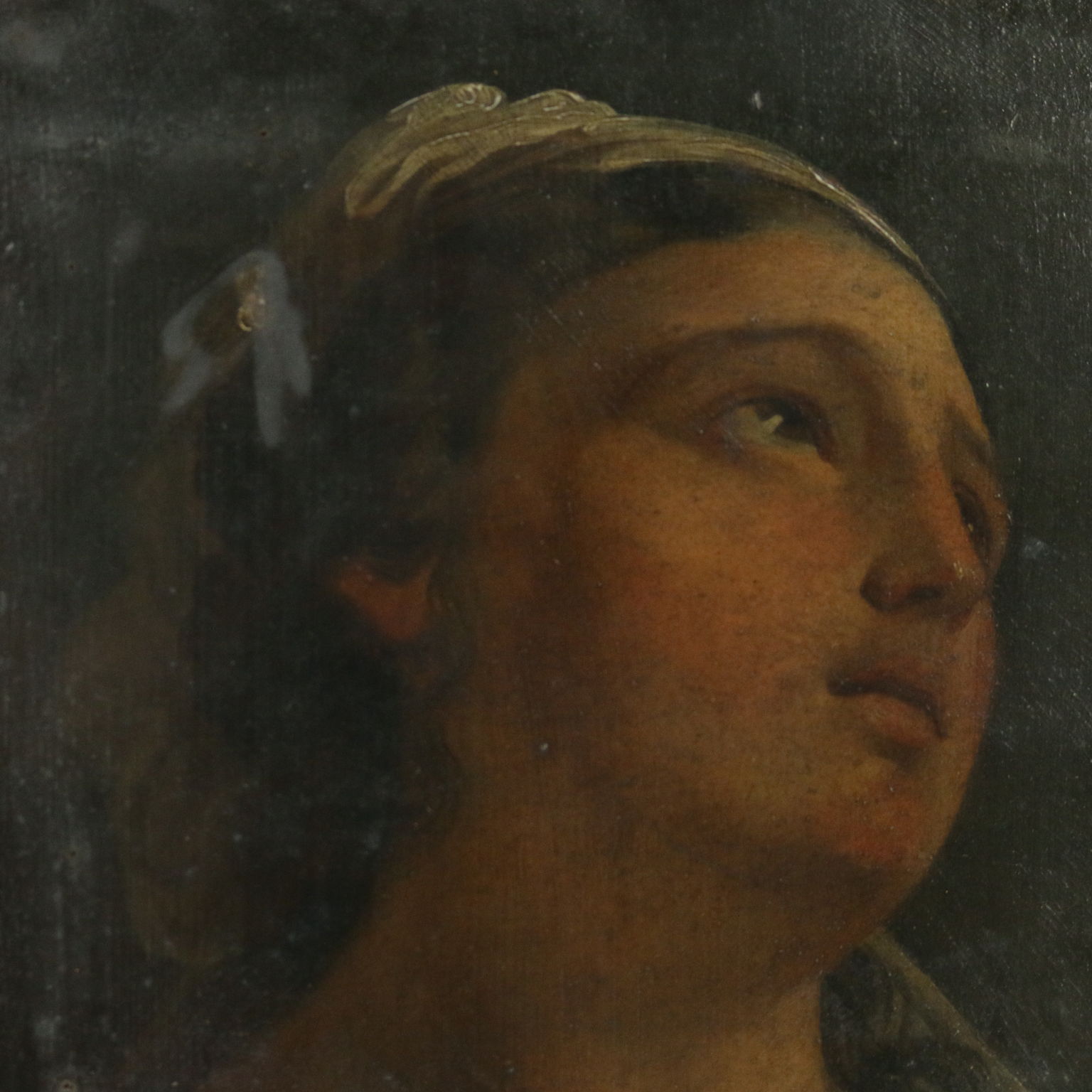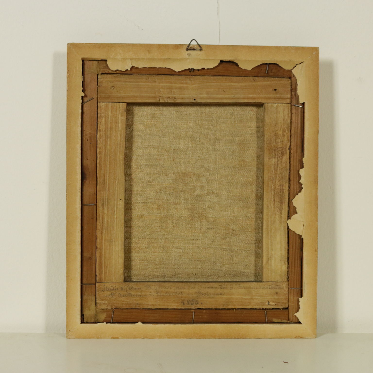 Olio su tela. Al retro sul telaio è presente una scritta attributiva "Studio di Cesare Bolognesi, preso dal quadro di G. Ferrari esistente nell'Accademia di Belle Arti di Bologna", con la data 1850. In cornice.