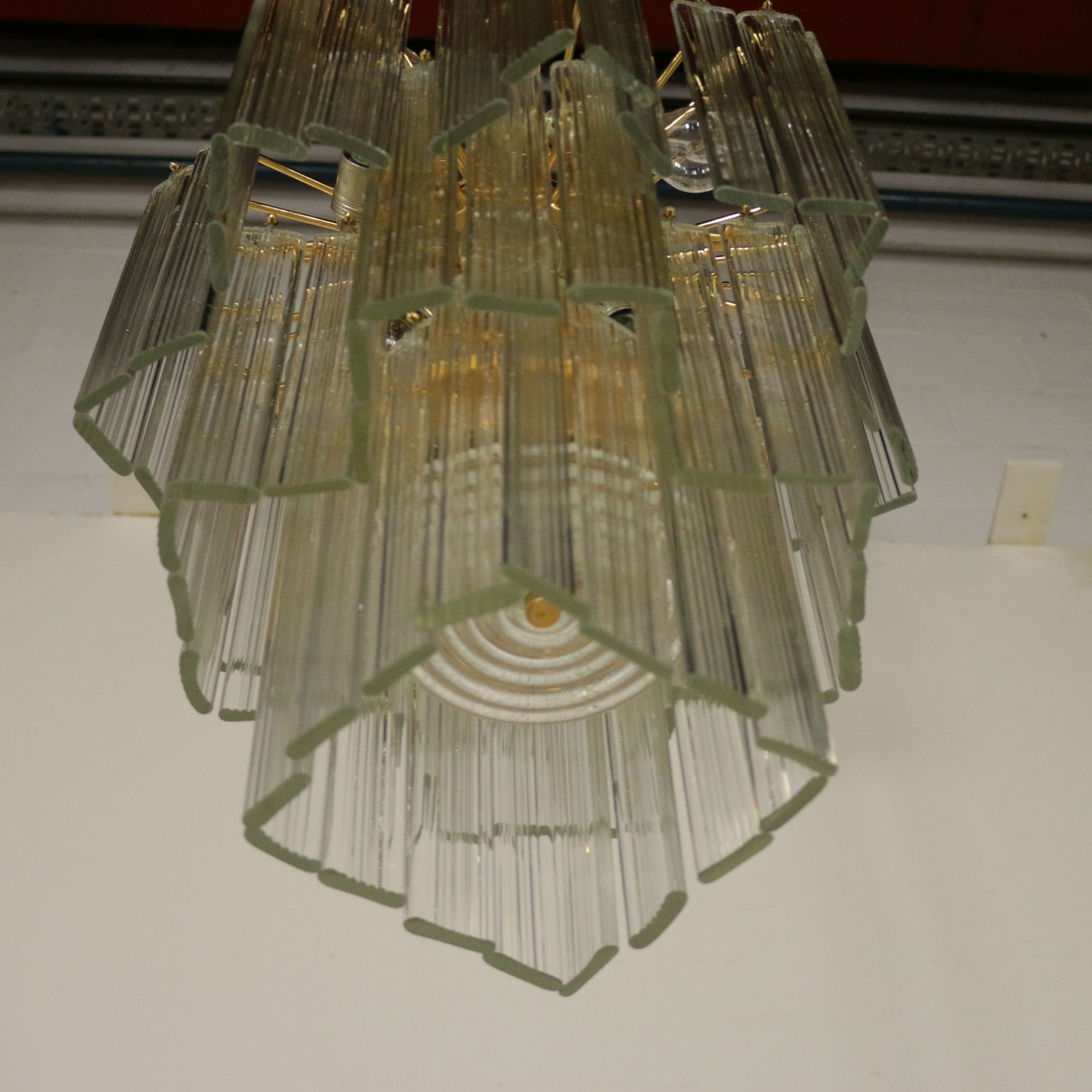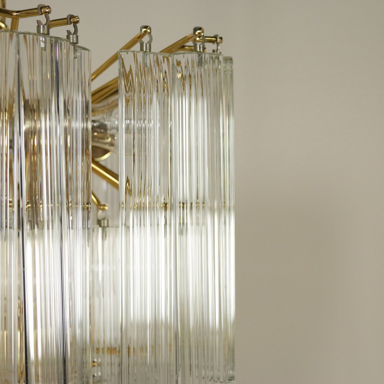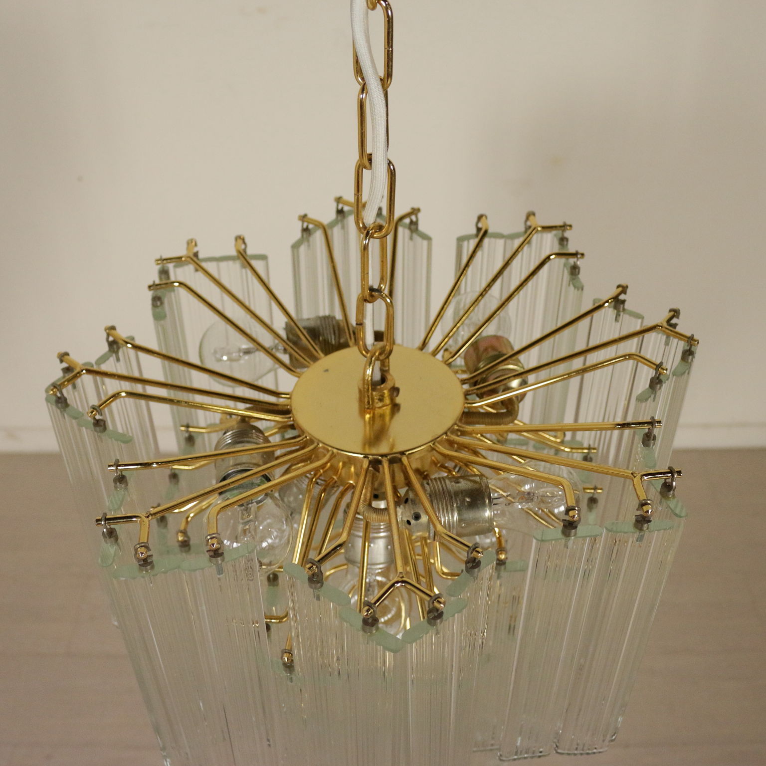 Lampada Venini; struttura in metallo e ottone dorato, pendenti in cristallo rigato.
