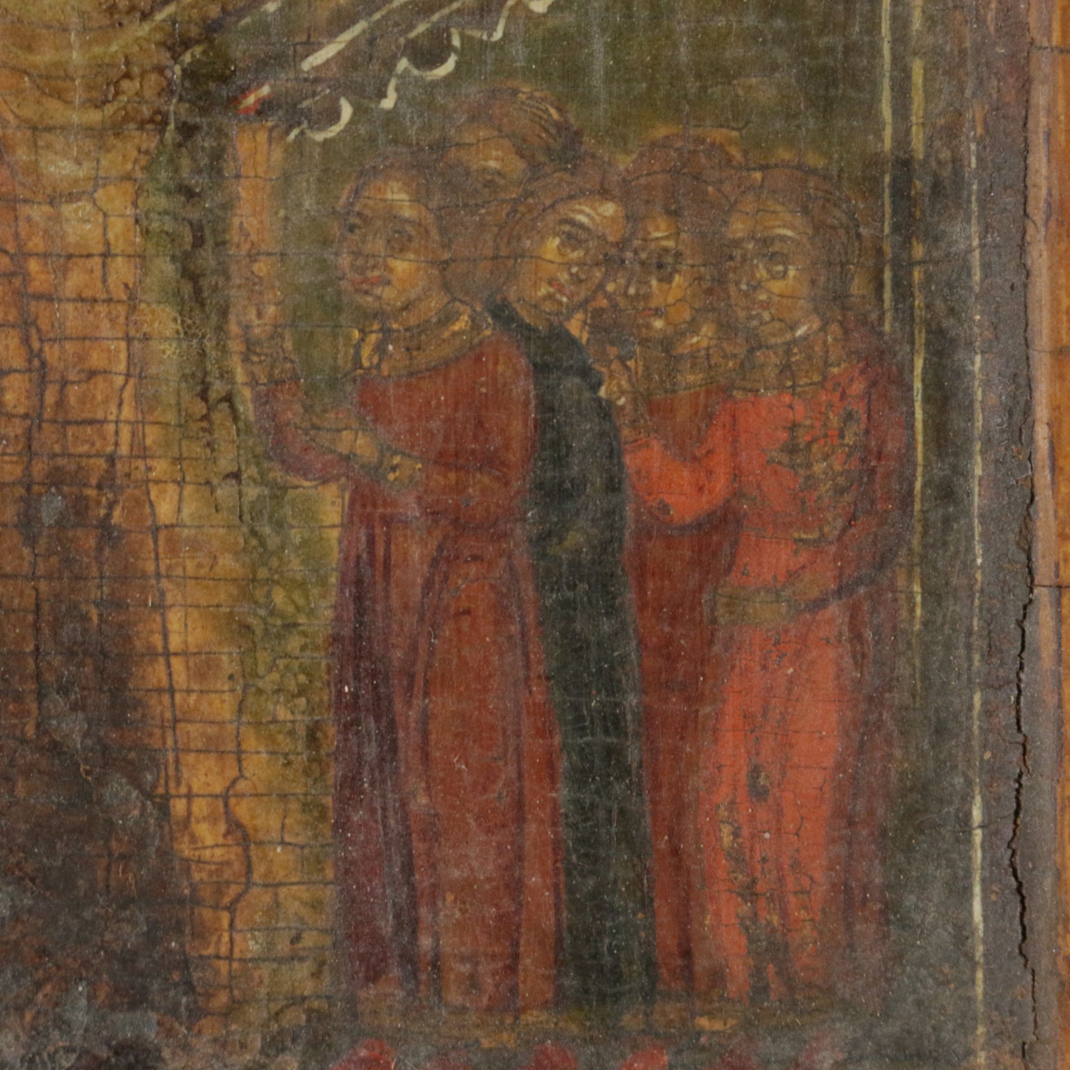 Tempera su tavola. Diverse cadute di colore e qualche danno del contorno.