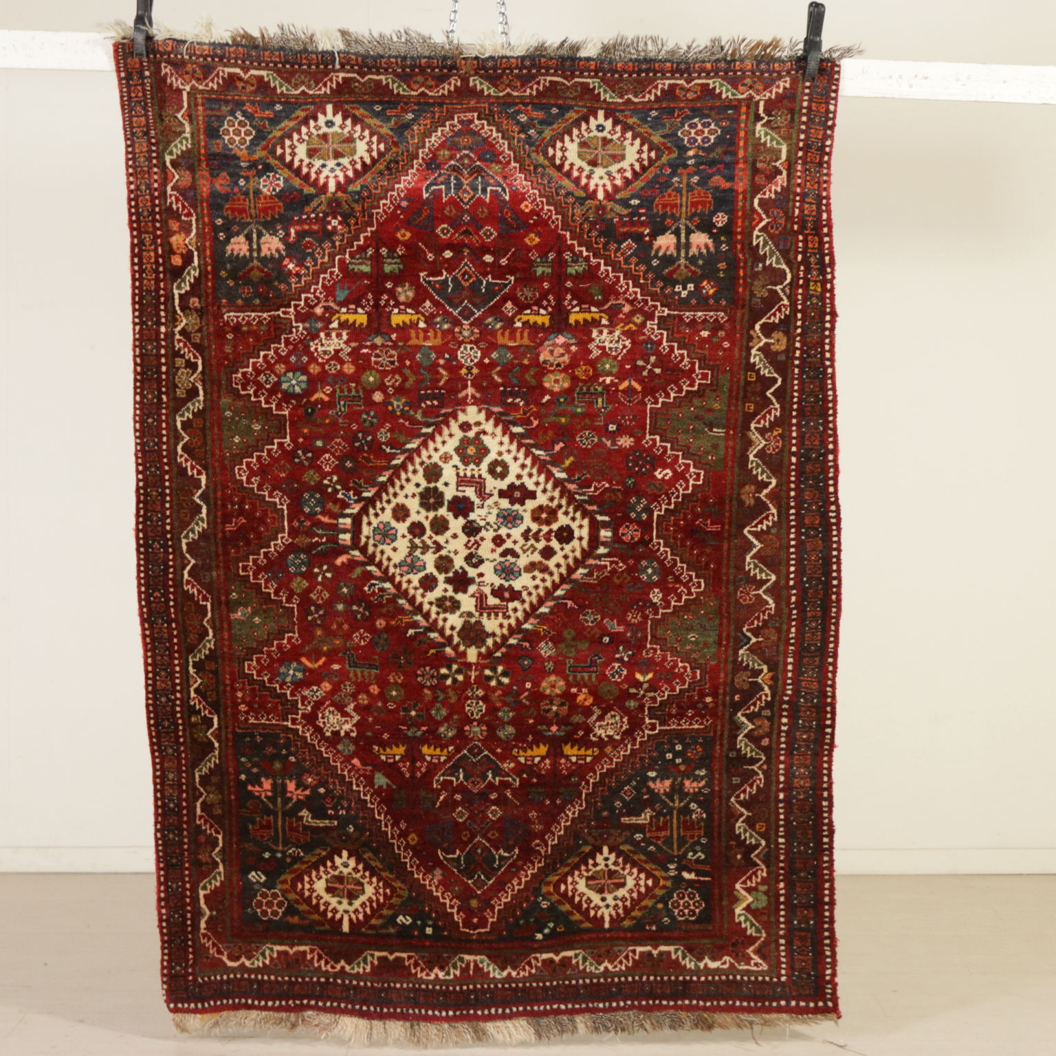 Tappeto Qashqai (Iran); nodo grosso, fabbricazione manuale.