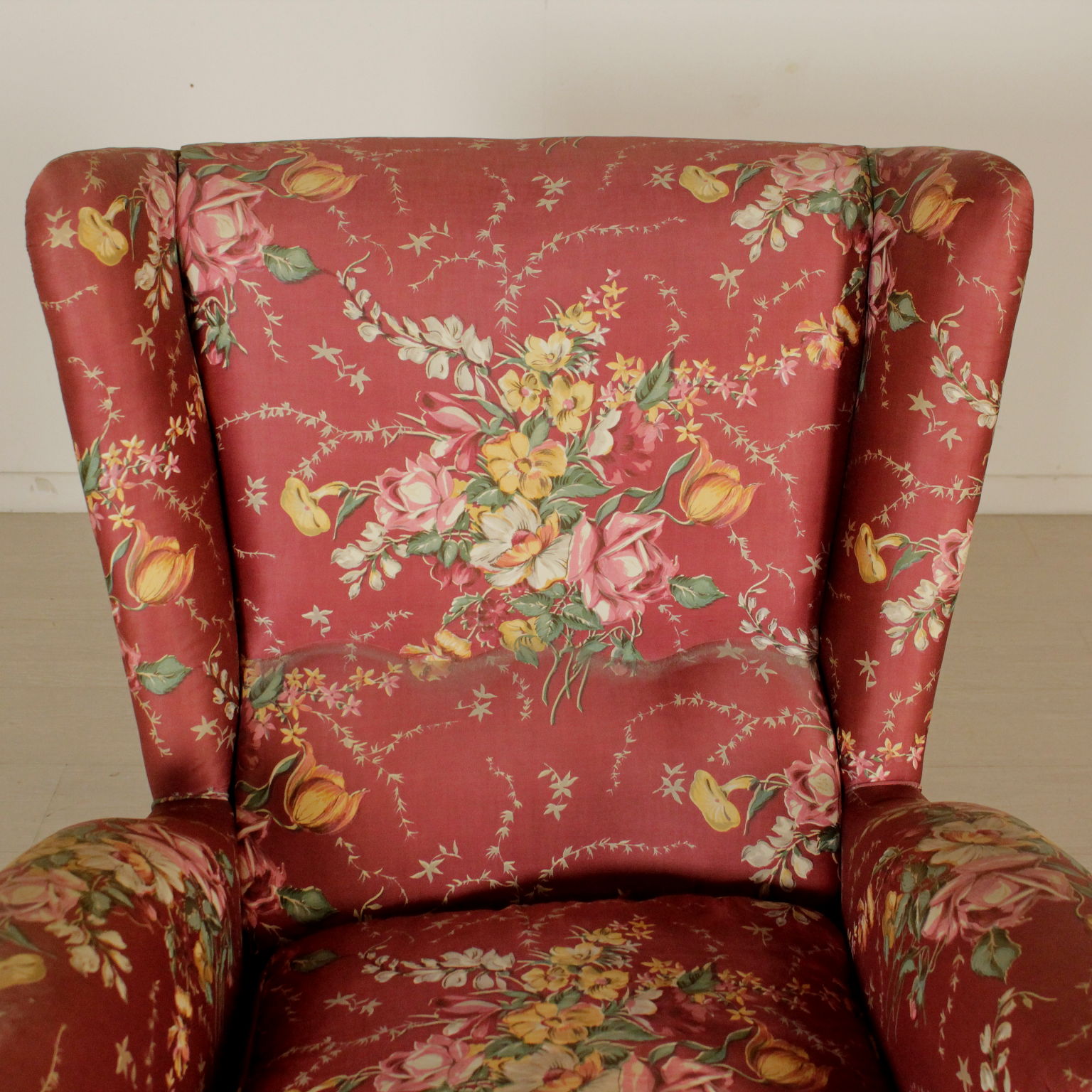 Poltrona; imbottitura a molle, cuscino in piuma, rivestimento in tessuto.