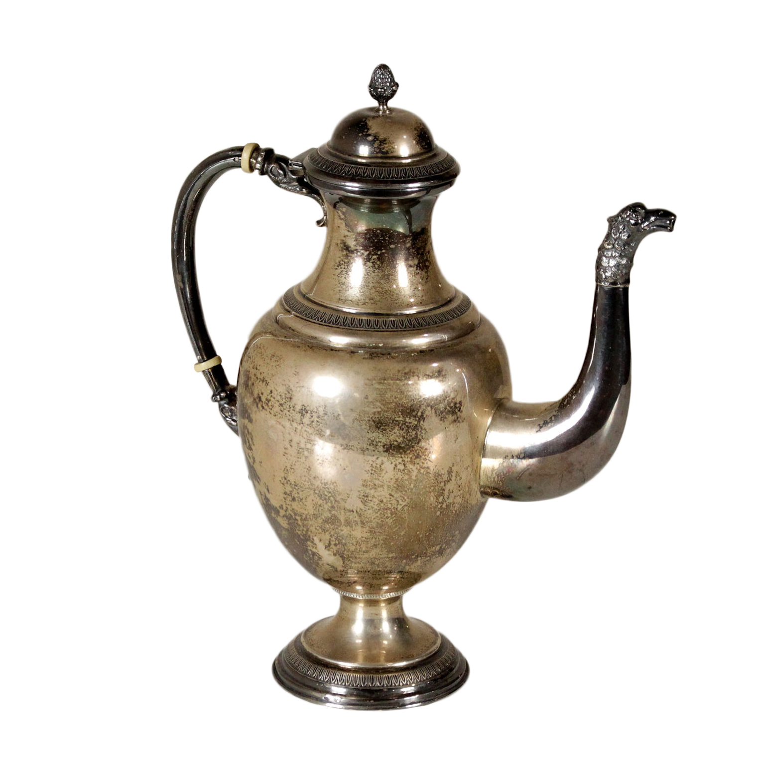 Caffettiera in argento in stile Neoclassico. Marchi dell'argento e dell'argentiere Alignani - Milano. Grammi 780.