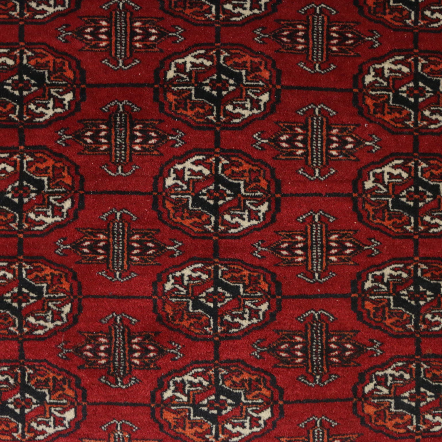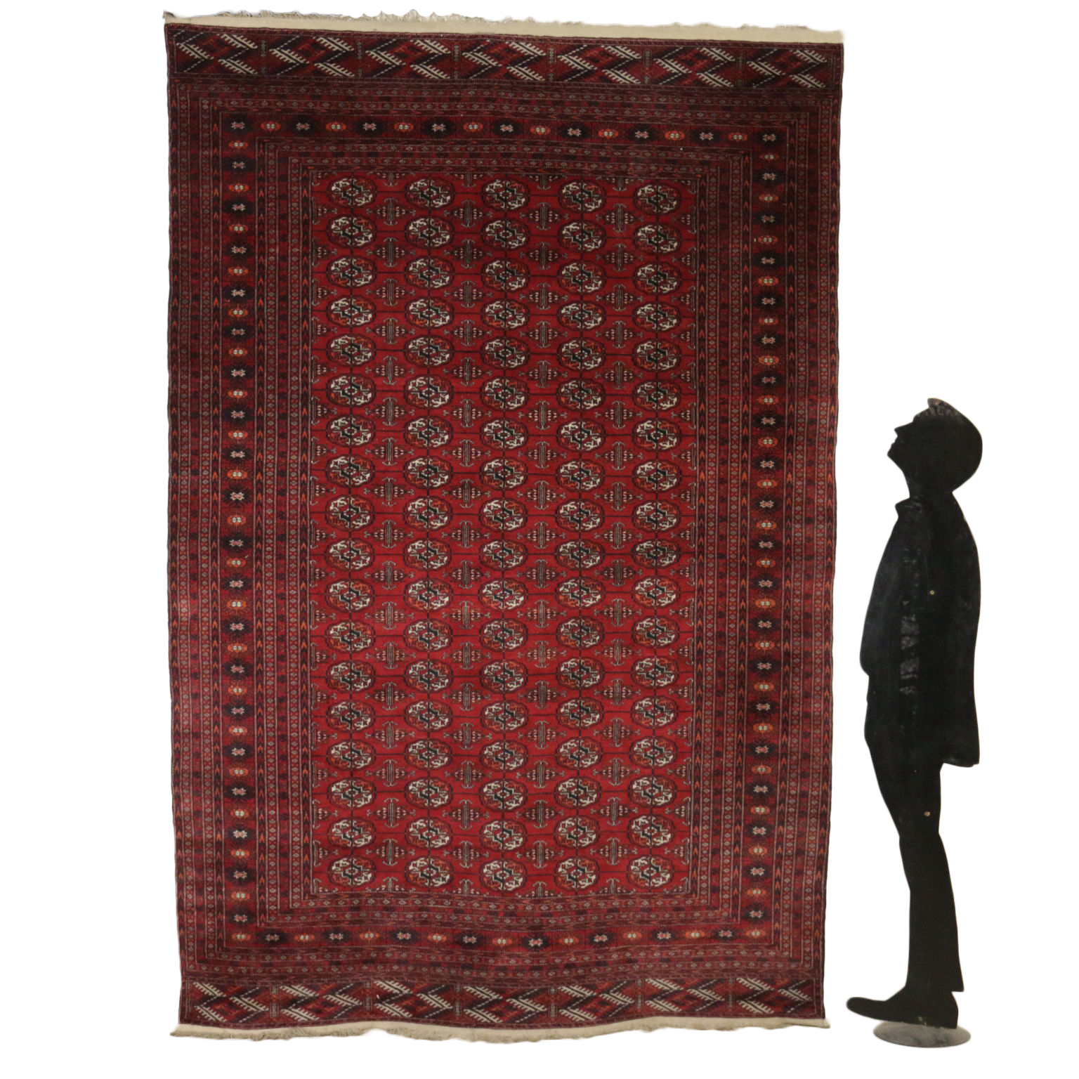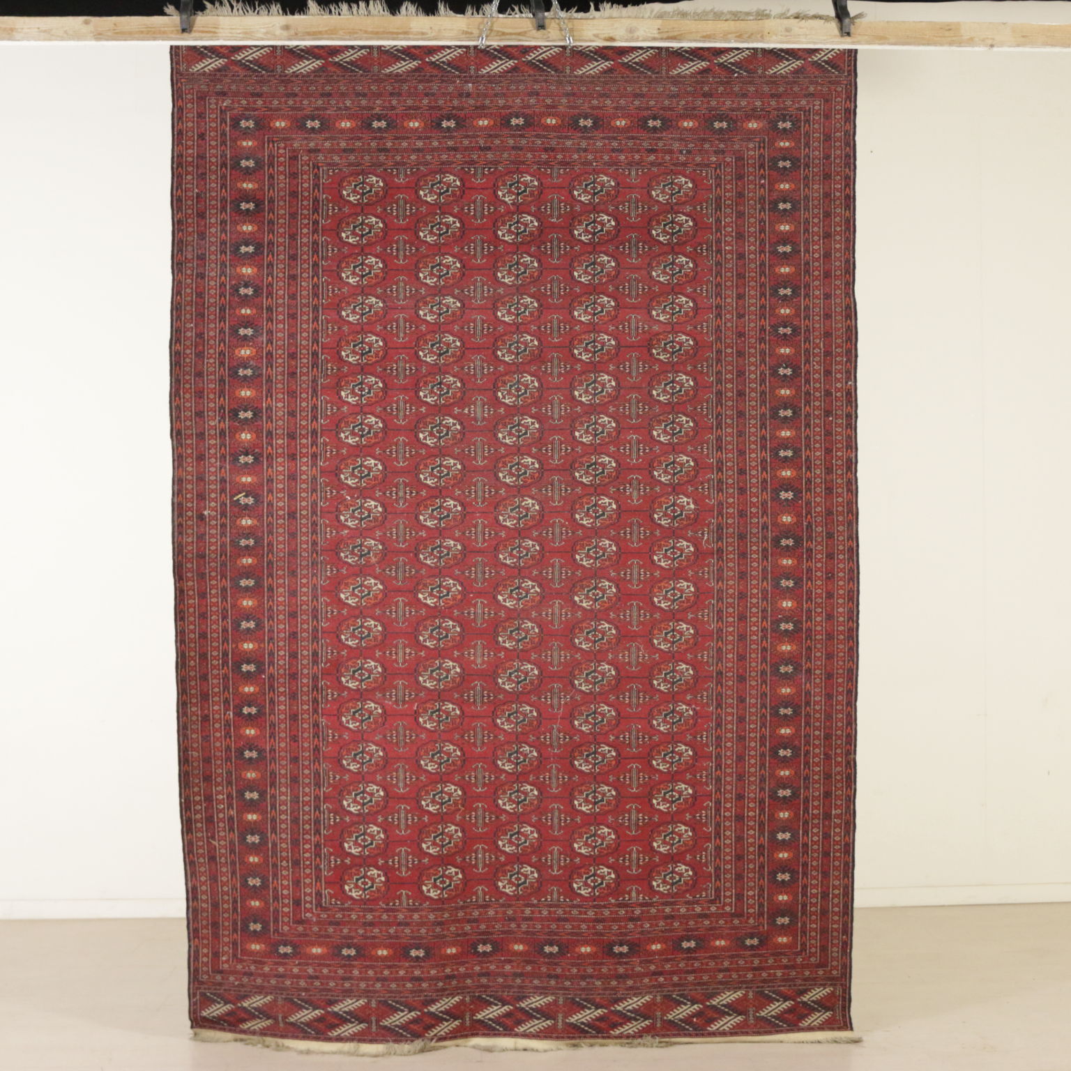 Tappeto Bokara (Pakistan); nodo fine, fabbricazione manuale.