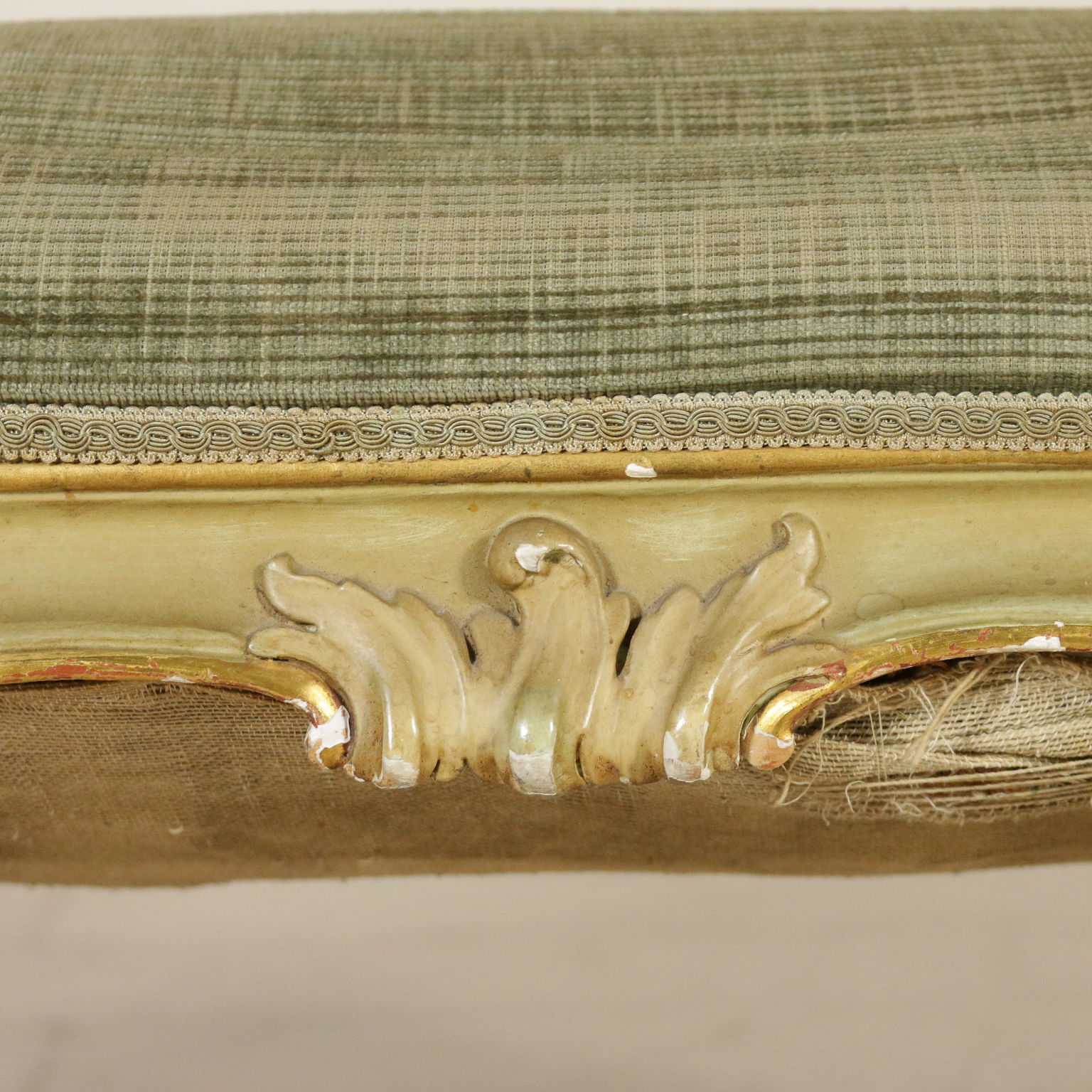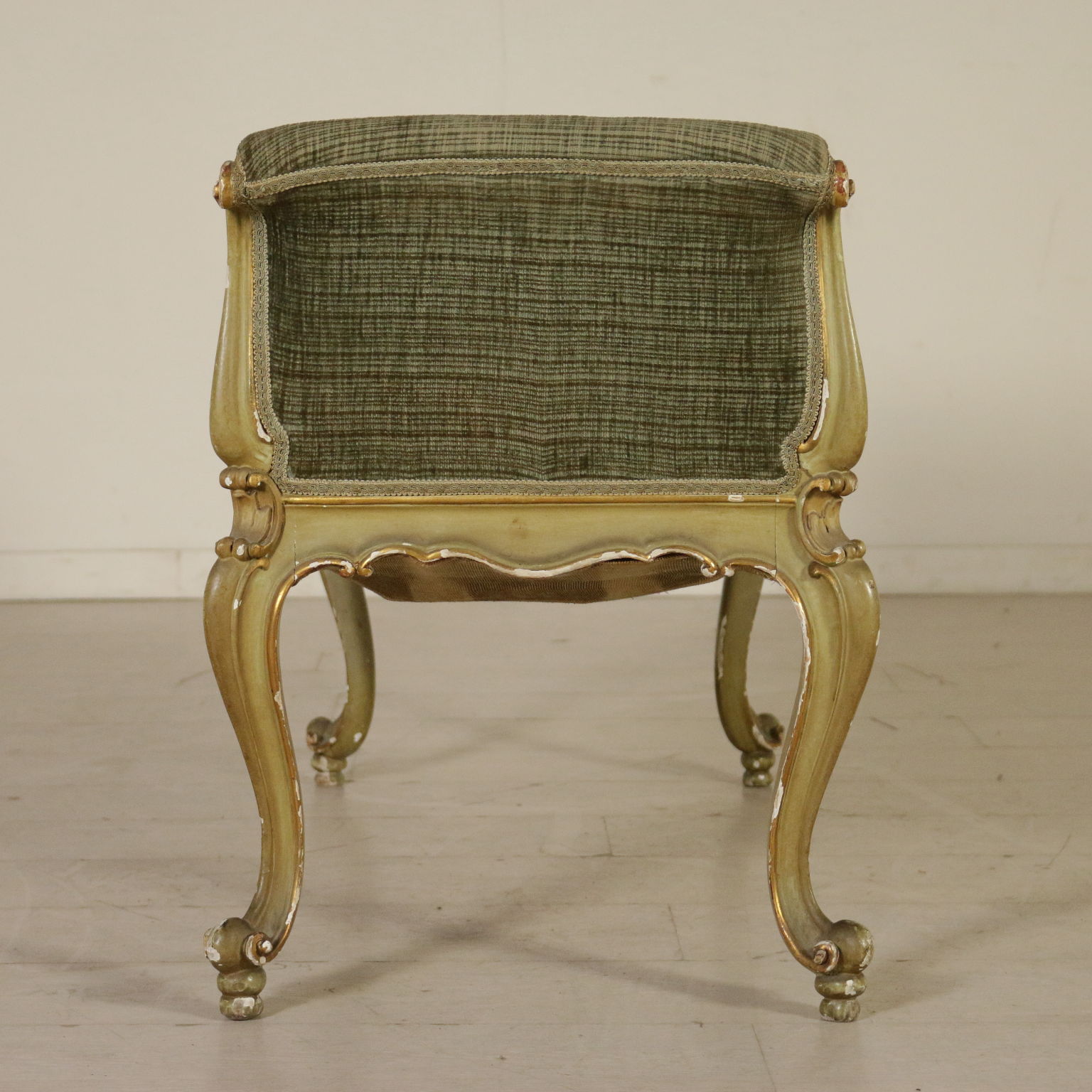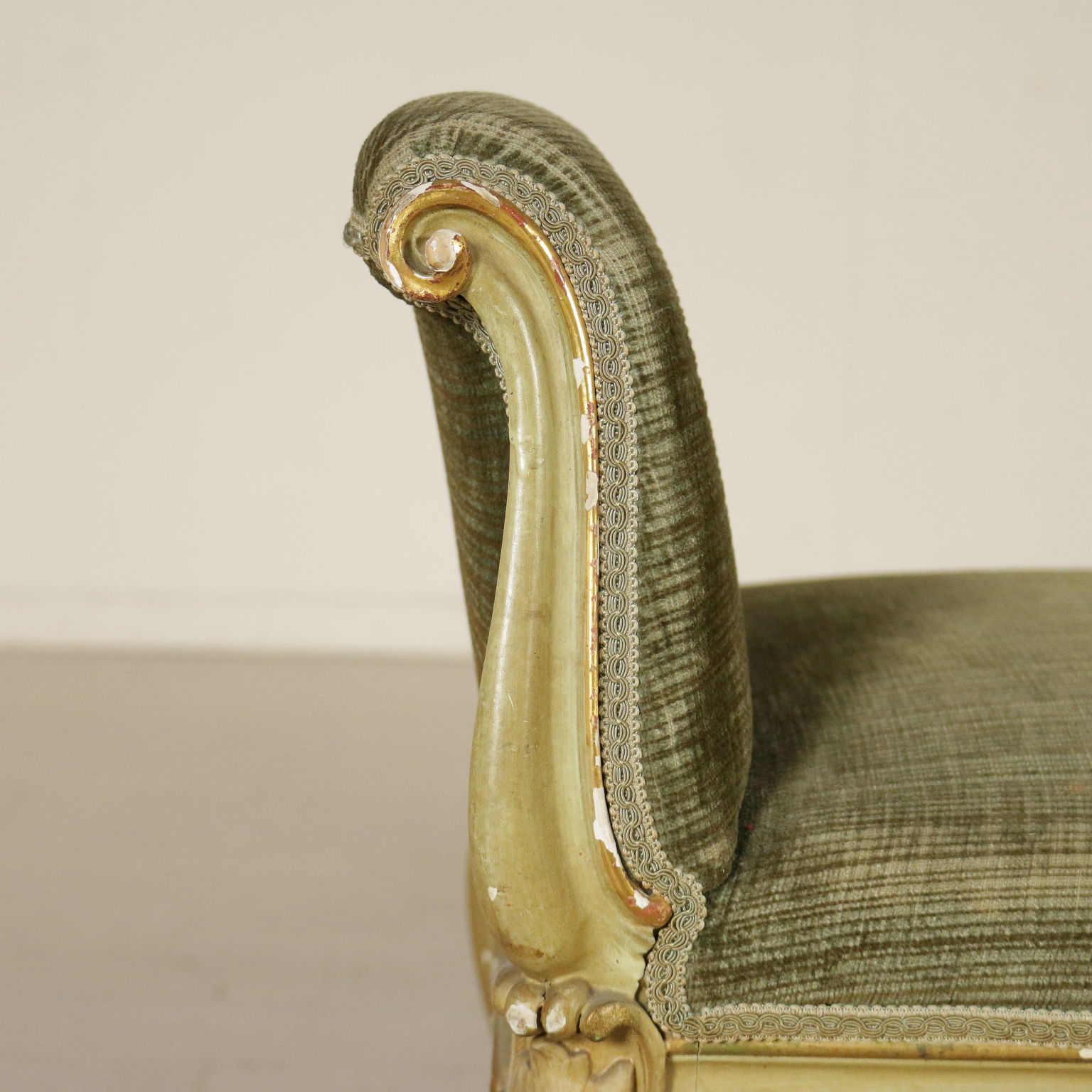Panchetta intagliata dalla linea mossa. Seduta imbottita.