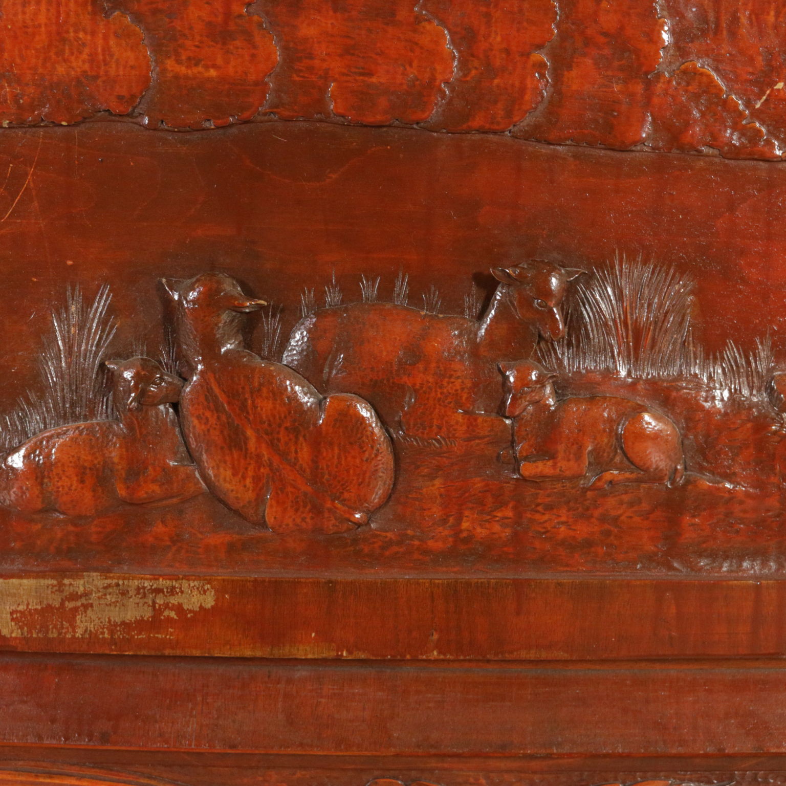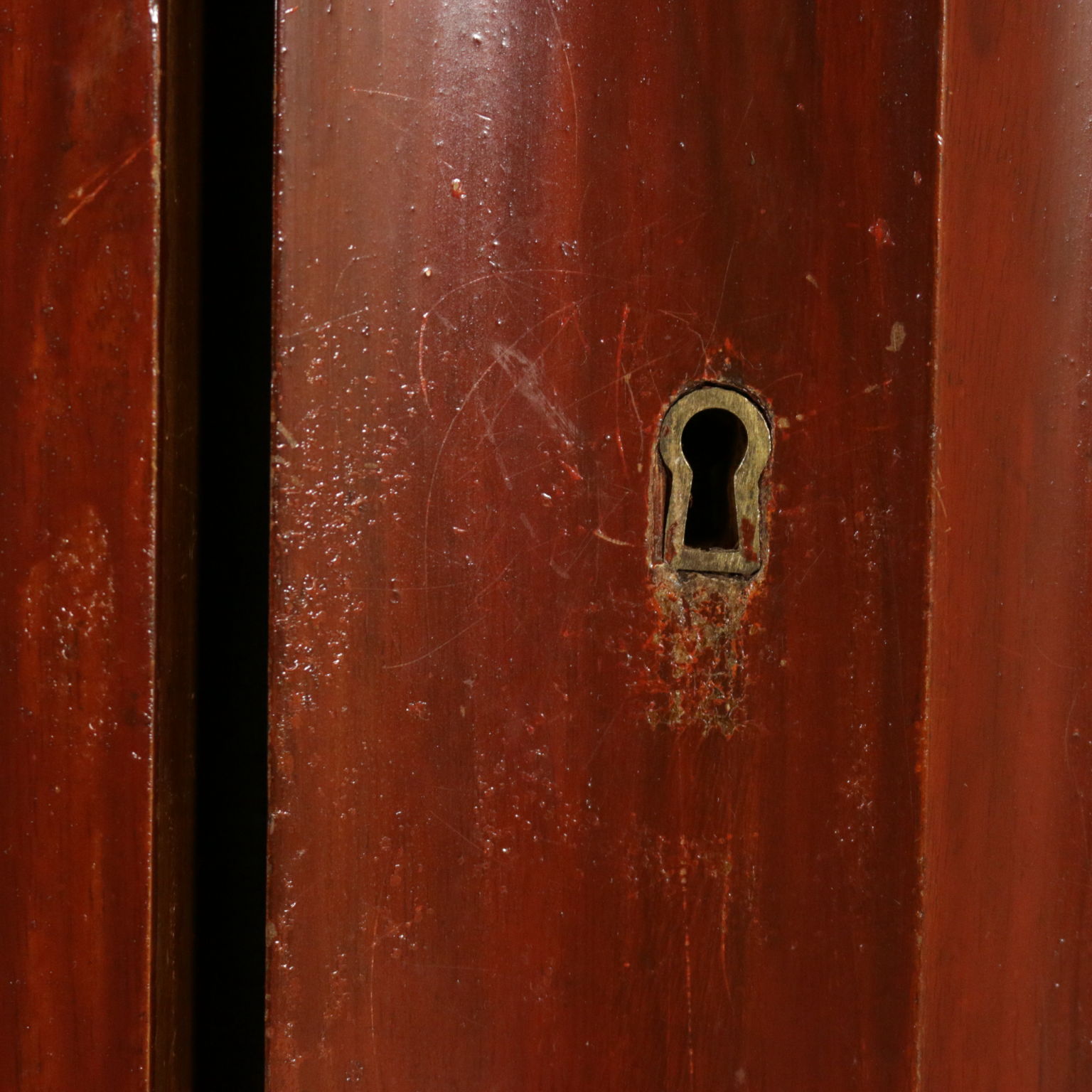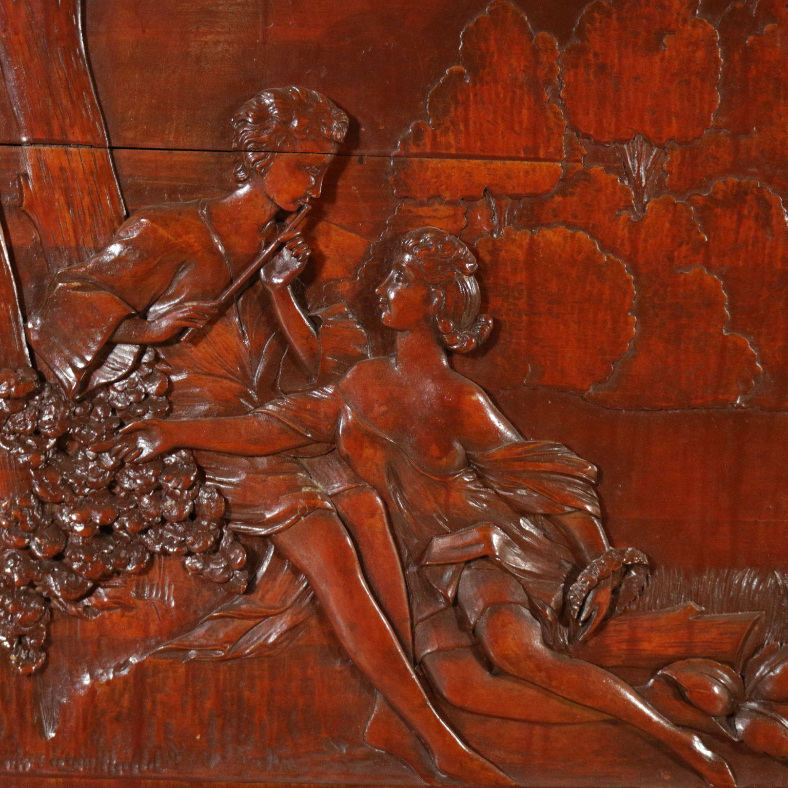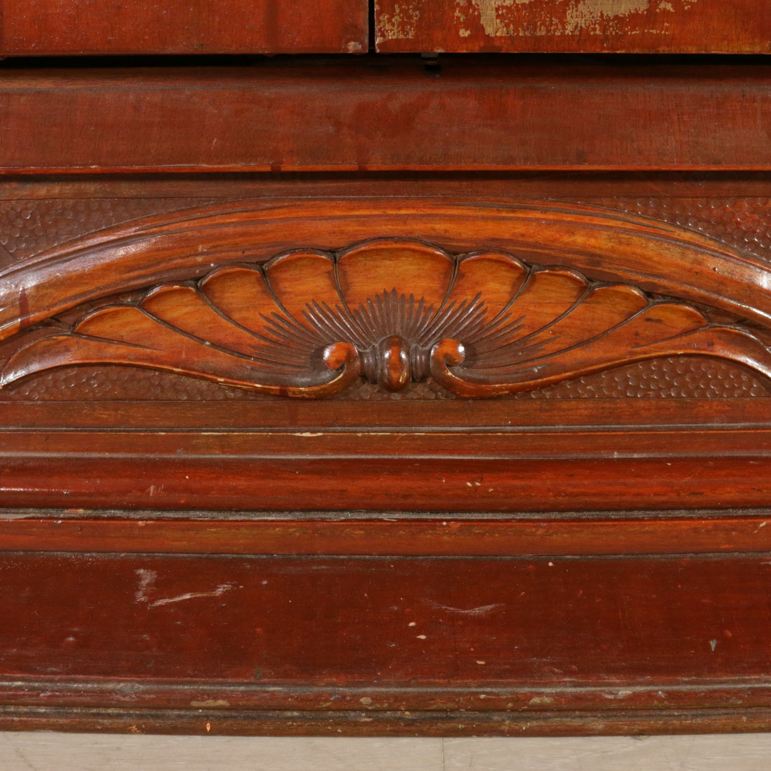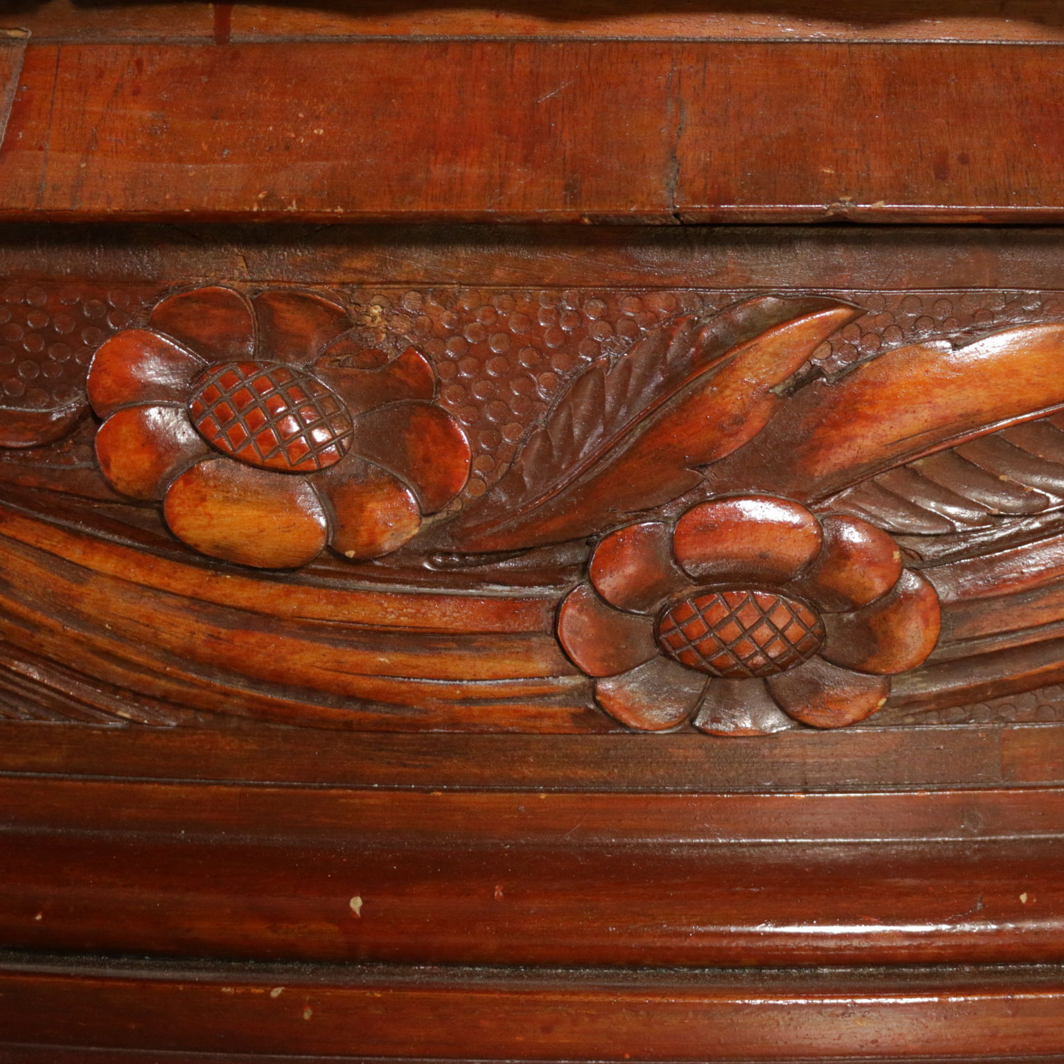 Mobile buffet; ante battenti con disegni intagliati e scanalature, piano in marmo, legno massello ed impiallacciatura di noce semi-laccato, interni impiallacciati in radica.