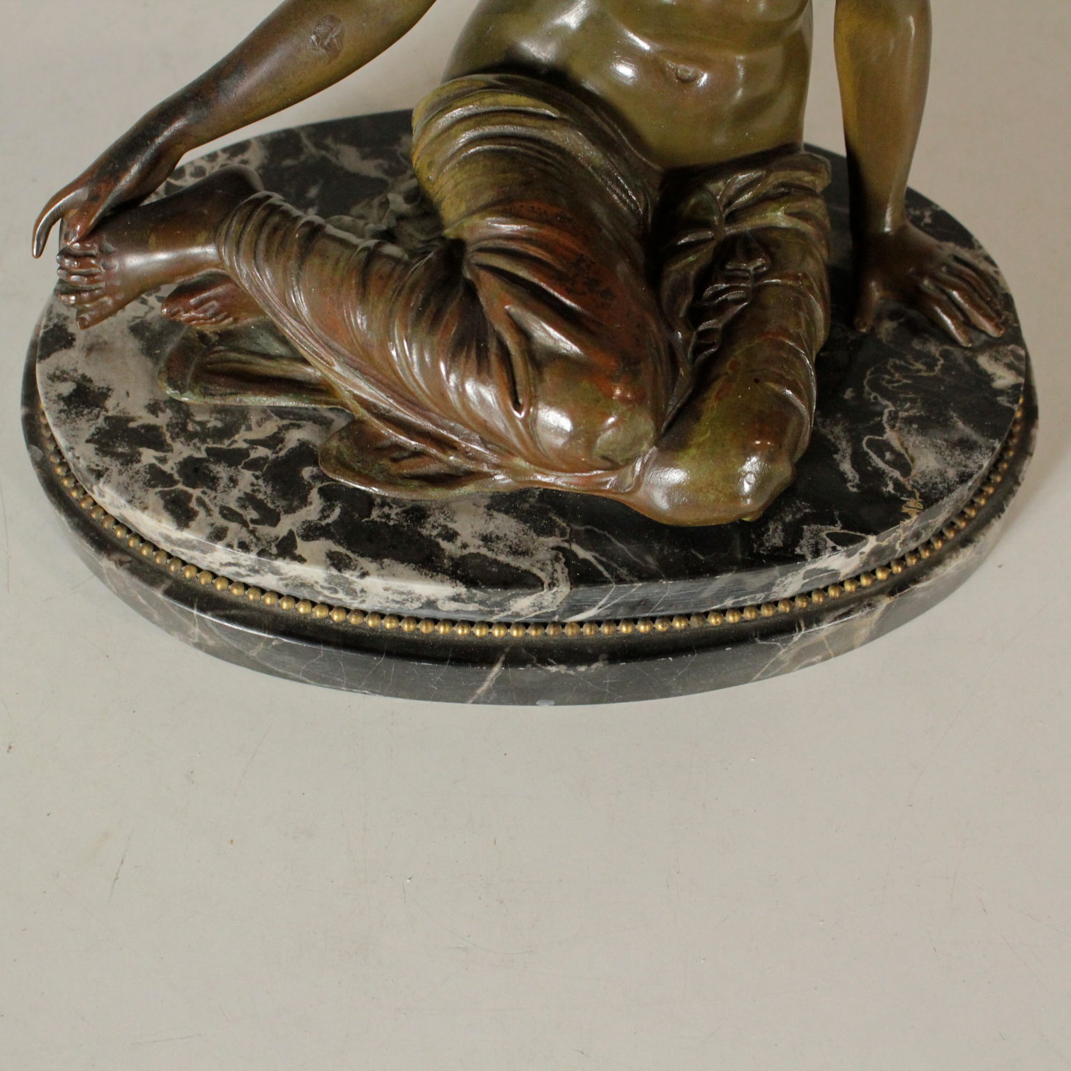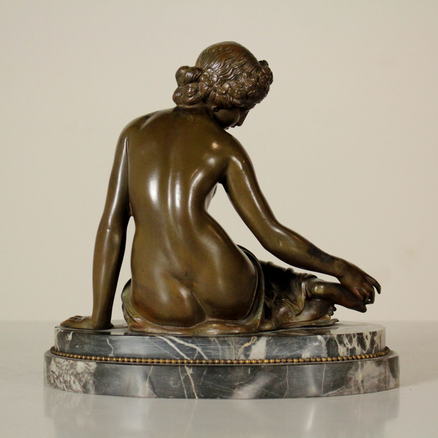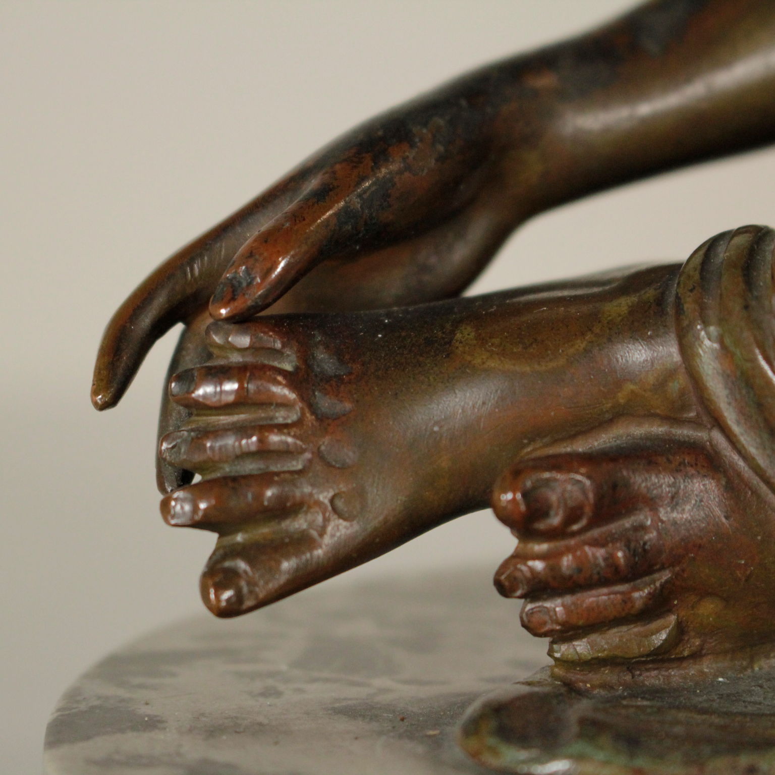 Scultura in bronzo raffigurante fanciulla, su base in marmo nero a forma ovale. Autore anonimo.