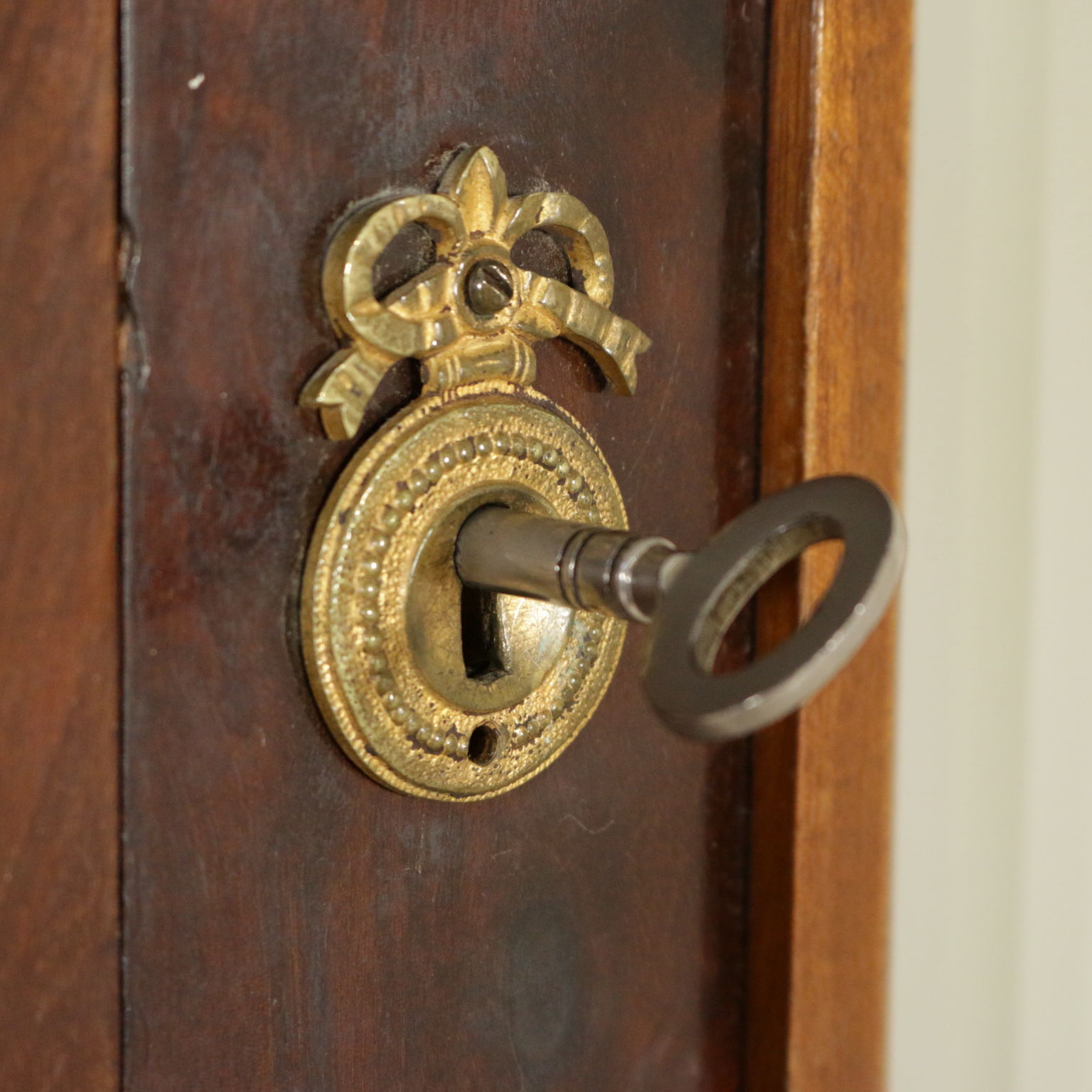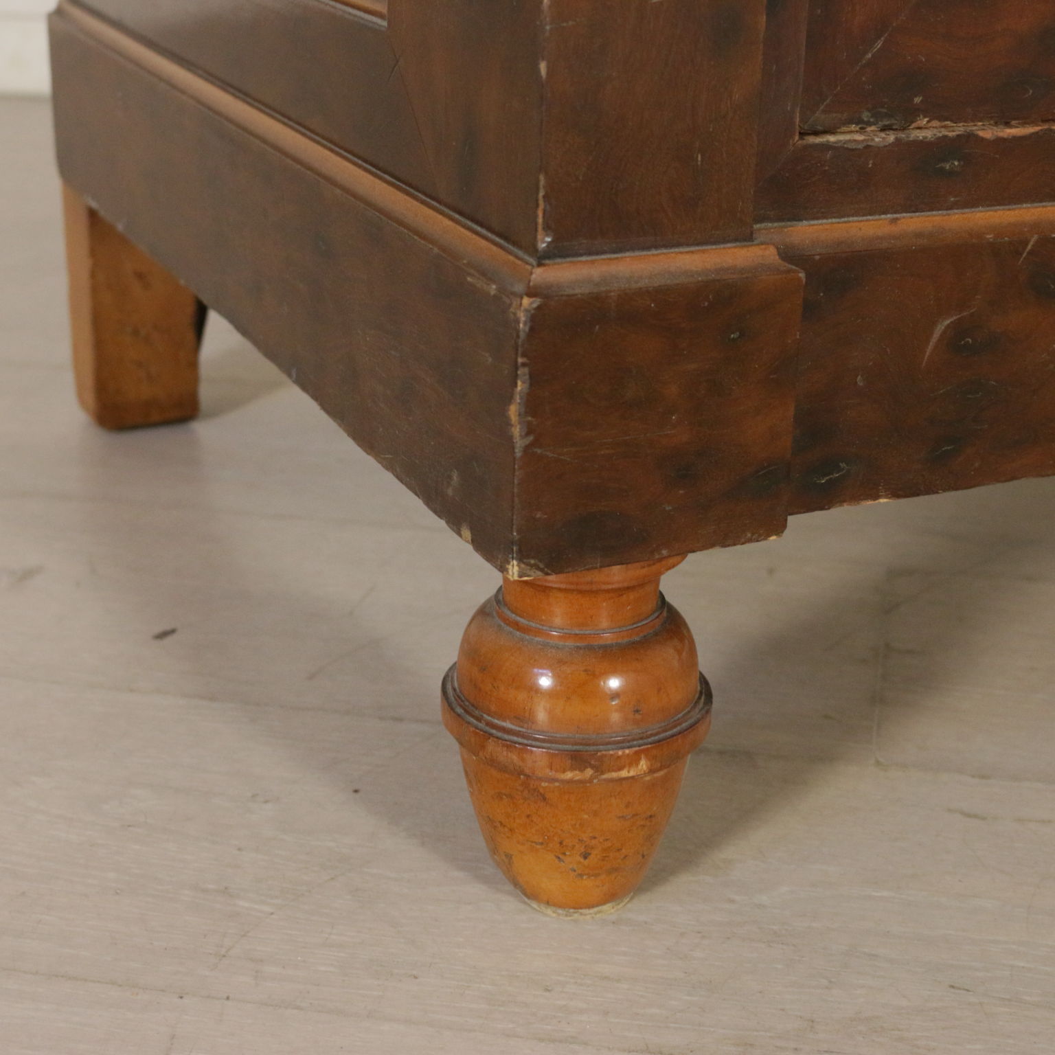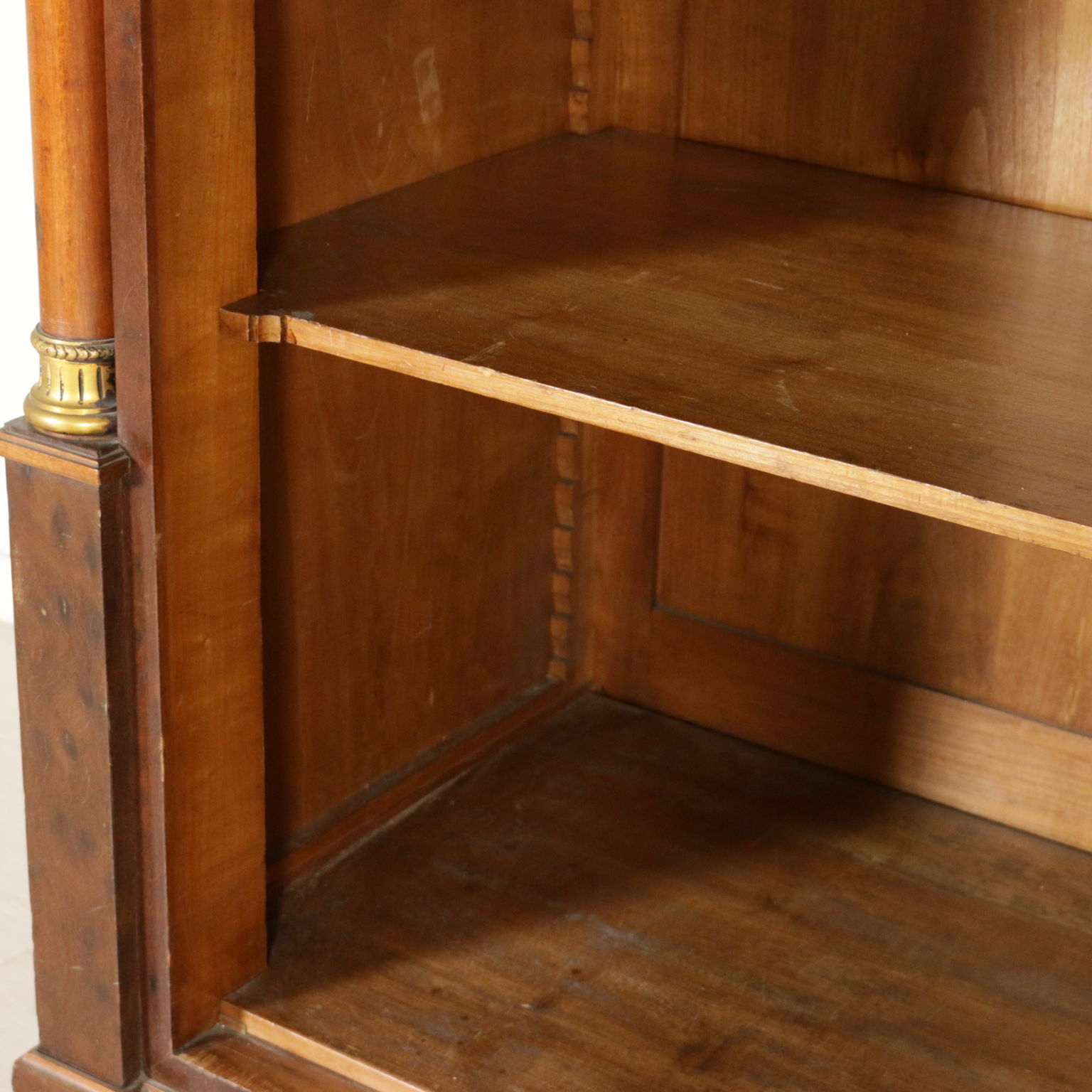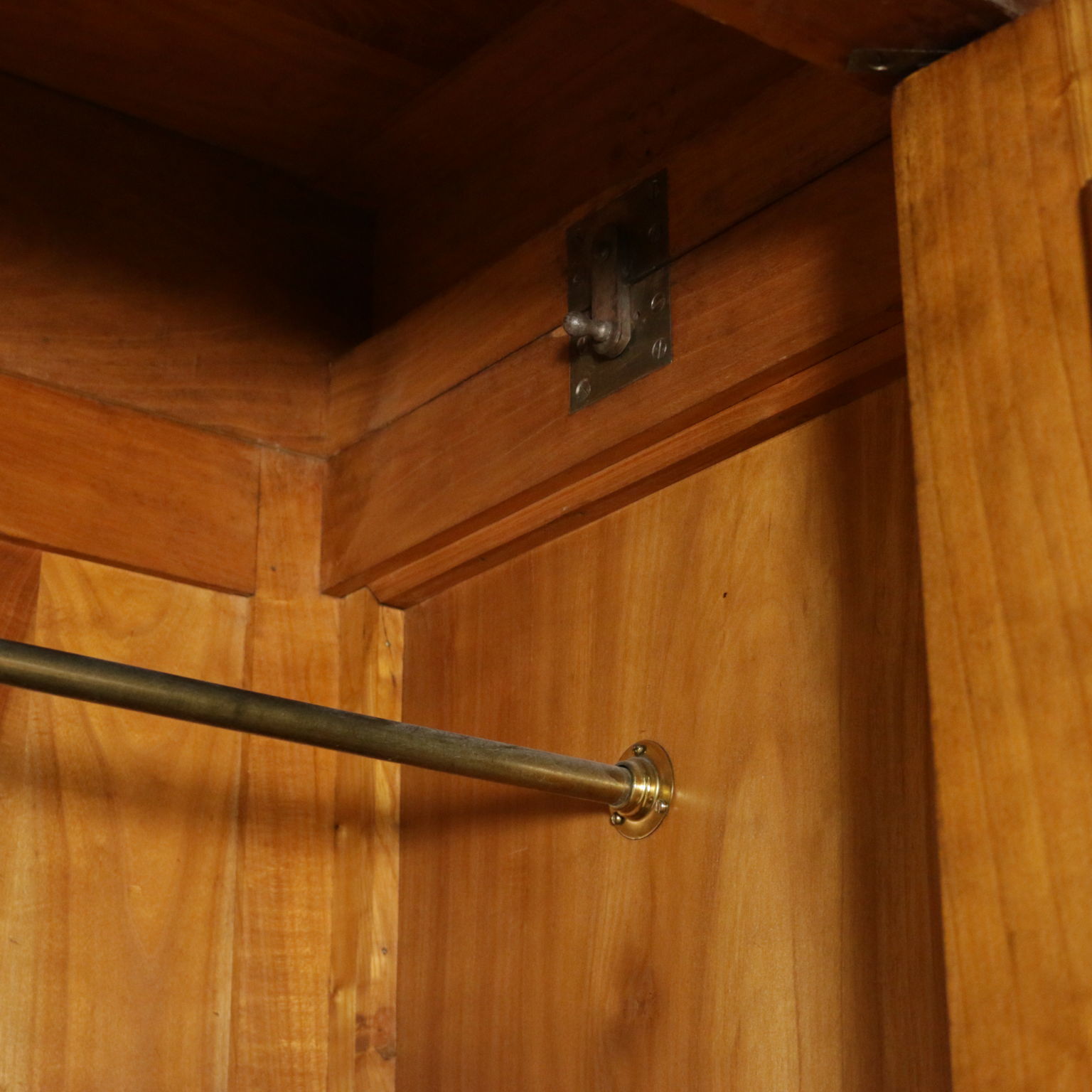 Elegante armadio ad un'anta con specchio bisellato. Montanti con colonne intere con capitelli in ottone. Piedi torniti.