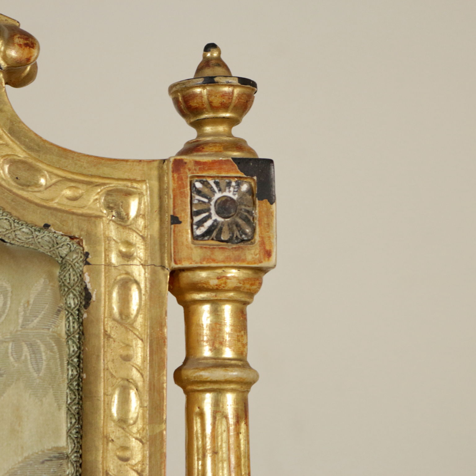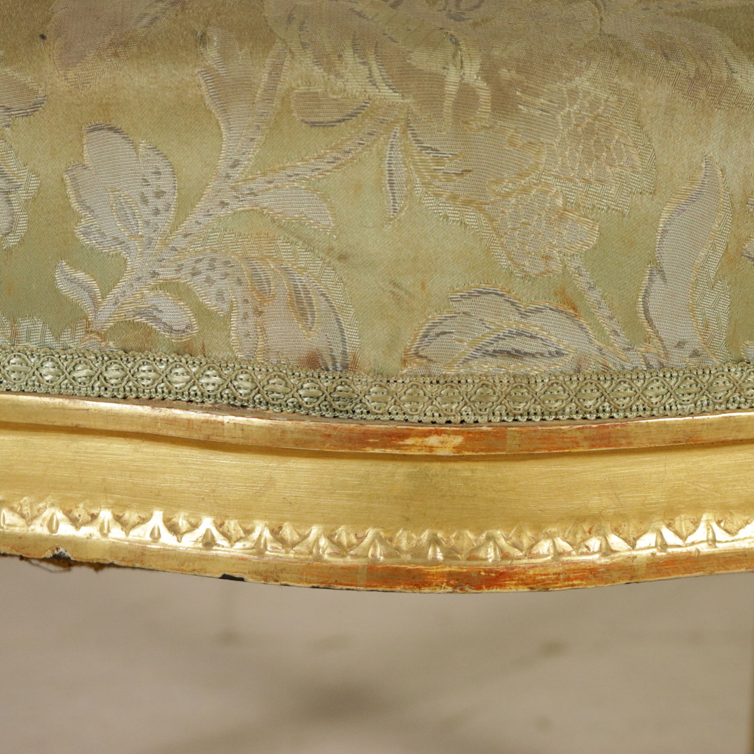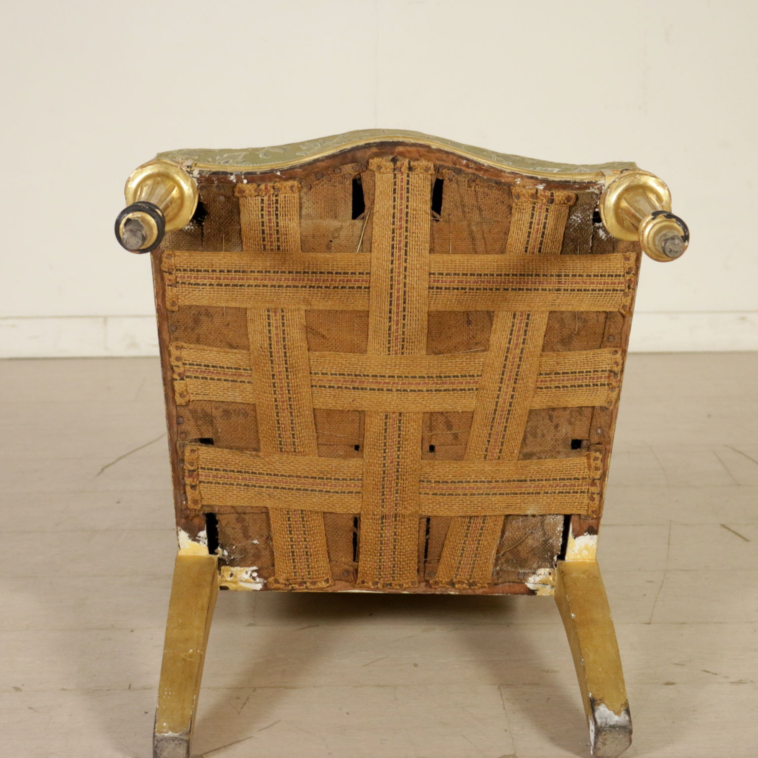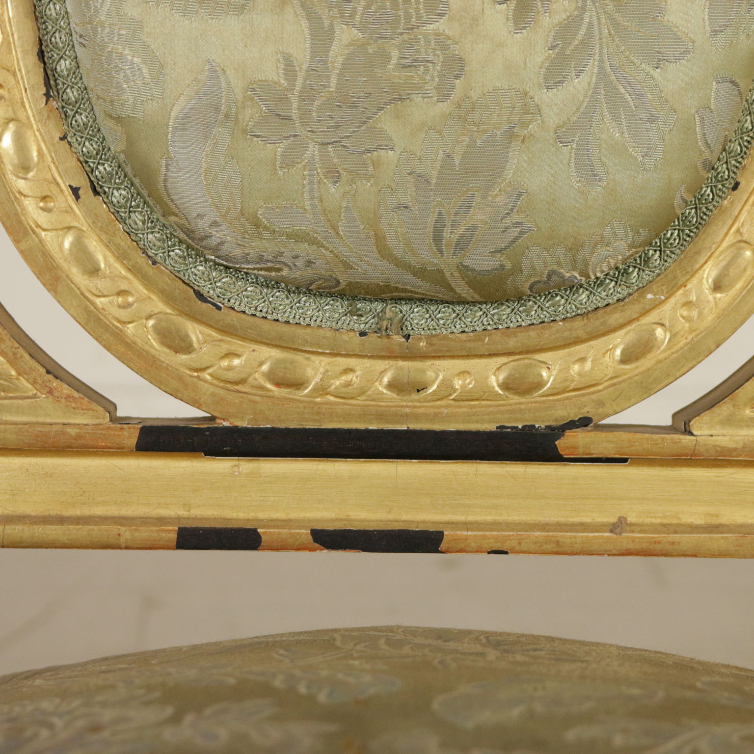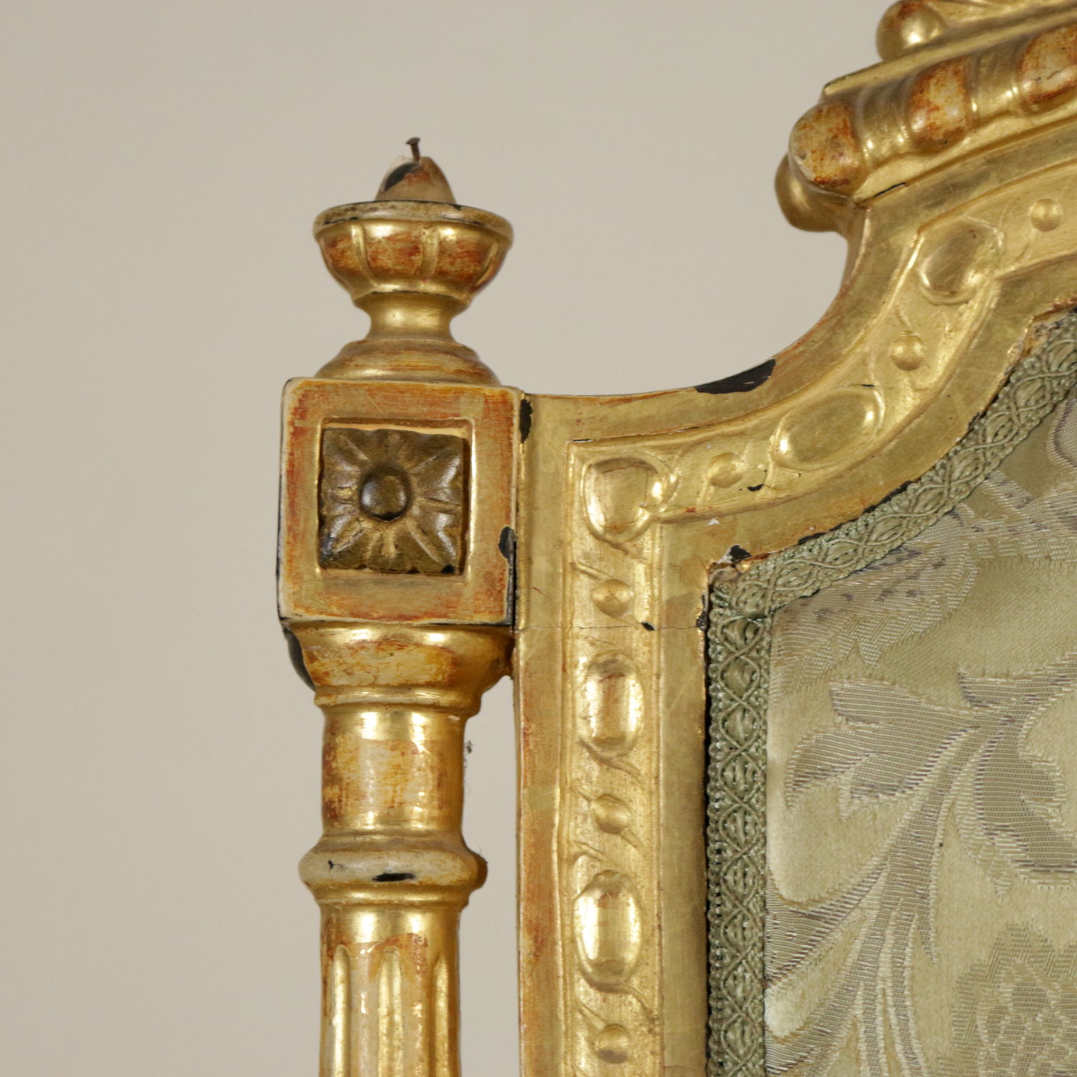 Gruppo di 4 sedie. Finemente intagliate, presentano schienale e seduta imbottiti.