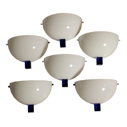 Gruppo di sei lampade a parete; vetro soffiato, struttura in metallo.
