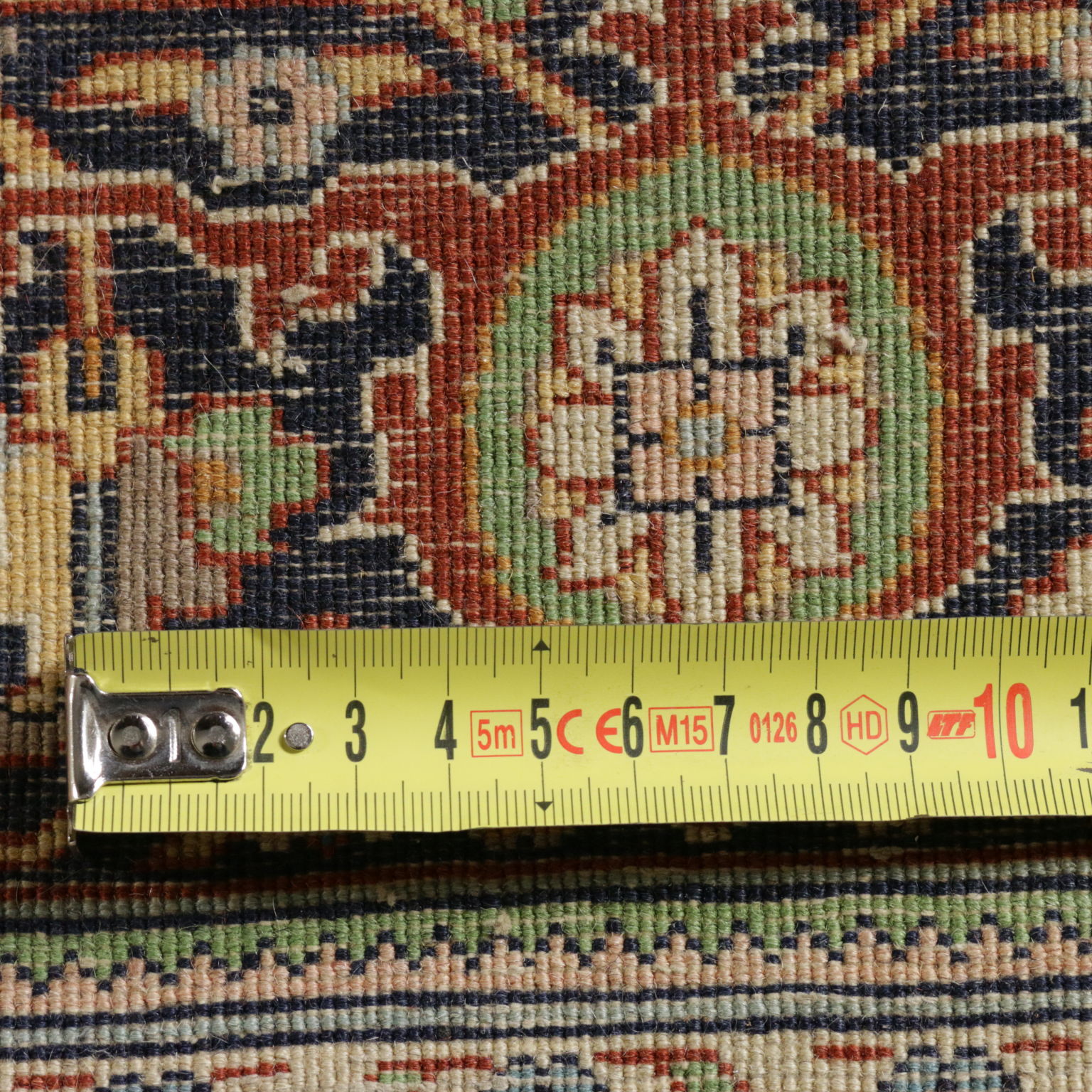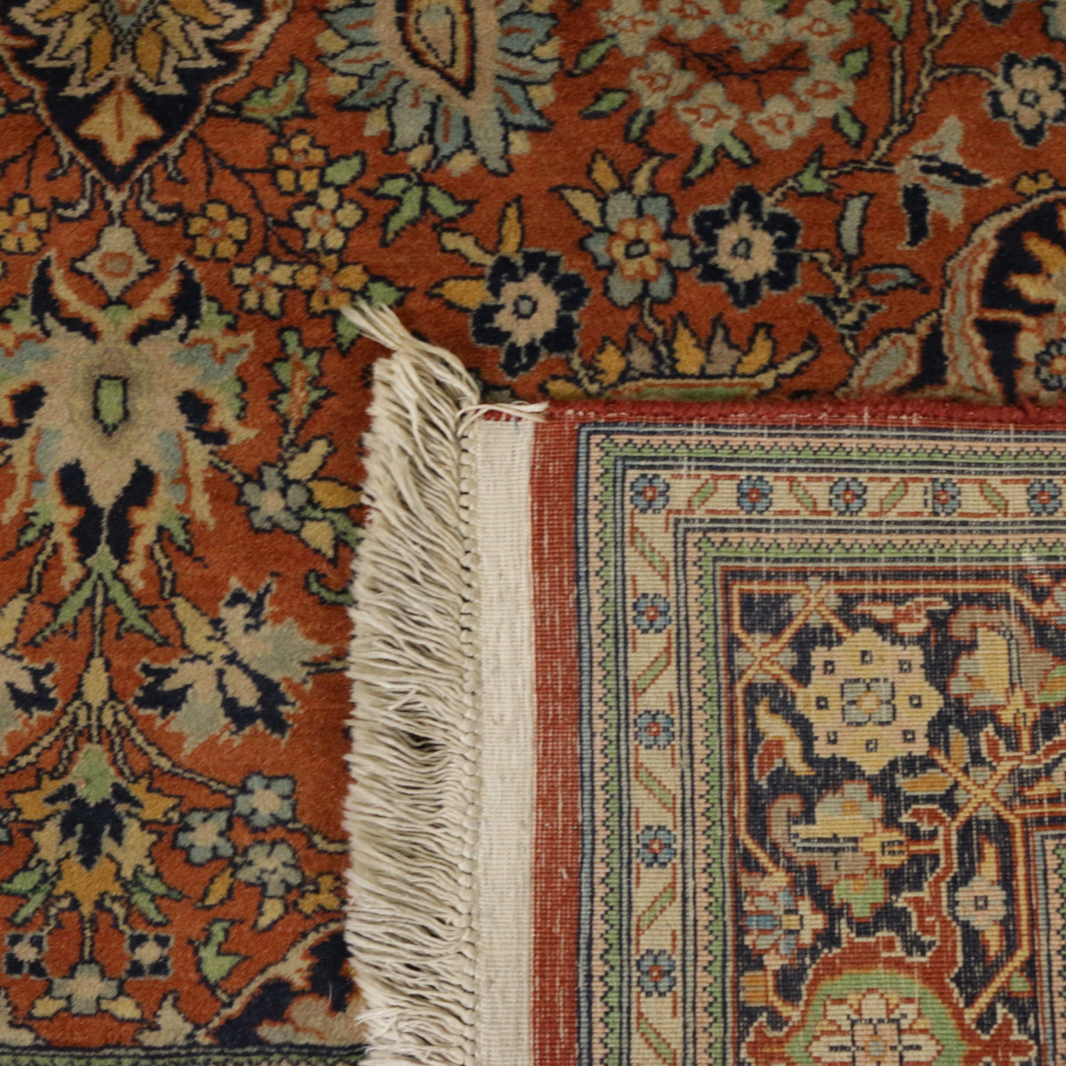 Tappeto Indo-Tabriz (India); nodo fine, fabbricazione manuale.