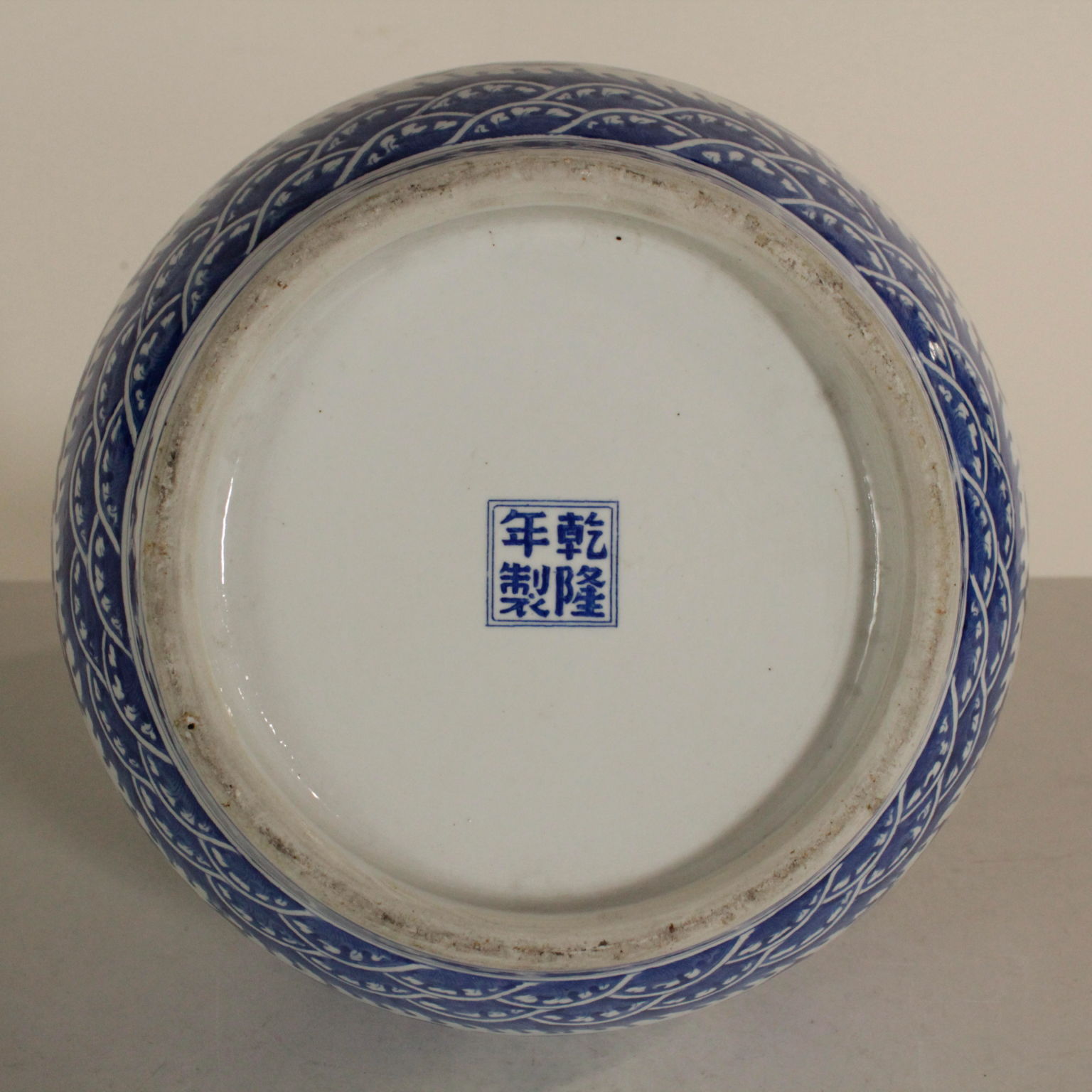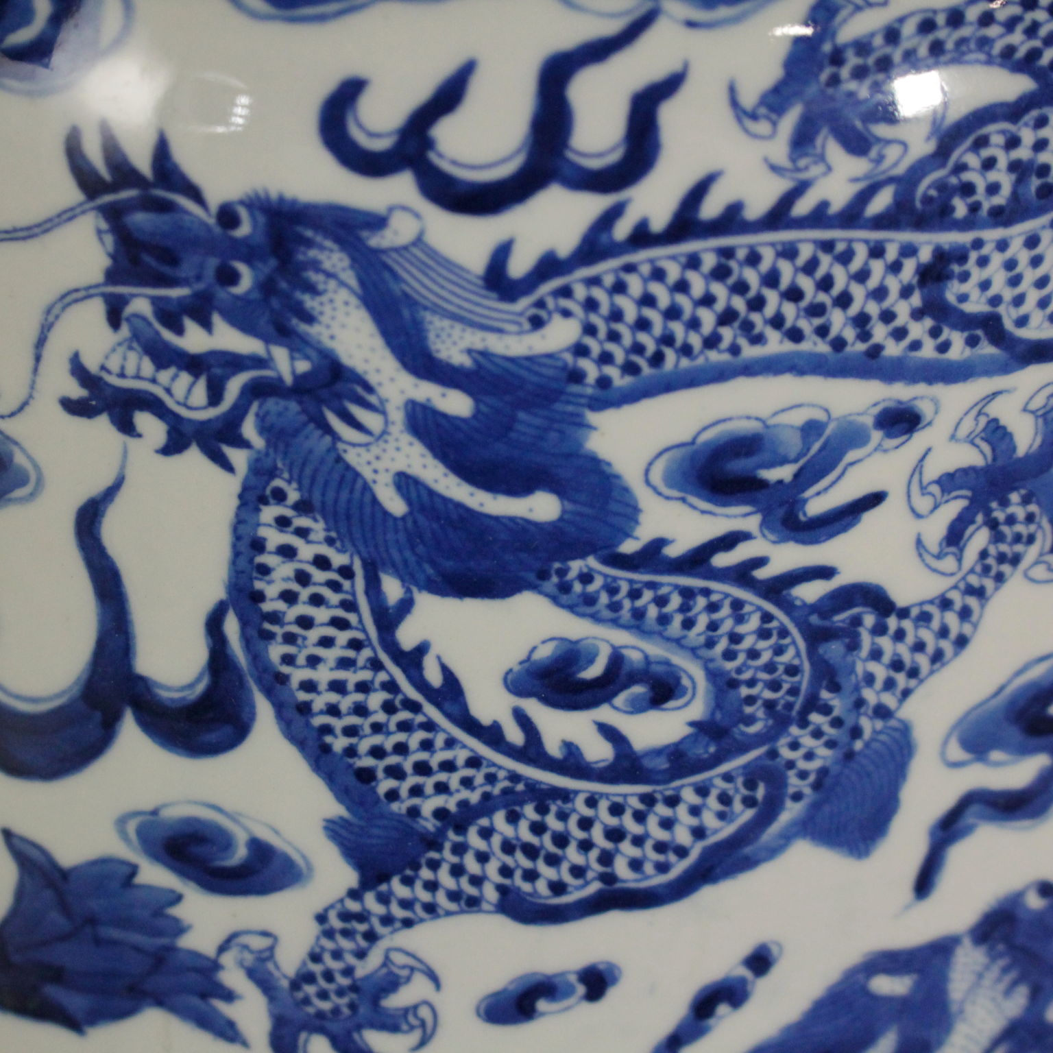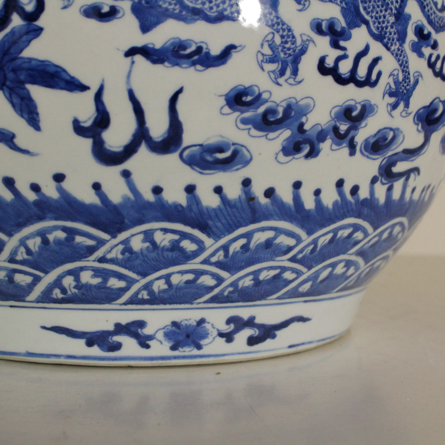 Vaso a bulbo in ceramica smaltata con ricco decoro a motivi vegetali e draghi. Marchio della manifattura sotto la base.