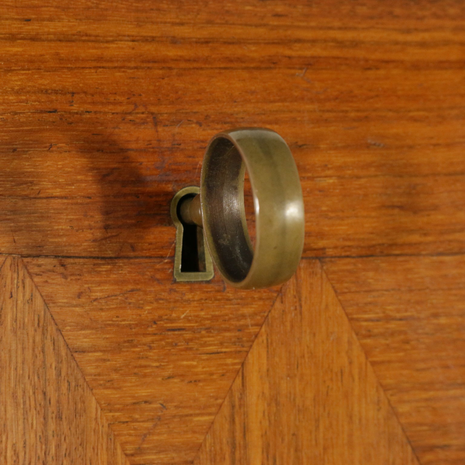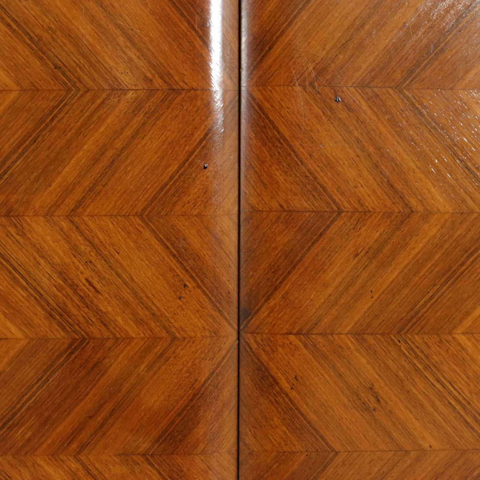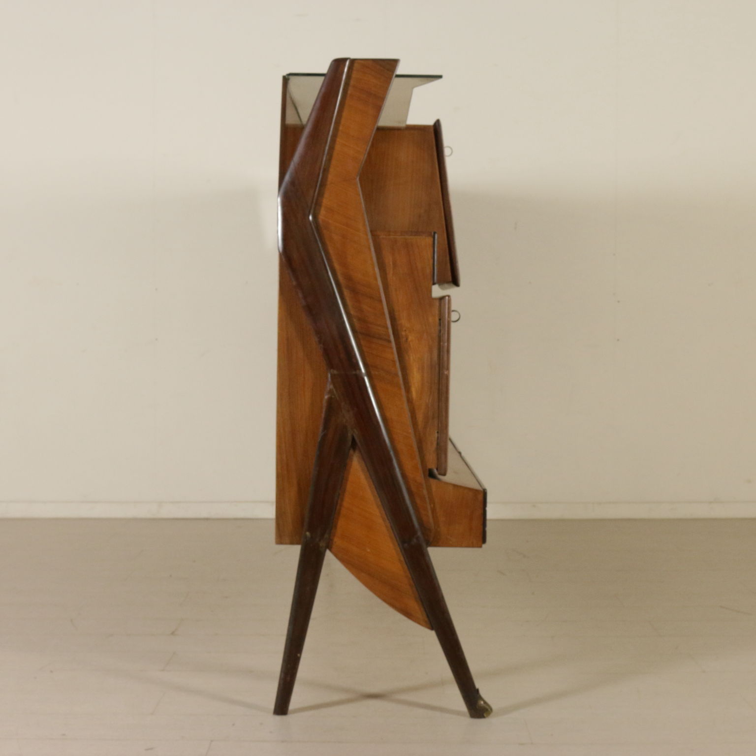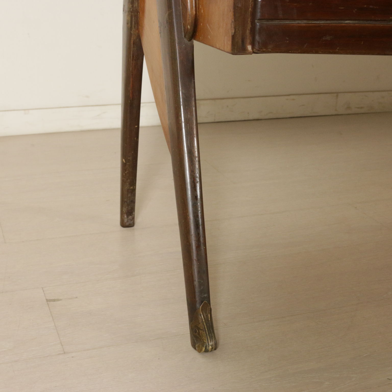 Mobile credenza nello stile di Ico Parisi con anta a ribalta, ante battenti e cassetti. Legno impiallacciato palissandro, mensole in vetro.