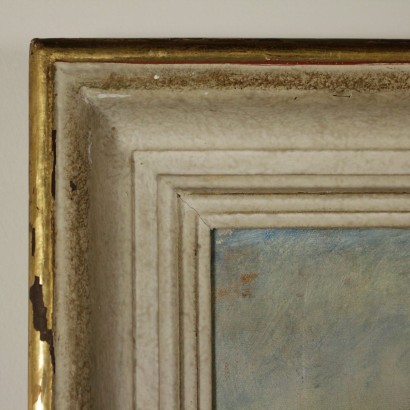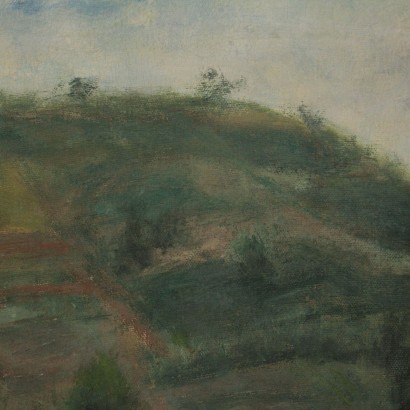 Olio su tela. Firmato e datato '934 (e anno corrispondente del calendario fascista XII) in basso a destra. Al retro presente etichetta di esposizione personale. Il giovane artista milanese, che ha goduto di larga notorietà negli anni Trenta, è considerato tra i rappresentanti delle tendenze pittoriche lombarde del Novecento italiano;egli esprime profonde qualità coloristiche sia nelle opere di figura che nei paesaggi ,come in quello proposto. In cornice coeva.