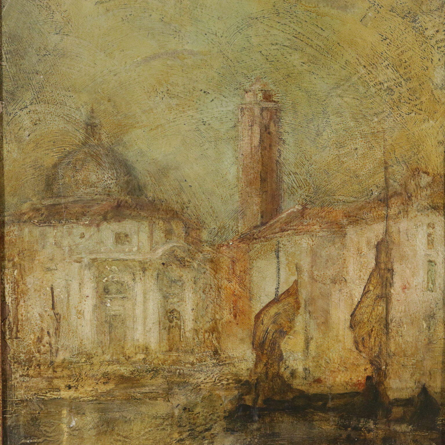 Olio su pannello cartonato. Firmato in basso a destra. Presentato in cornice antica adattata.