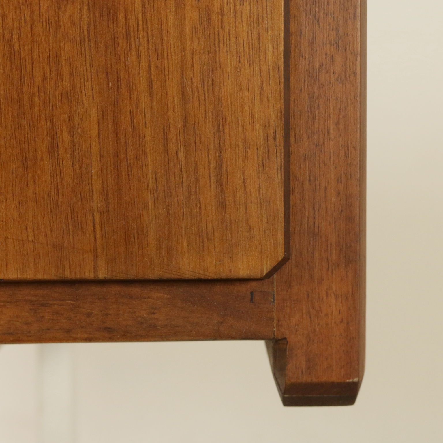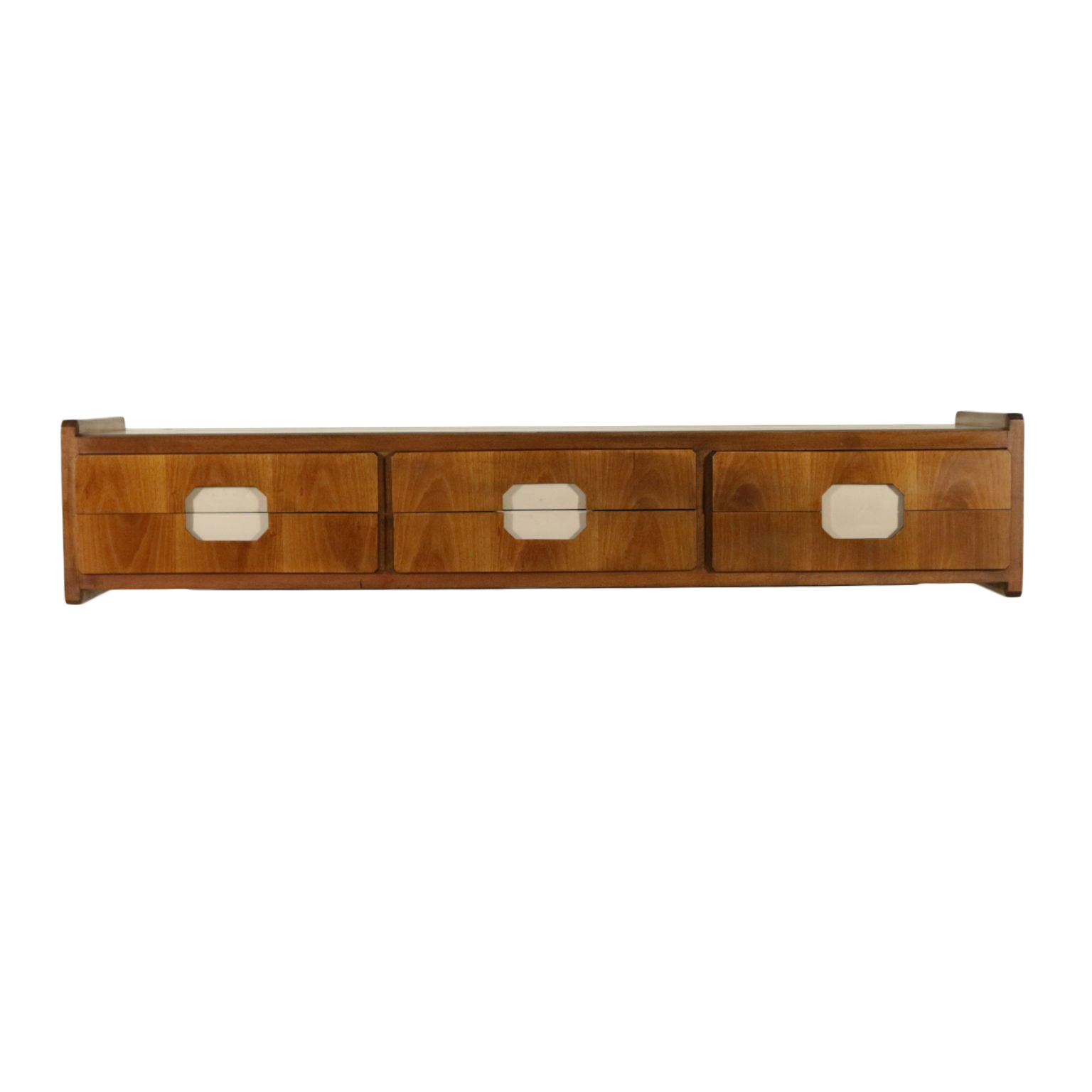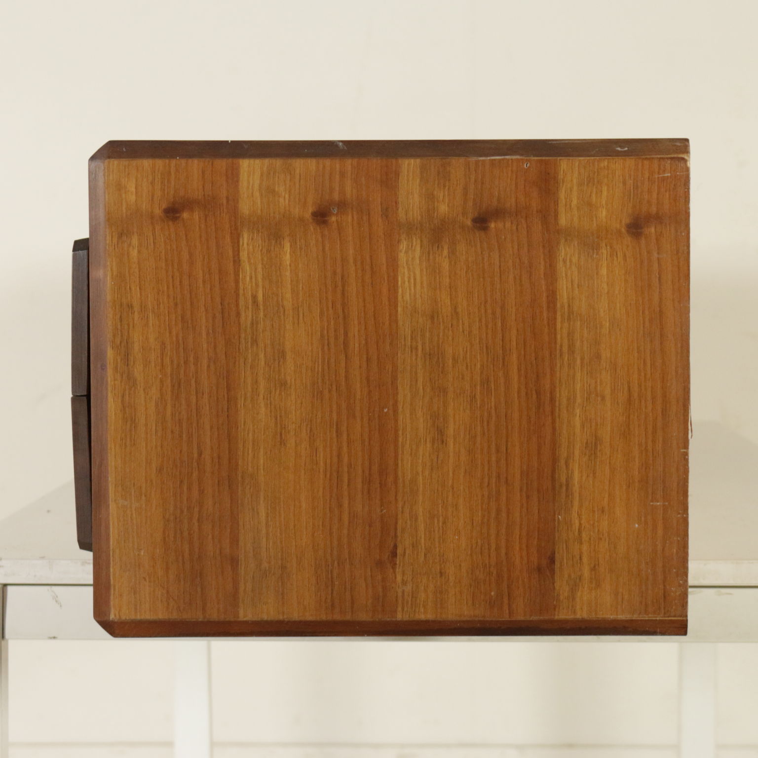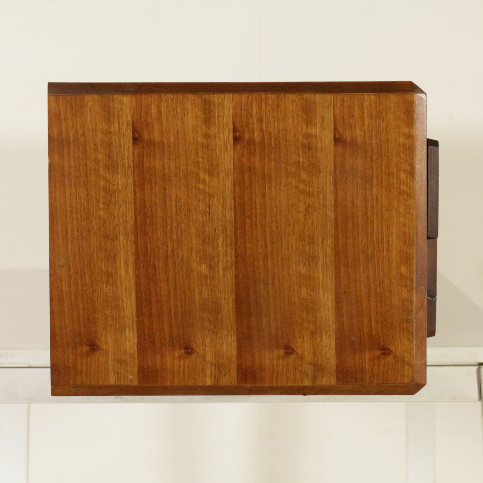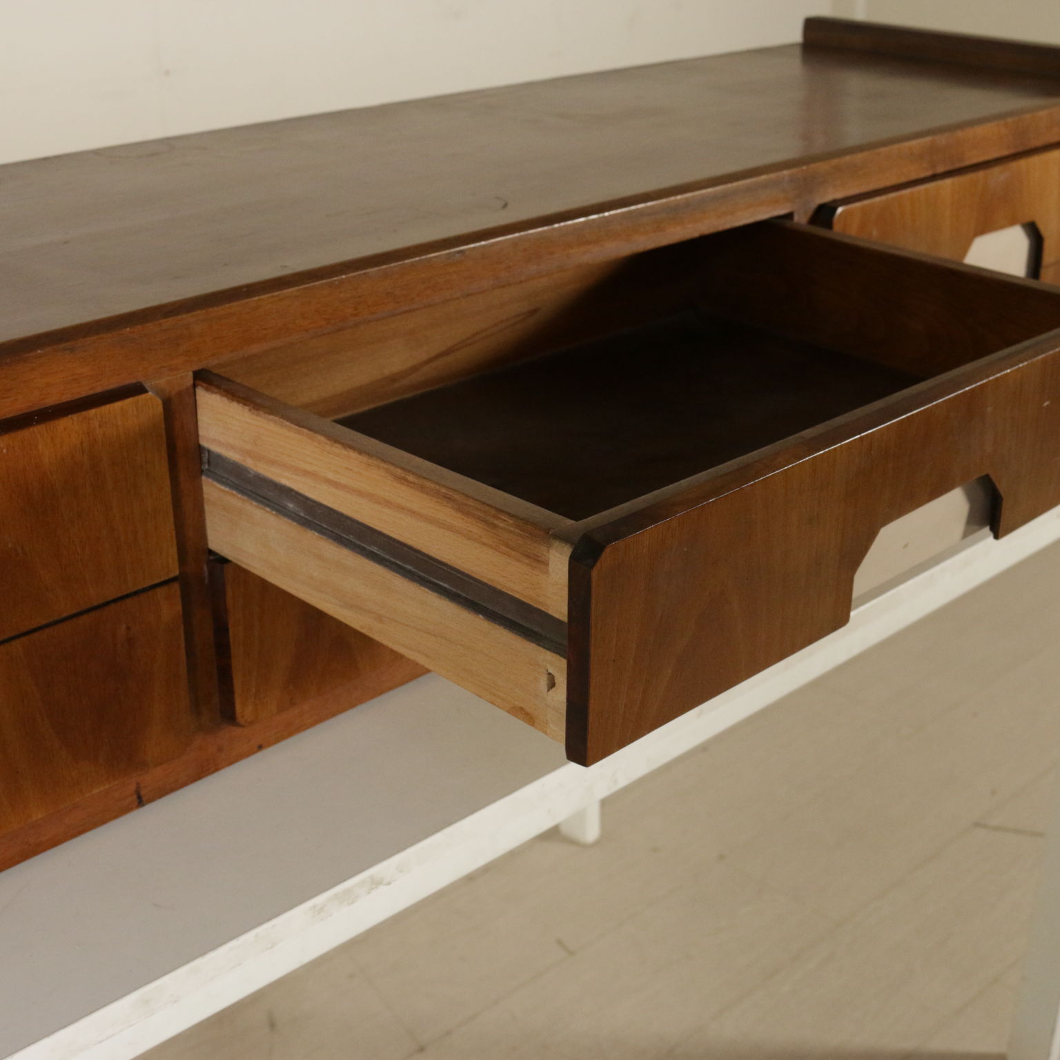 Consolle con cassetti. Legno impiallacciato noce con inserti in formica.