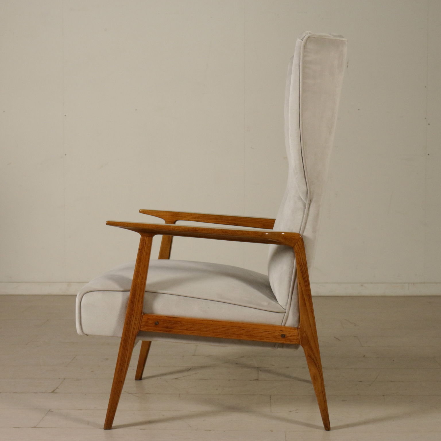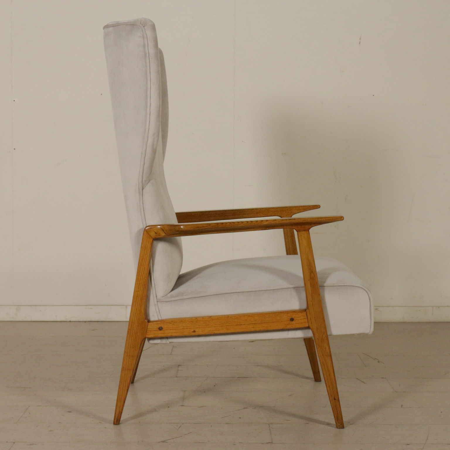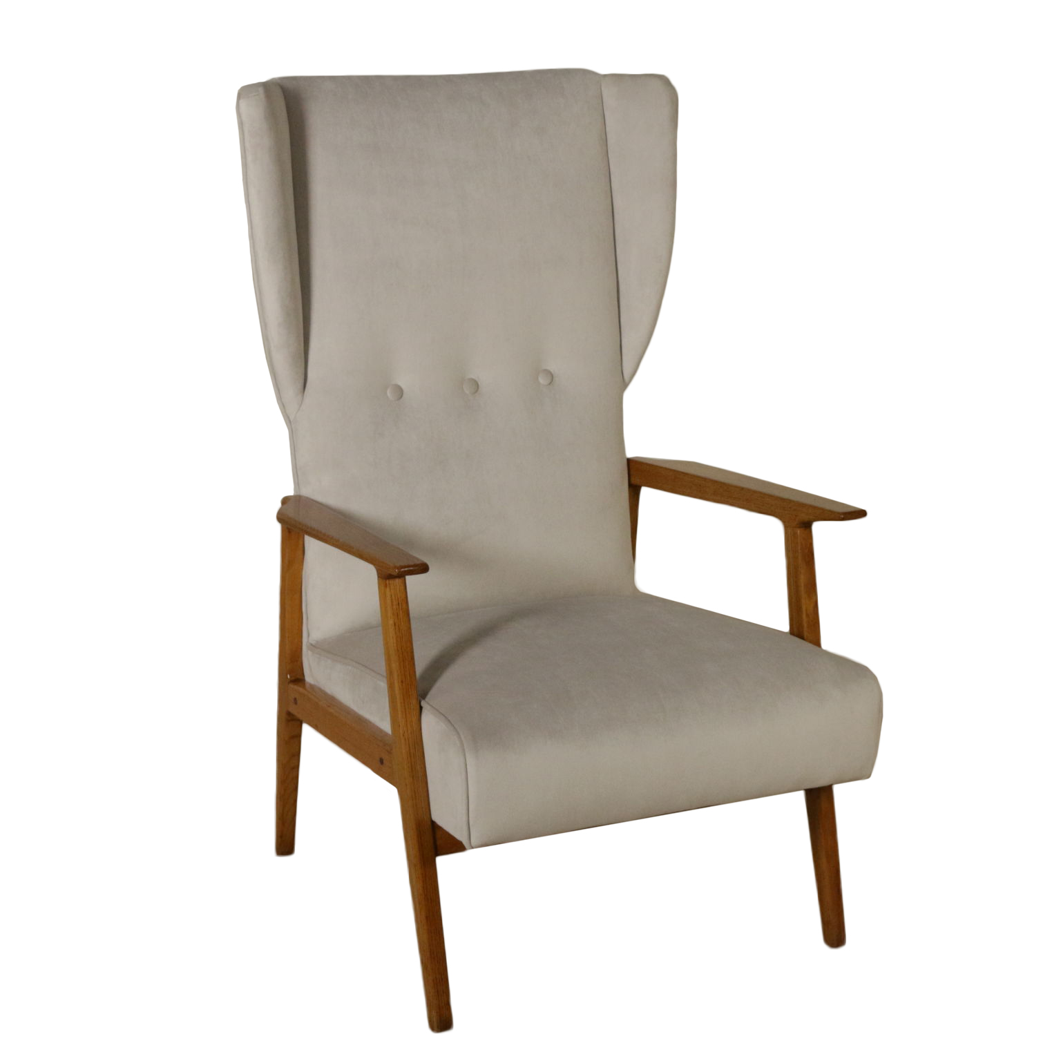 Poltrona; legno di rovere, imbottitura in espanso, rivestimento in velluto.