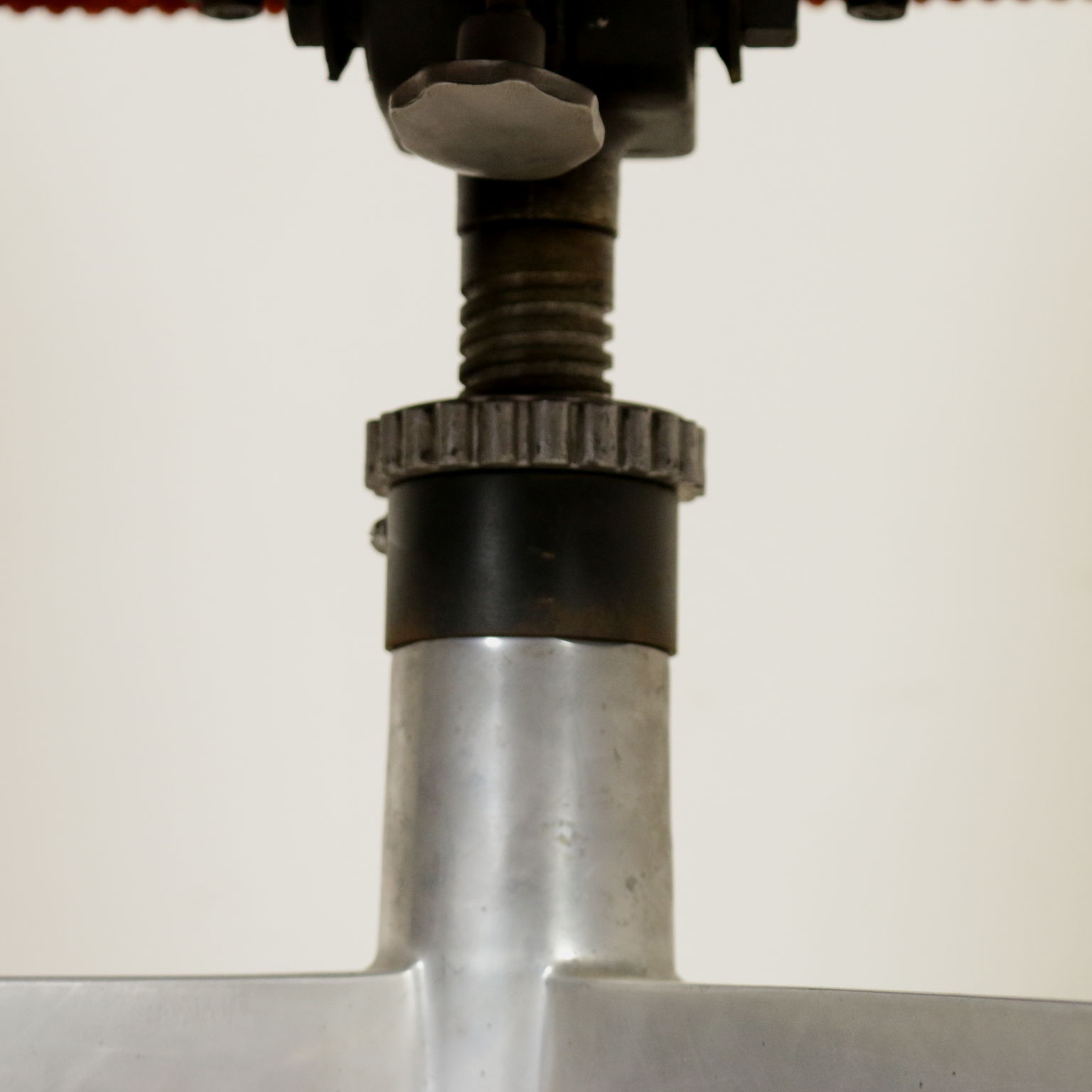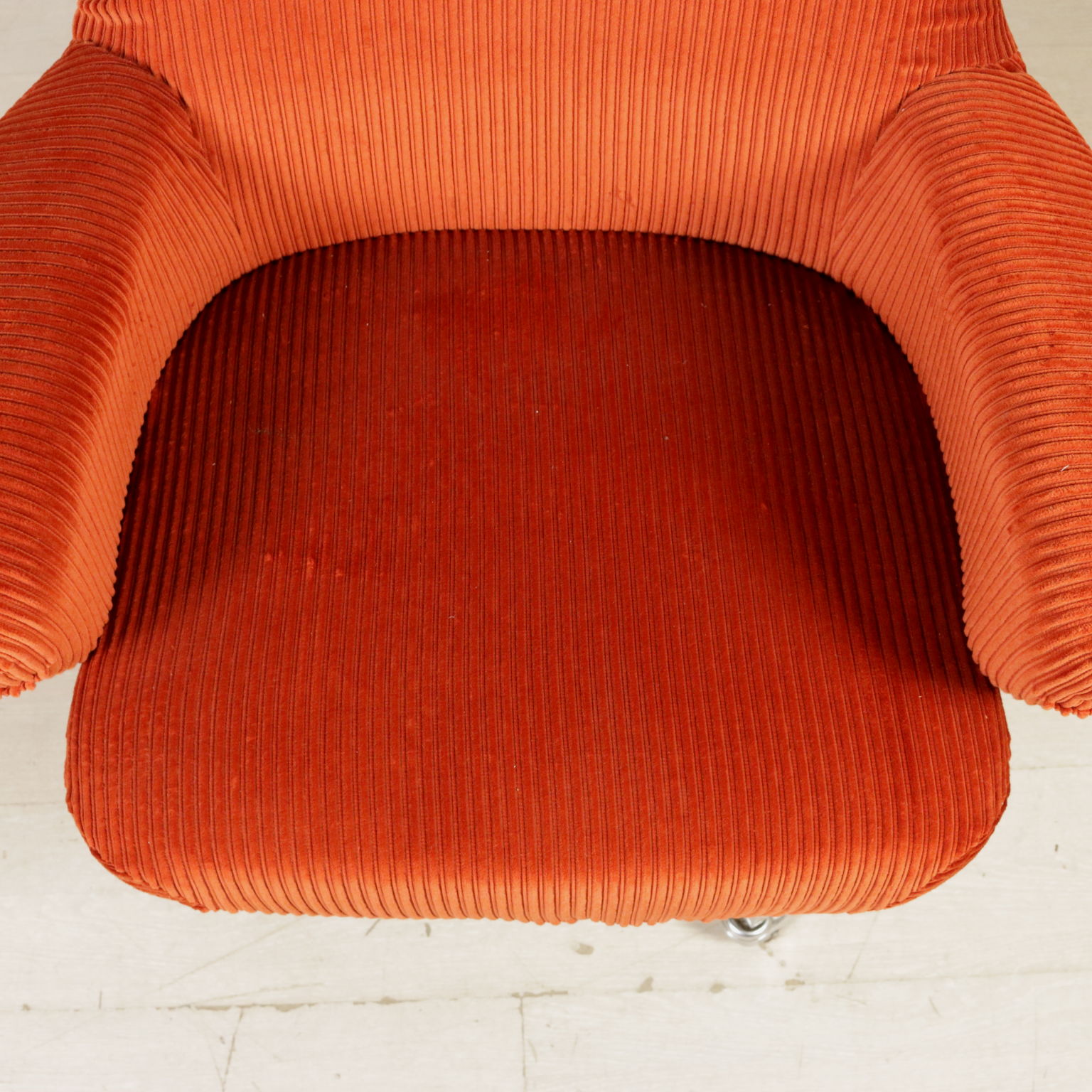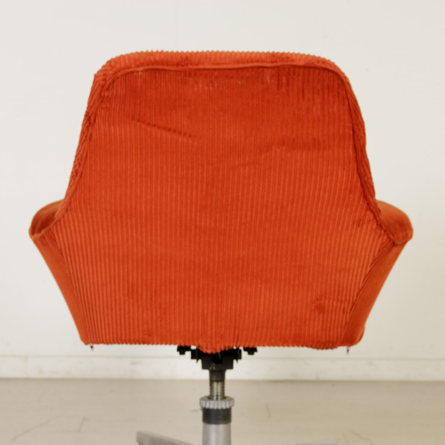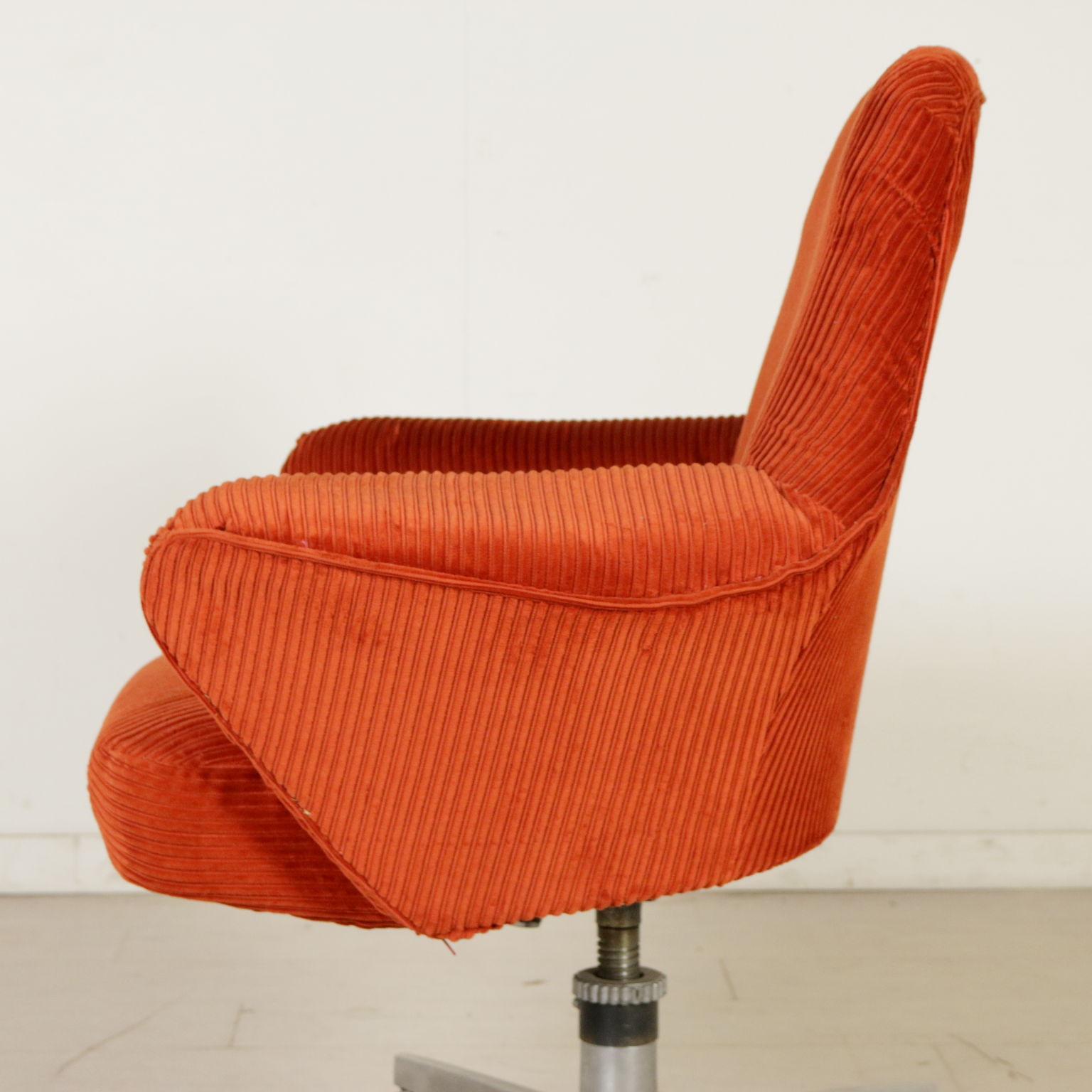Poltrona girevole ad altezza e inclinazione regolabile; base in alluminio, imbottitura in espanso, rivestimento in velluto.