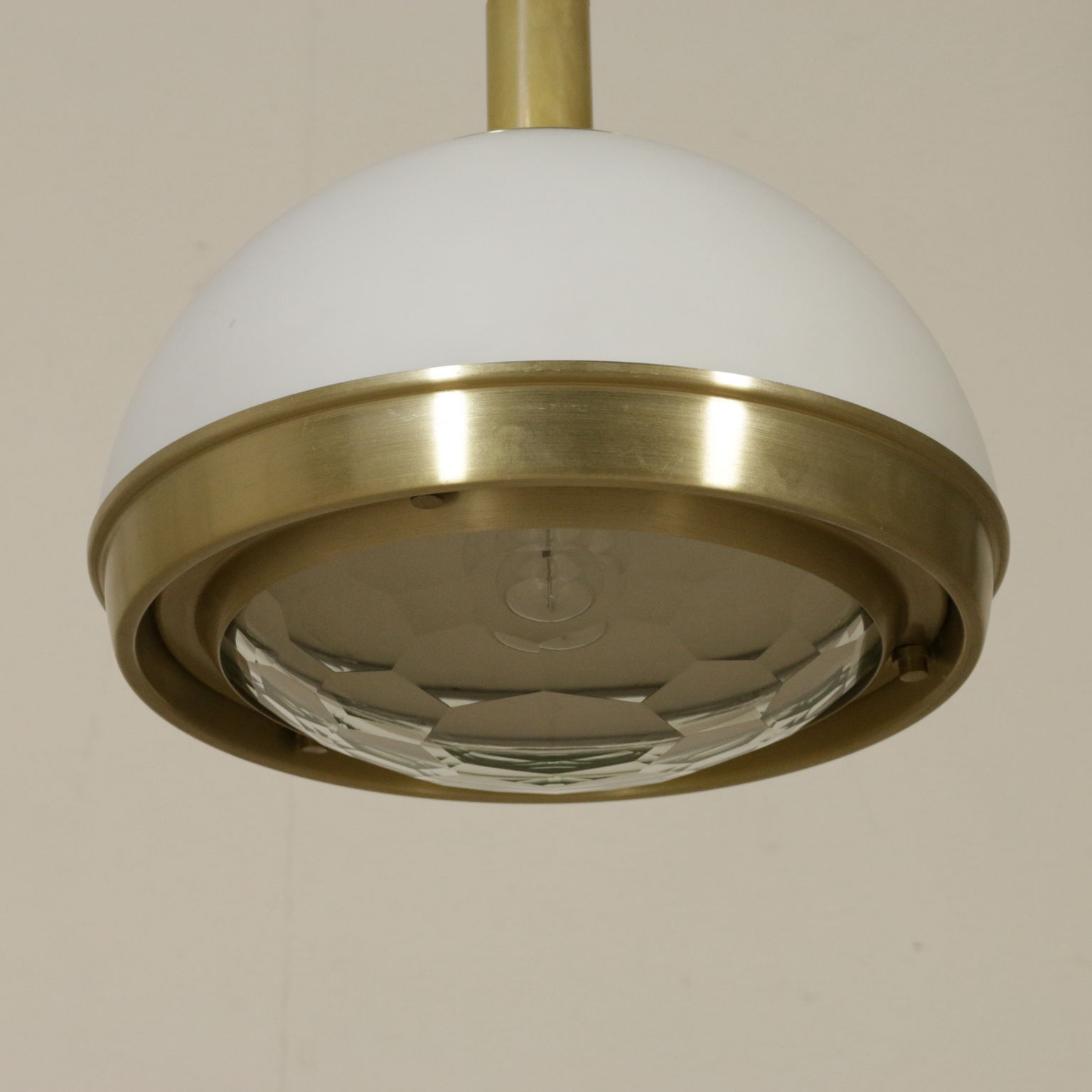Lampada a soffitto; vetro, ottone.