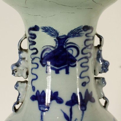 Con forma a balaustro, decorato con vasi ricolmi di piante, in blu sottocoperta. Tracce di restauro sul collo.