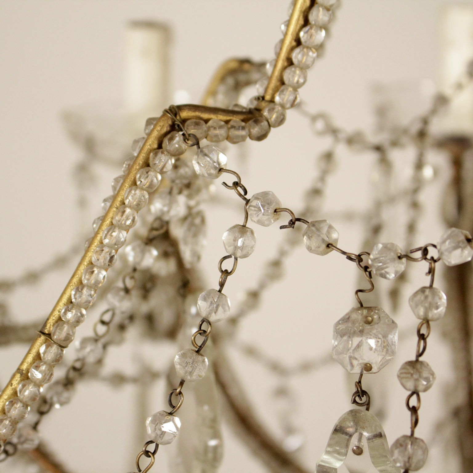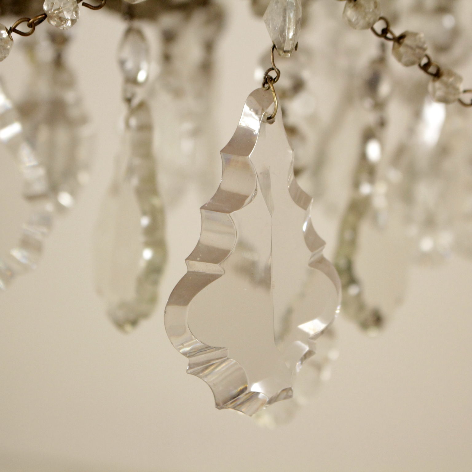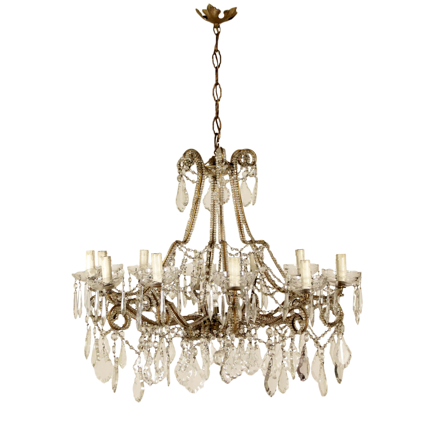 Lampadario a dodici bracci con cordoni e pendenti in vetri. Non revisionato.