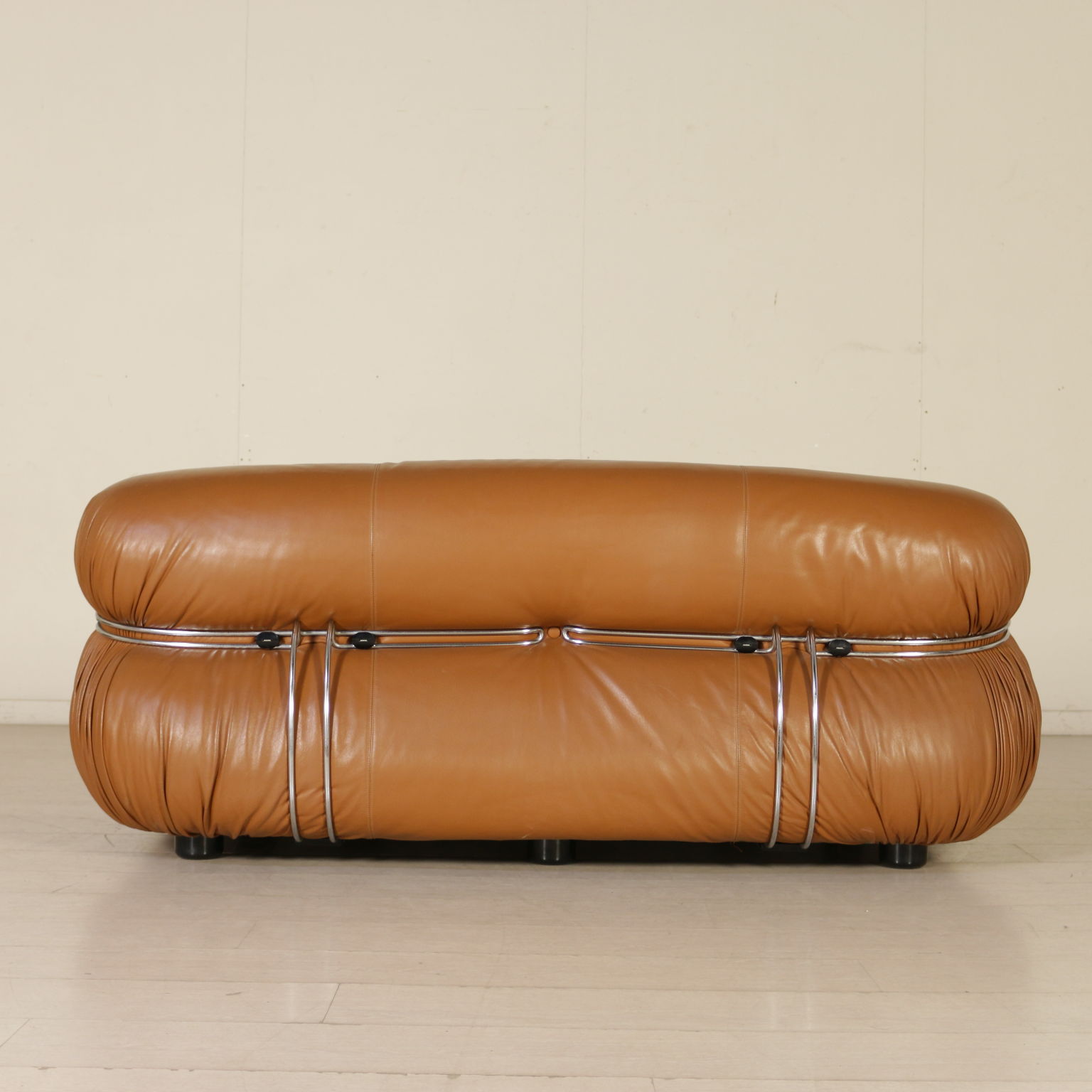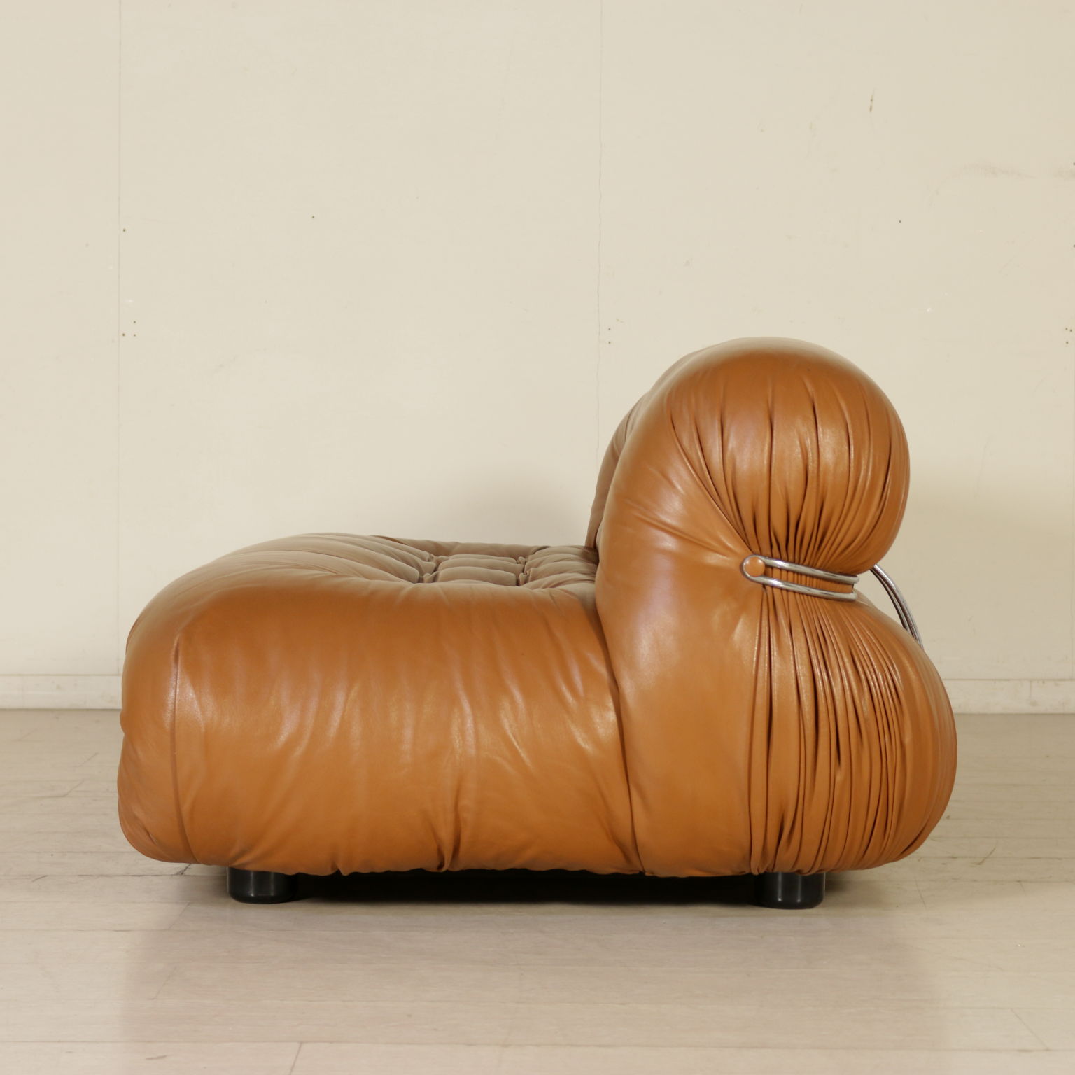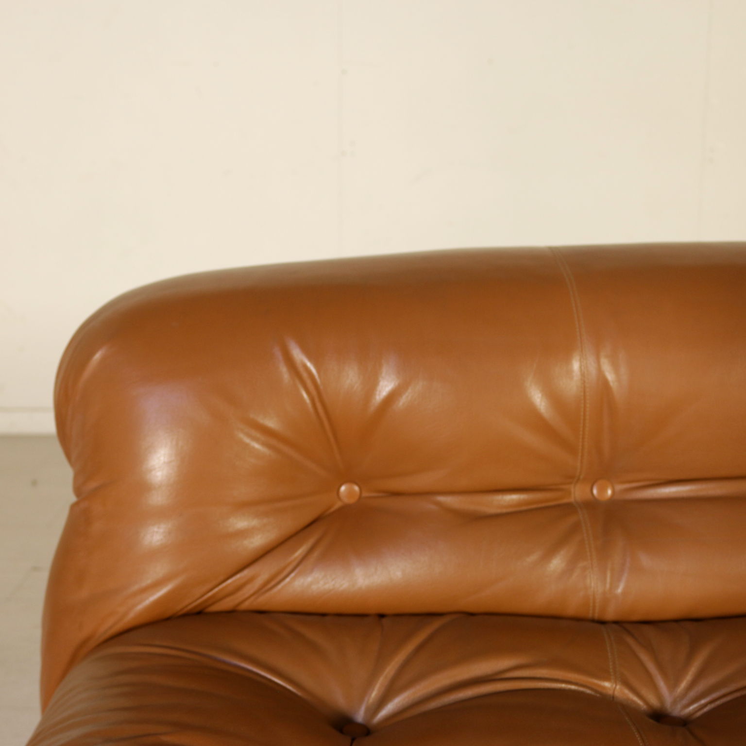 Divano; imbottitura in espanso, rivestimento in pelle, metallo cromato.