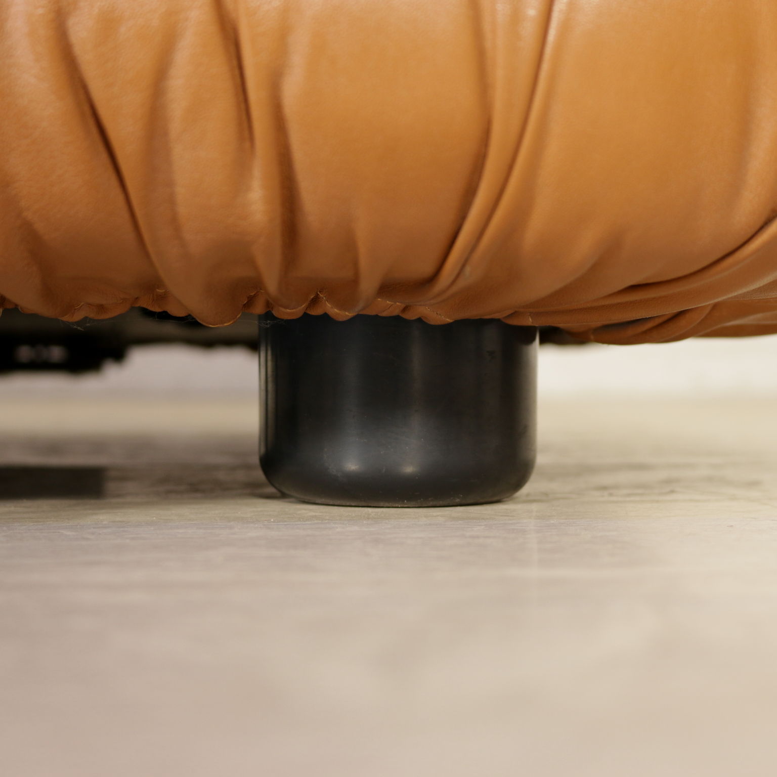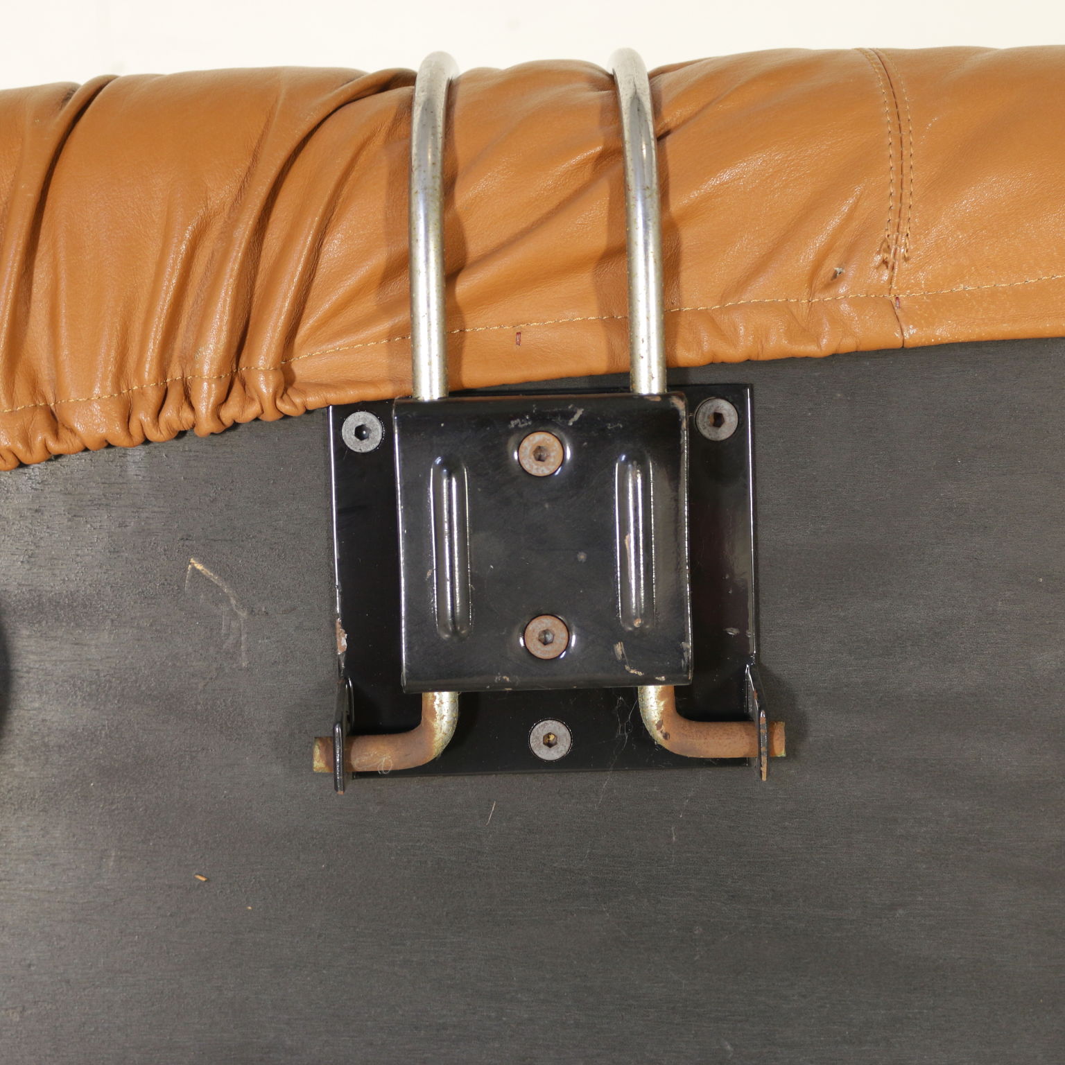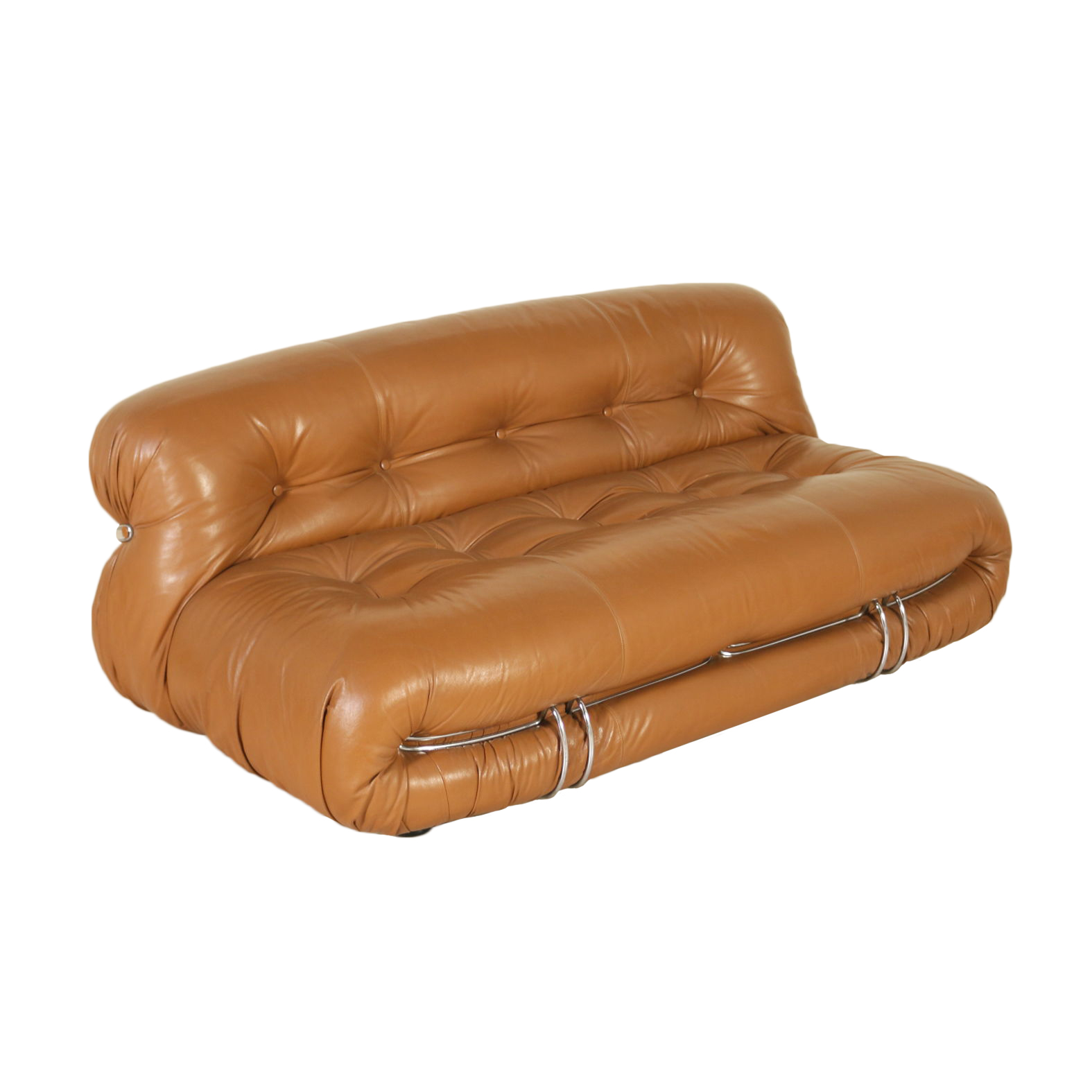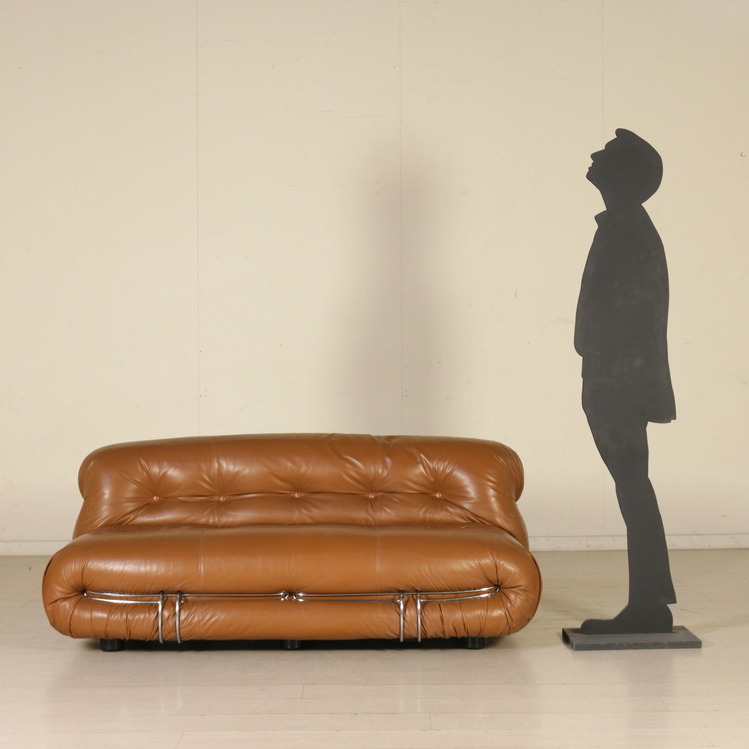 Divano; imbottitura in espanso, rivestimento in pelle, metallo cromato.