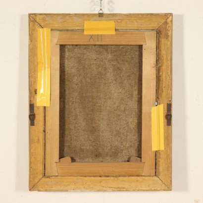 Olio su tela. Probabilmente parte di un ciclo della Via Crucis, è la tradizionale raffigurazione della scena della Crocifissione, con Maria e S.Giovanni in piedi e la Maddalena prostrata ai piedi della Croce. L'opera, in prima tela e con diversi danni da usura, richiede restauro. E' presentata in cornice di fine '800.