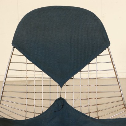 Coppia di sedie; metallo cromato, cuscini in tessuto.