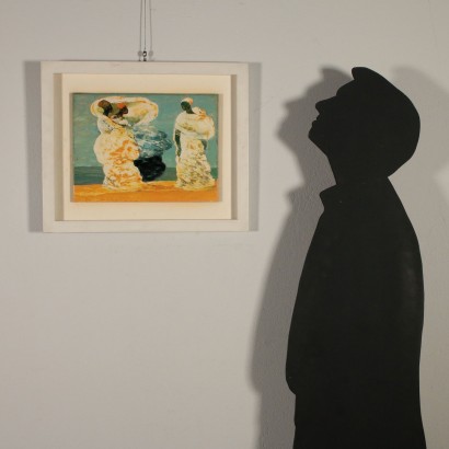 Olio su tavoletta. FIrmato in basso a sinistra. Opera dell'artista siciliano Salvatore Fiume (1915-1997). L'universo femminile è stato uno dei temi centrali della sua ricerca pittorica e formale. Egli fu un grande viaggiatore, visitò luoghi remoti ed esotici in cerca di motivi di ispirazione sempre nuovi. Al ritorno dai suoi viaggi riportava le impressioni che gli suscitavano le figure femminili che aveva incontrato, traendone spunto per le sue opere. La presente opera ritrae tre donne somale con abiti ed ornamenti tradizionali. I colori caldi e brillanti, la pennellata volutamente grezza comunicano in maniera efficace il calore, la bellezza ed il mistero legati alle terre africane. L'opera è accompagnata da autentica su foto rilasciata dalla Fondazione Salvatore Fiume. In cornice.