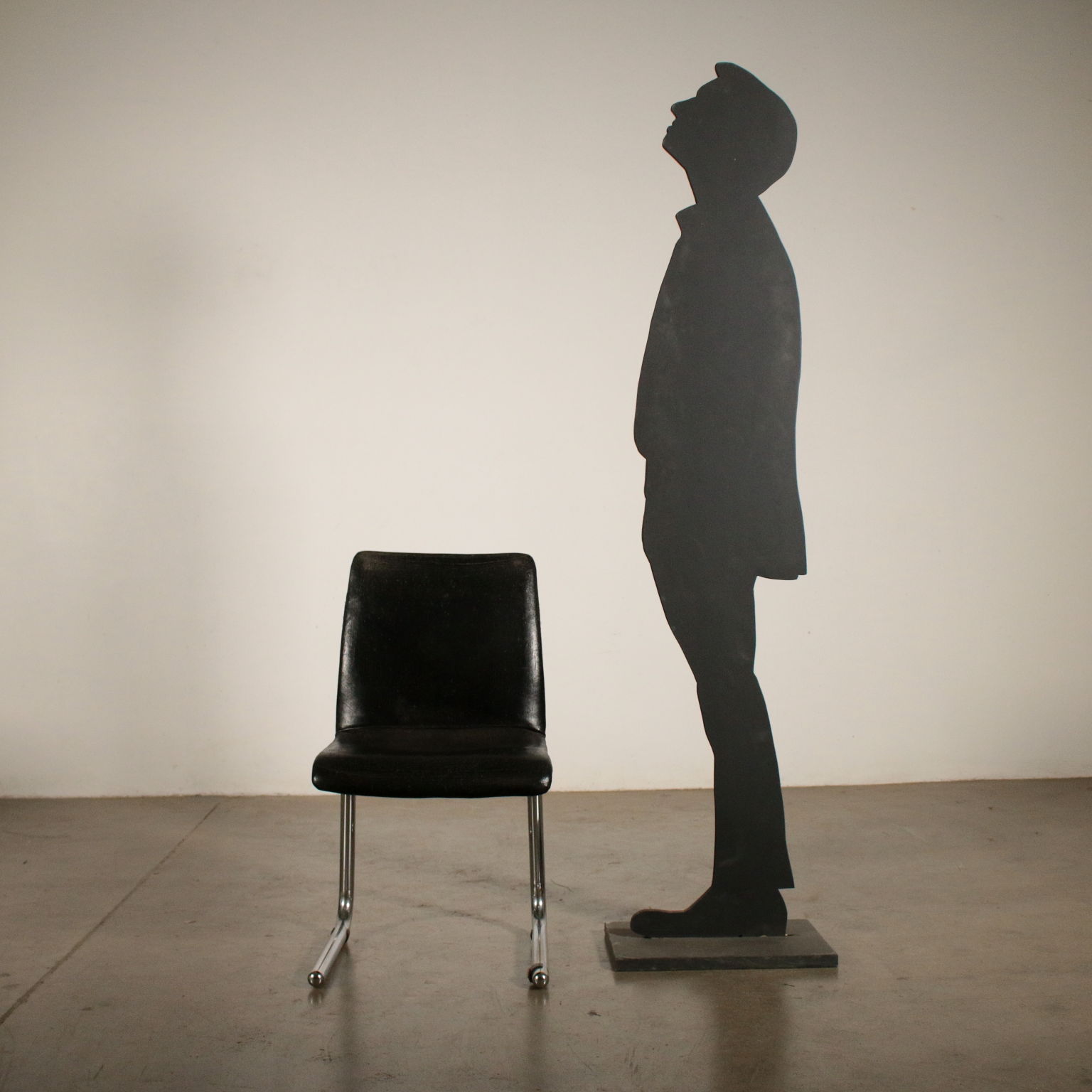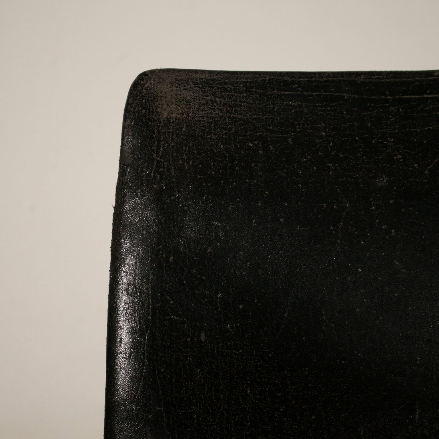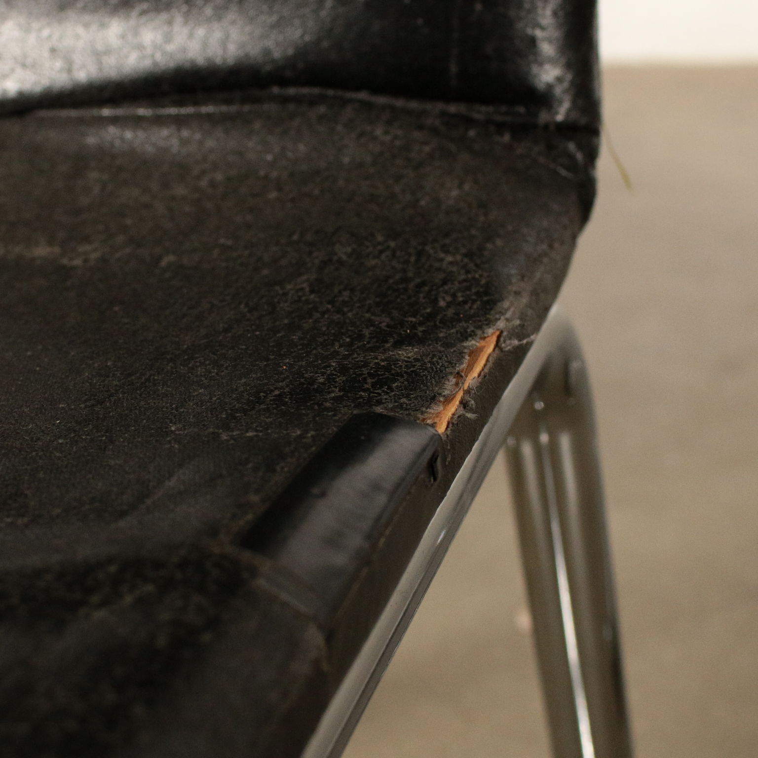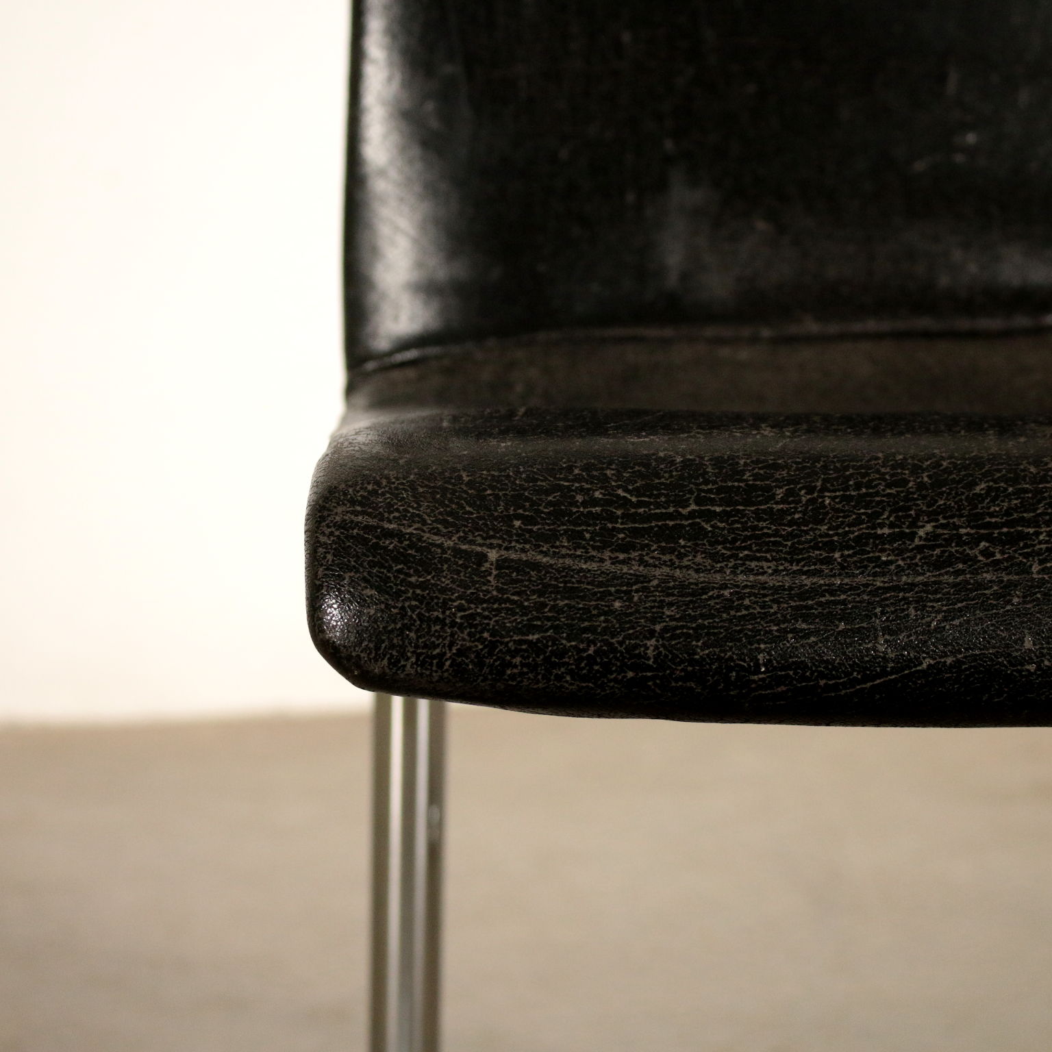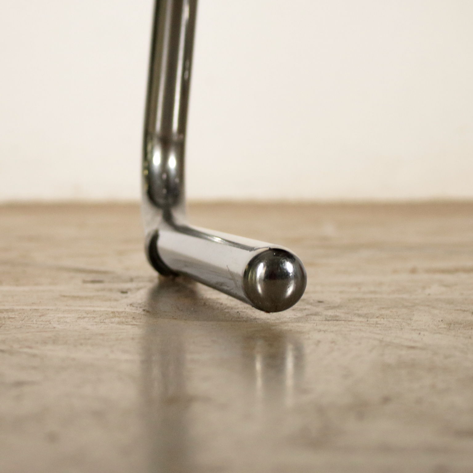 Gruppo di quattro sedie, sedute in espanso, rivestimento in similpelle, tubolare cromato.