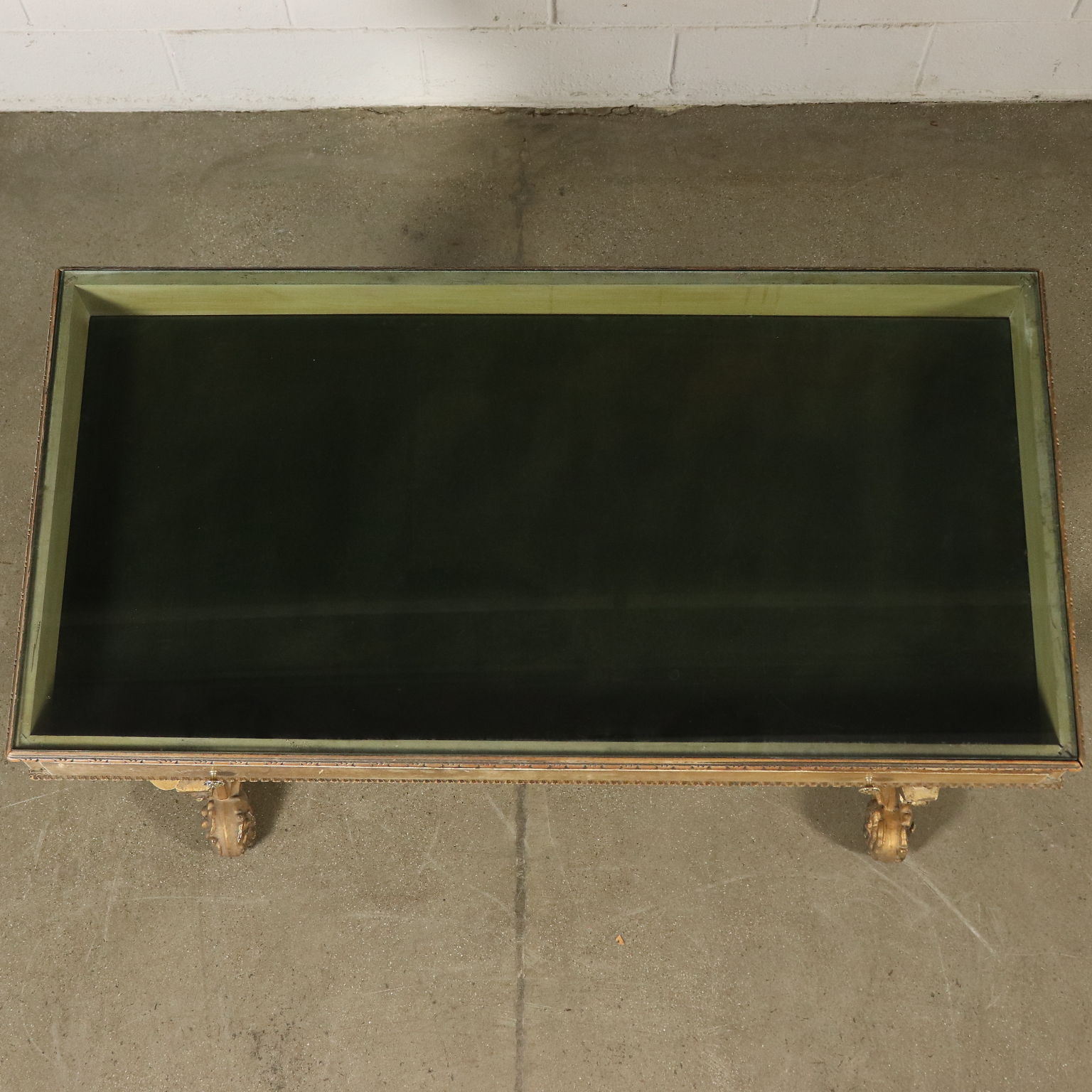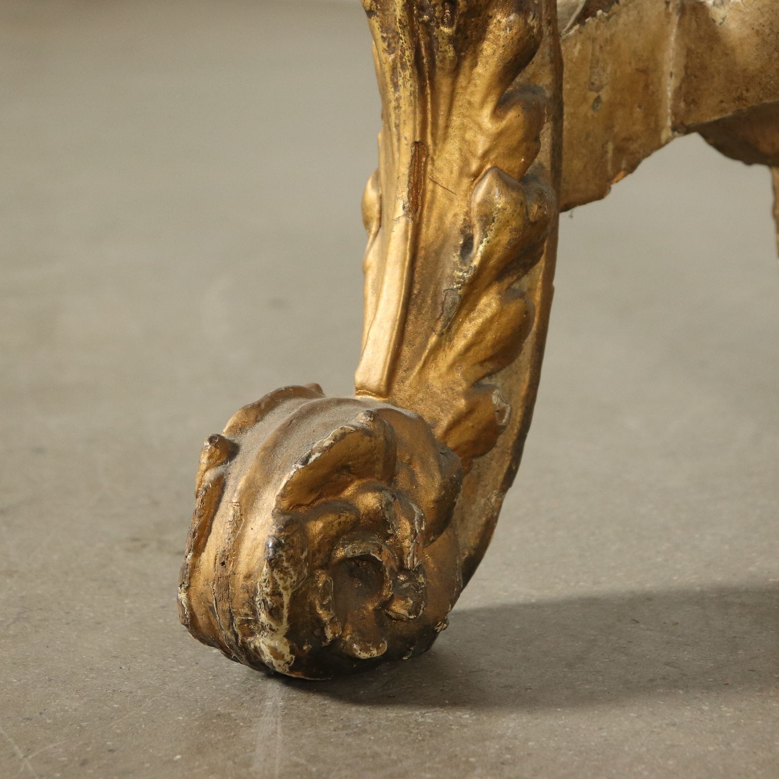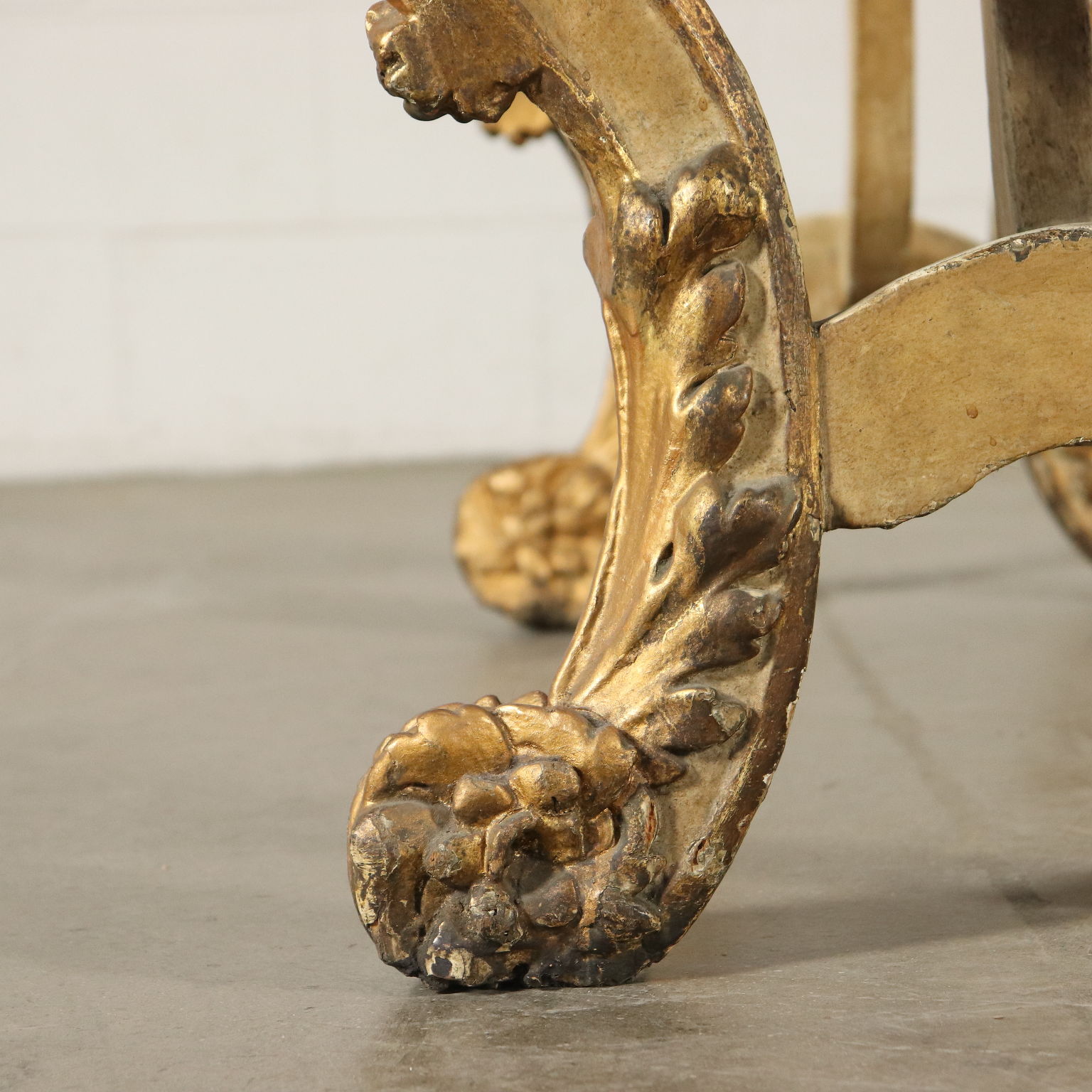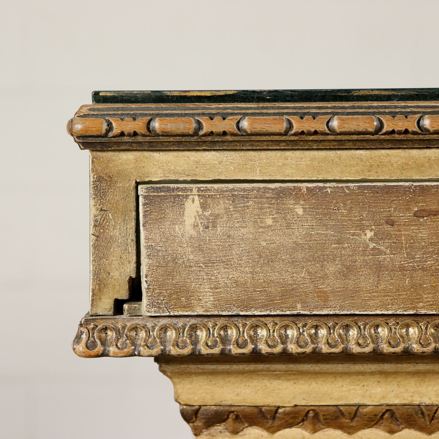 Assemblato alla fine dell'Ottocento con legni antichi. Retto da volute raccordate da saette presenta un cassetto nella fascia. Piano incassato in cristallo.
