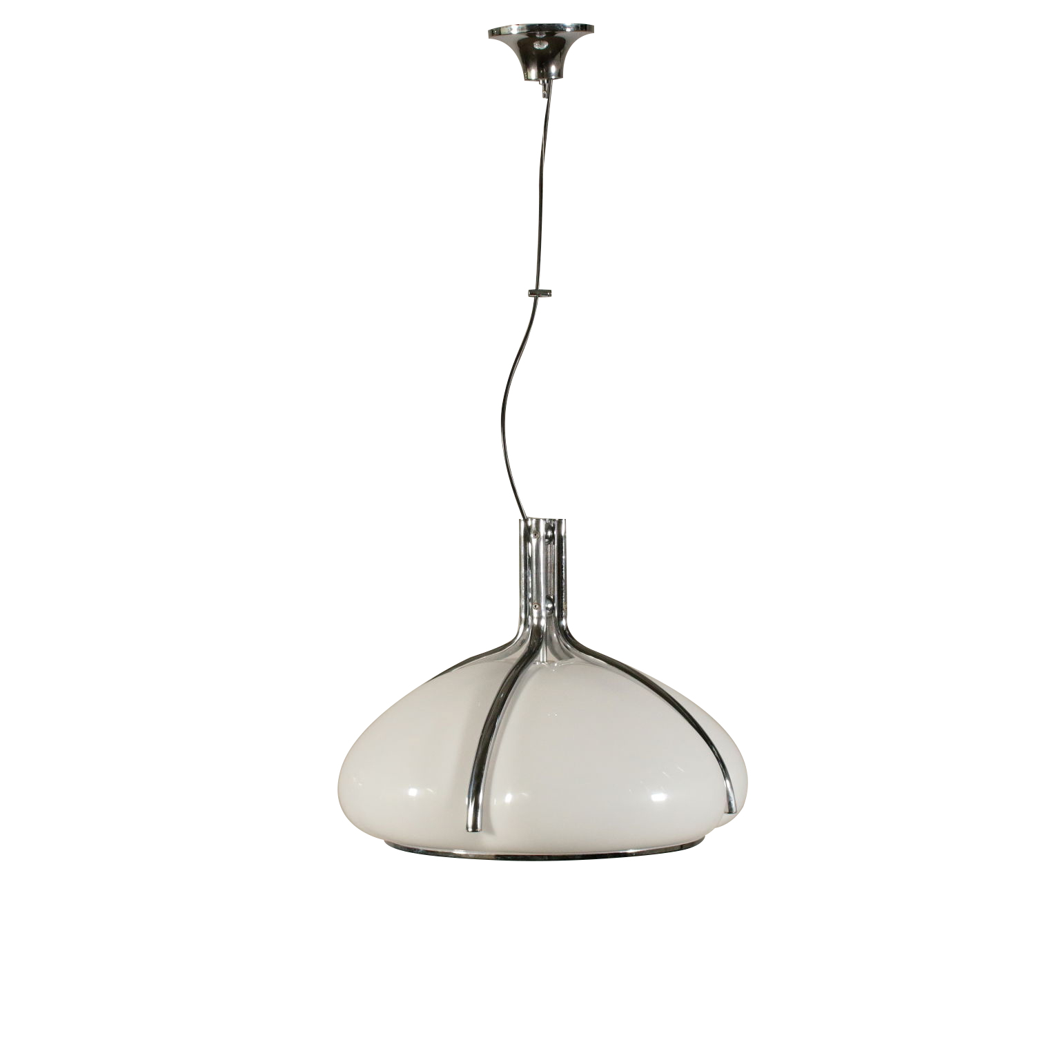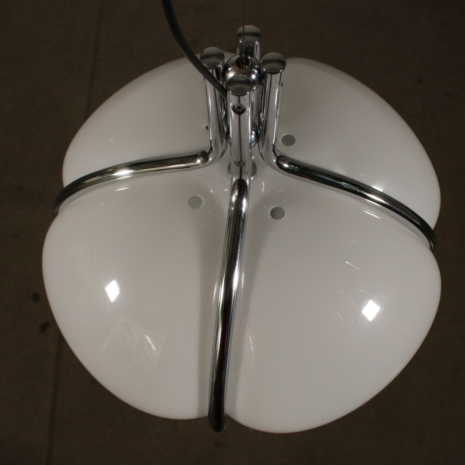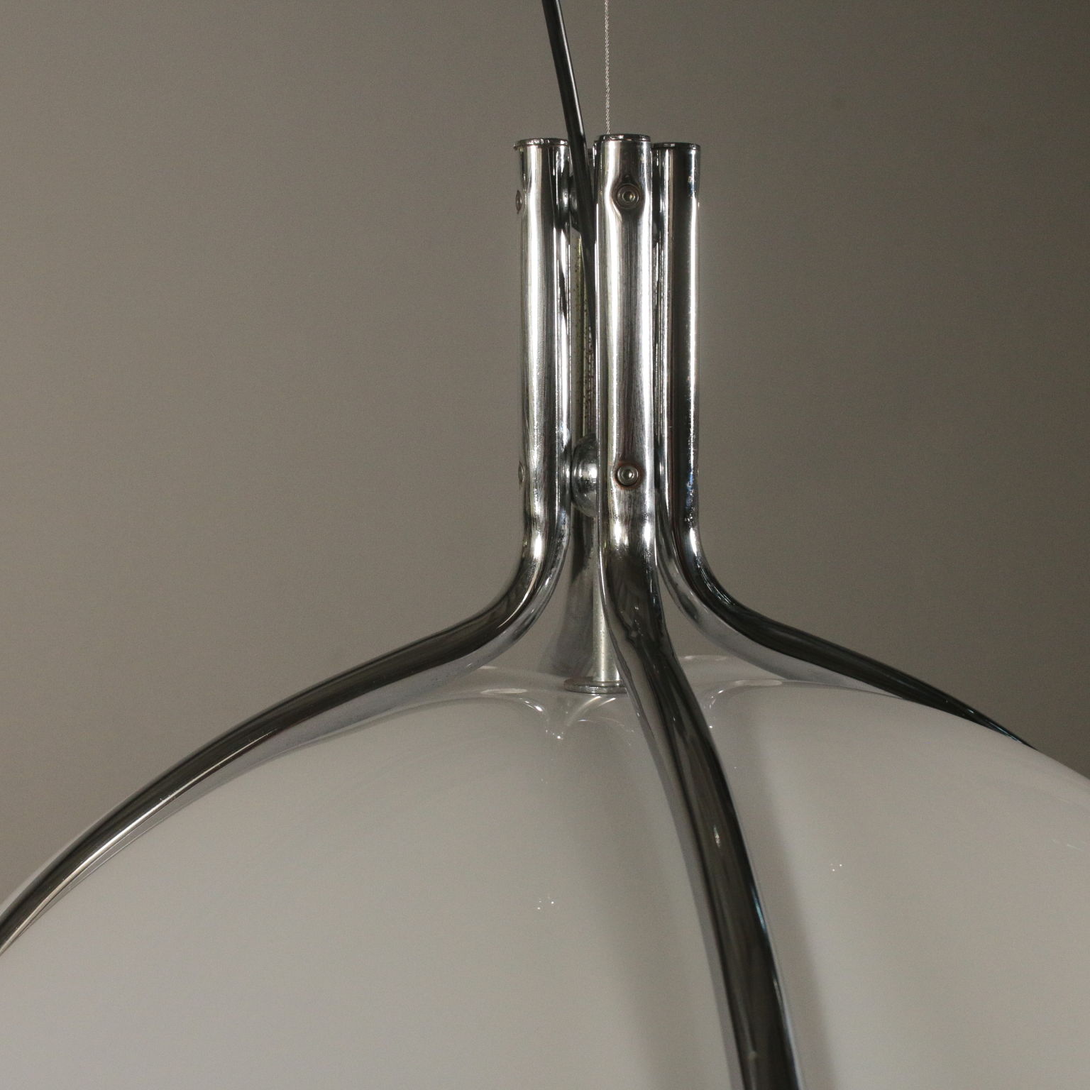 Lampada a soffitto; alluminio cromato, metacrilato.