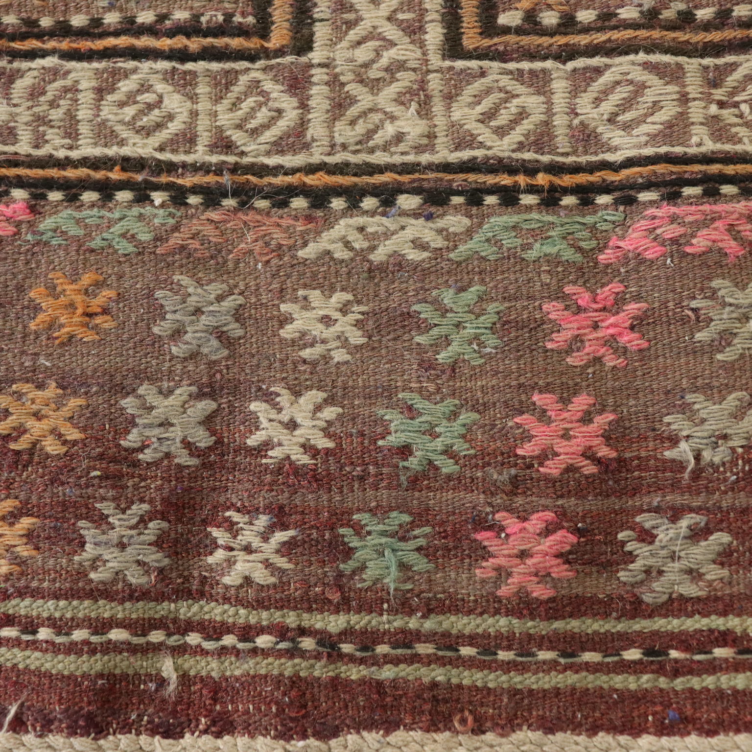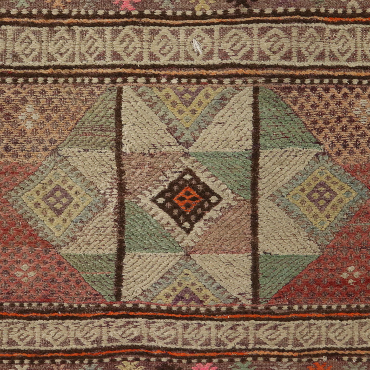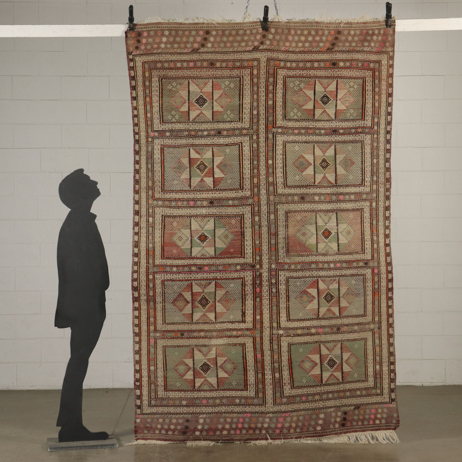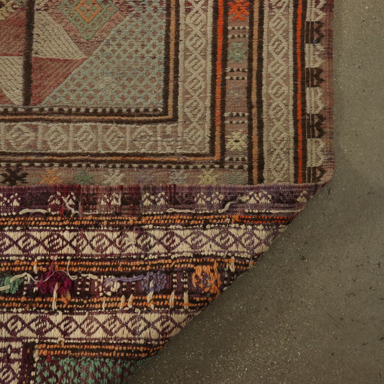 Tappeto Kilim in lana e cotone, nodo fine, fabbricazione manuale, in buono stato.